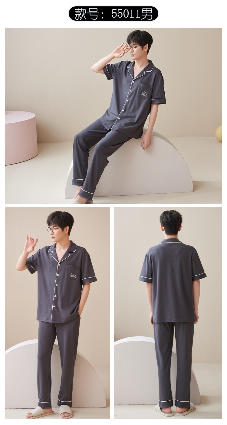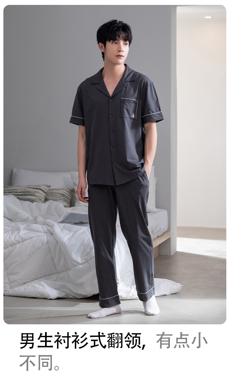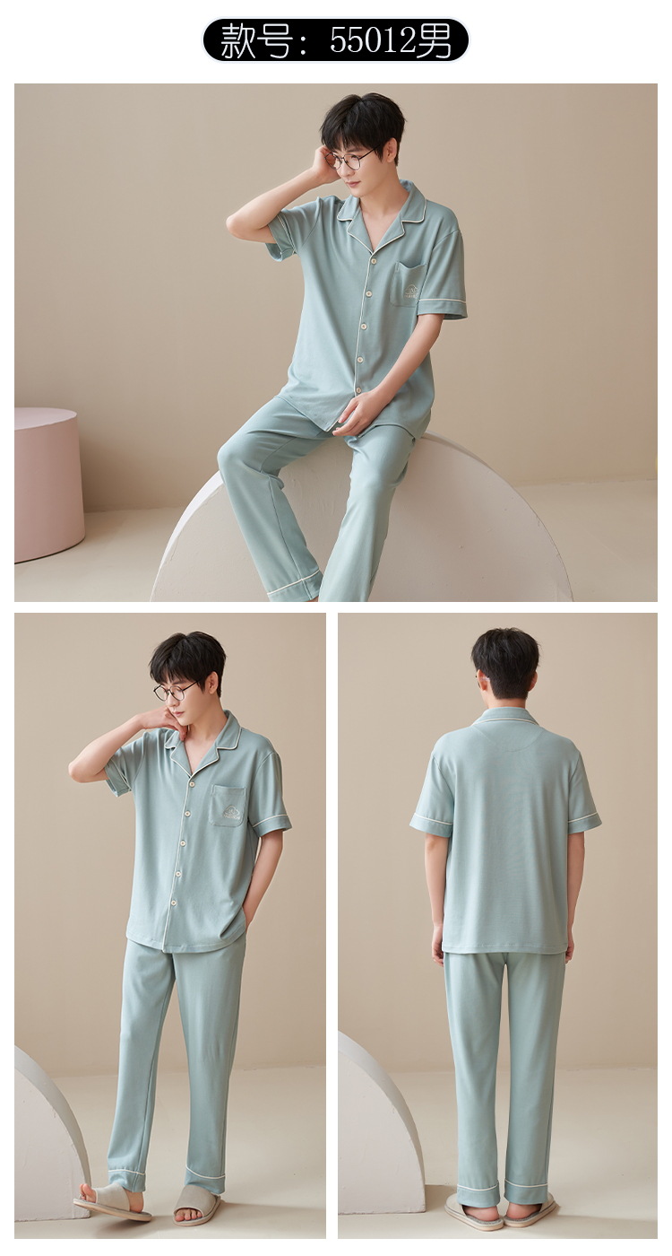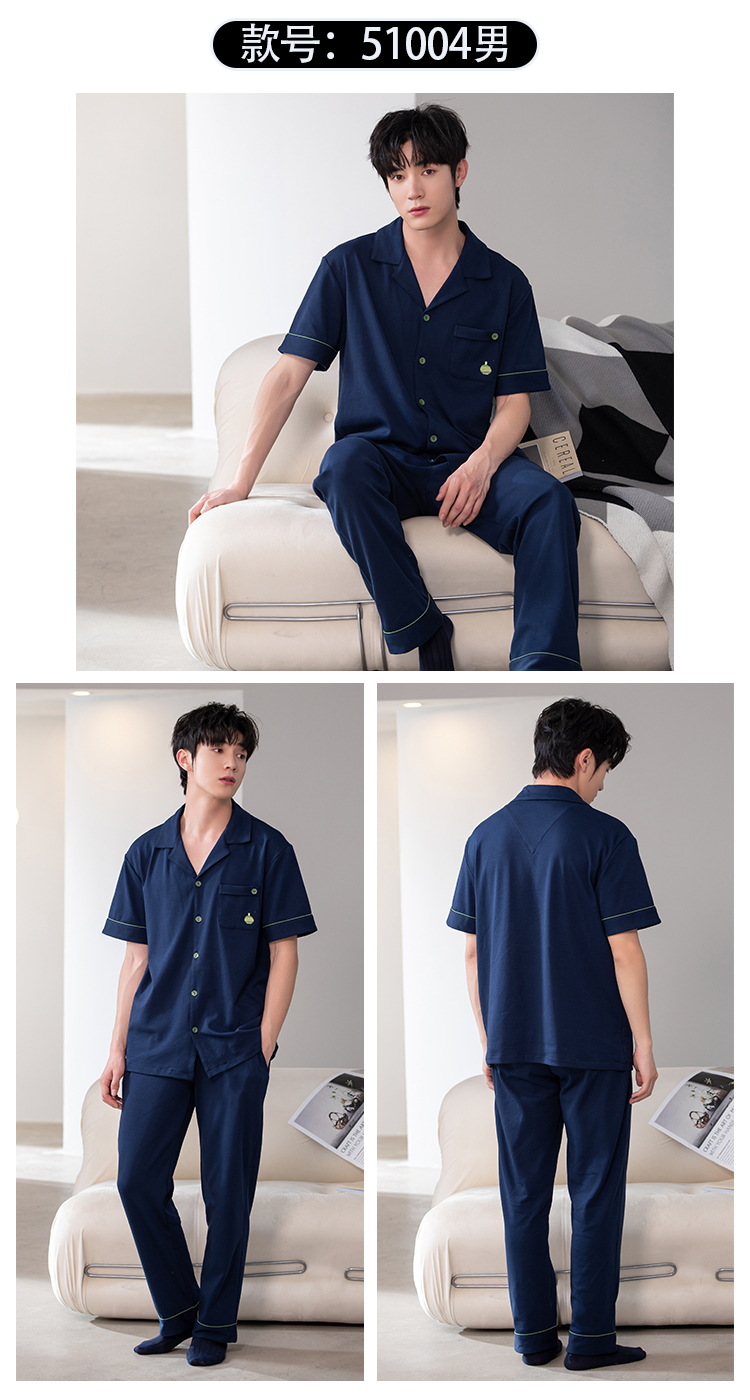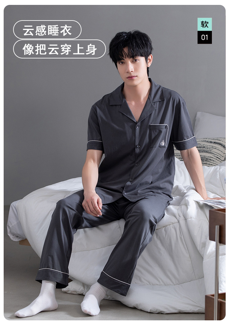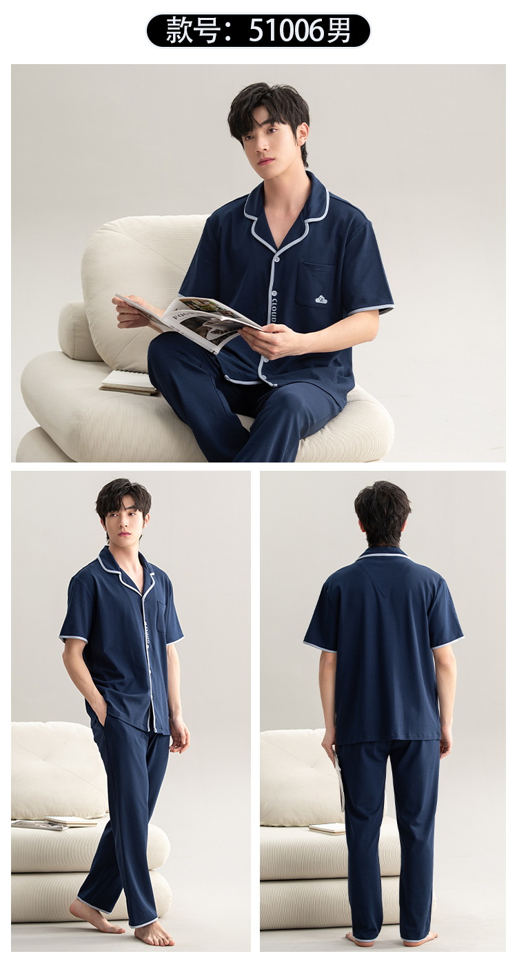 Pijamas de hombre Pantalones de manga corta de verano de los hombres traje de algodón de media manga solapa de los hombres de verano ropa para el hogar primavera y otoño