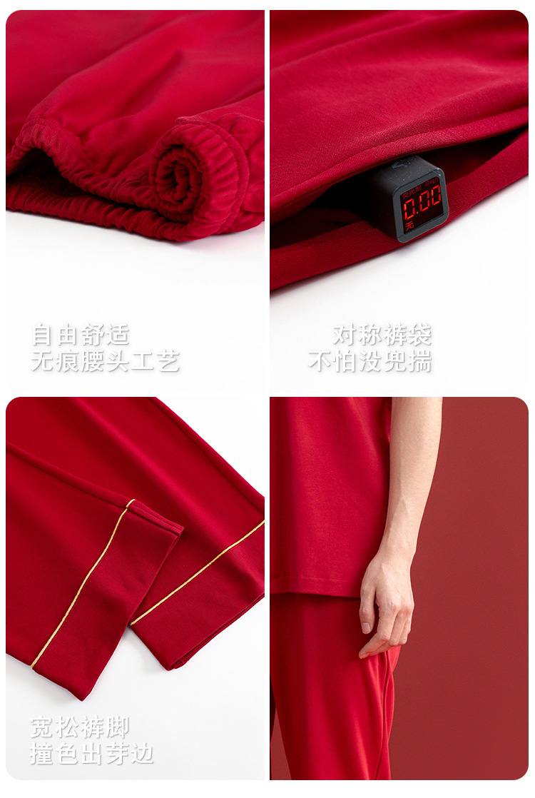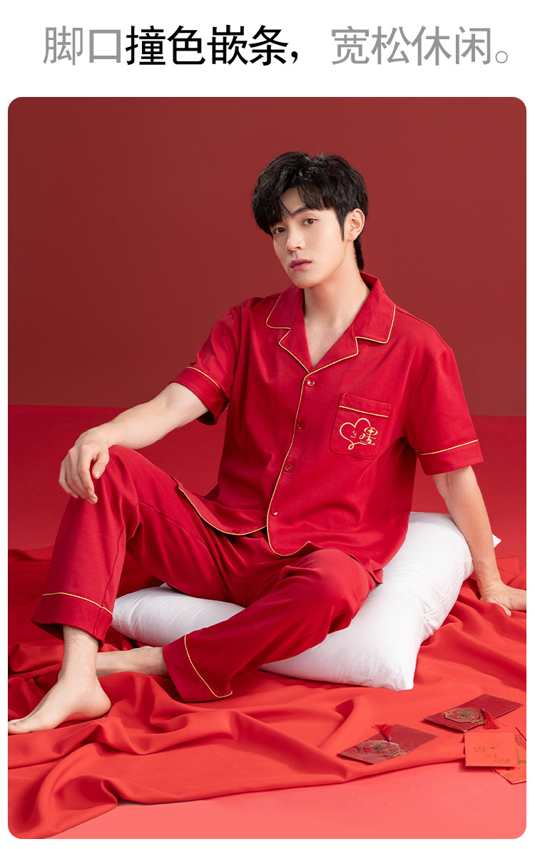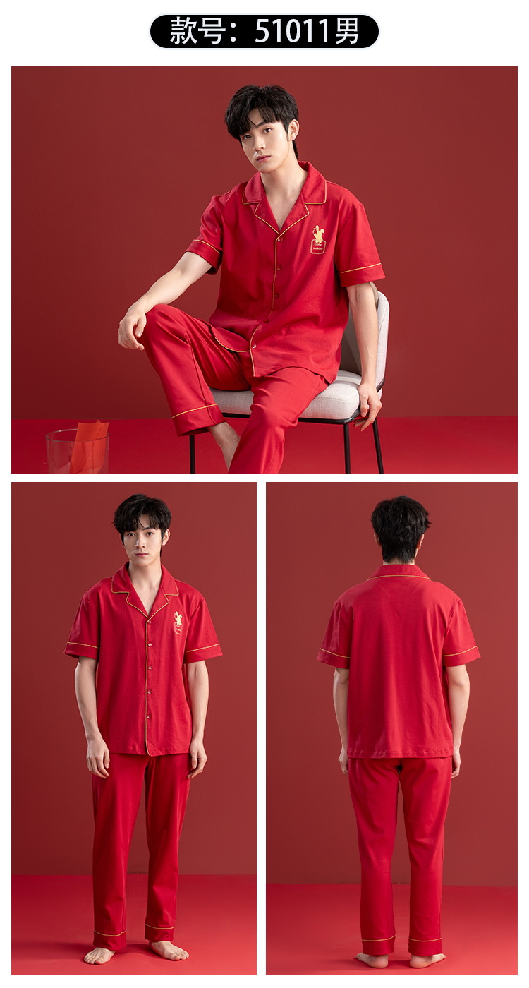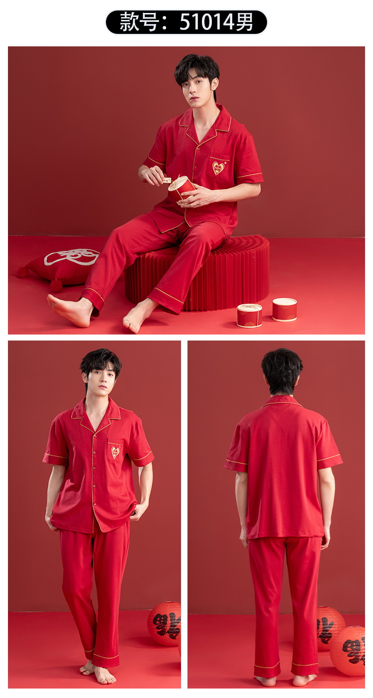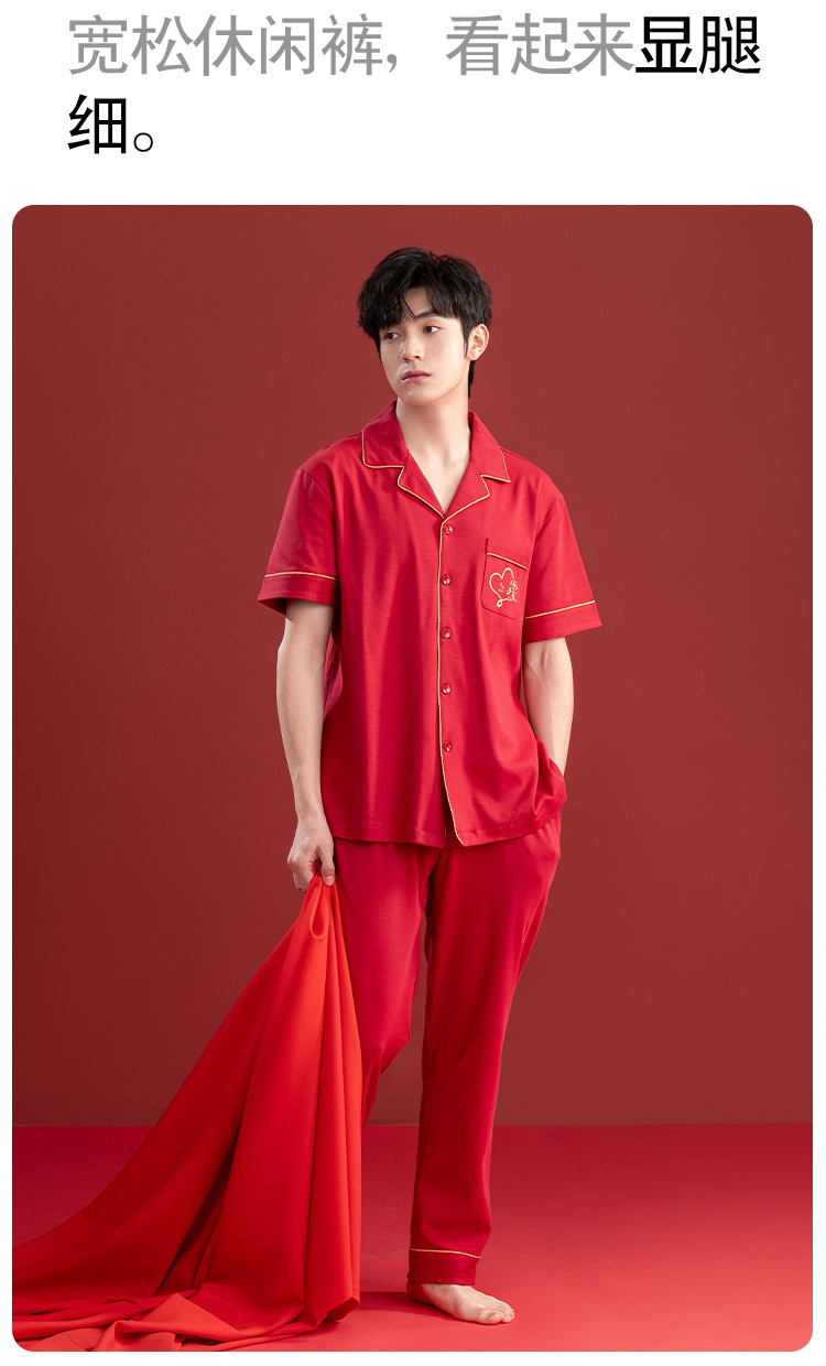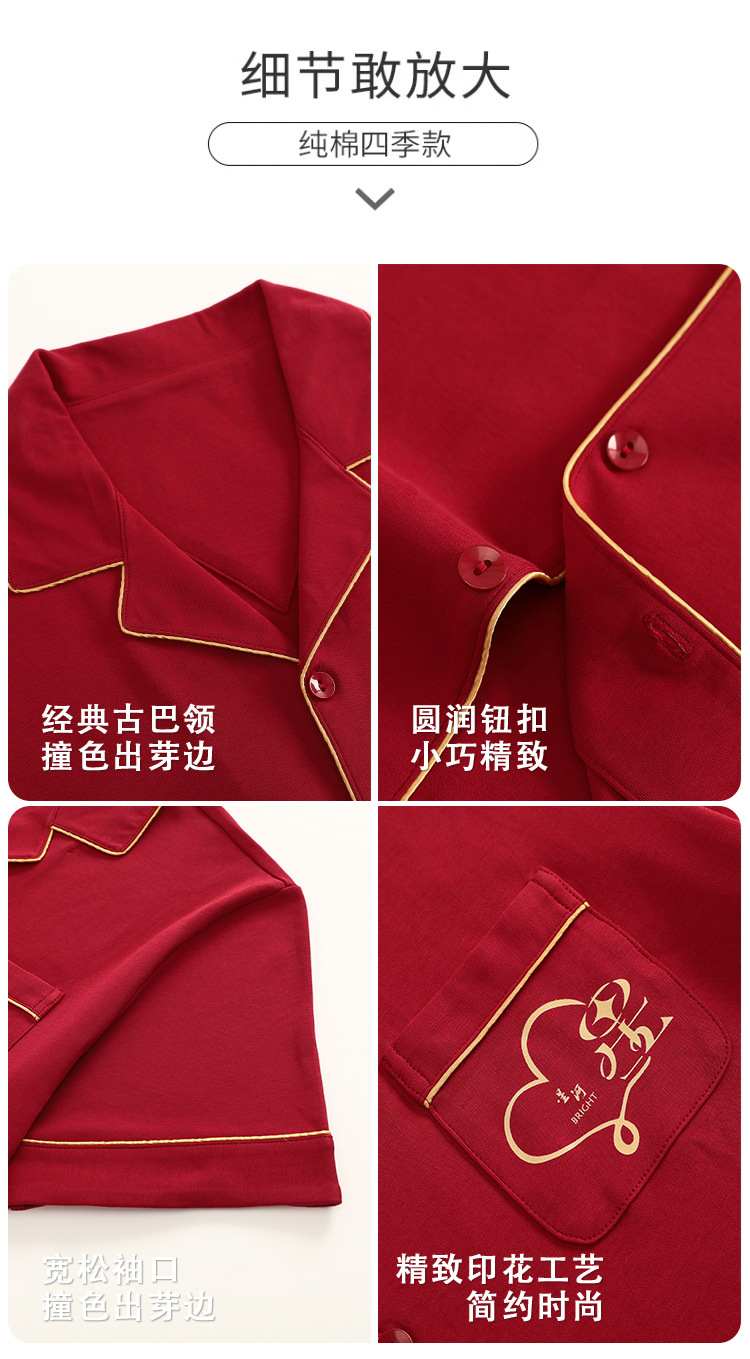 Pijamas de las mujeres verano algodón manga corta media manga Pantalones rojo año nacimiento boda desgaste del hogar verano 2024 Nuevo