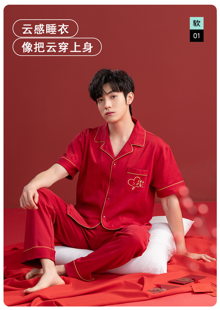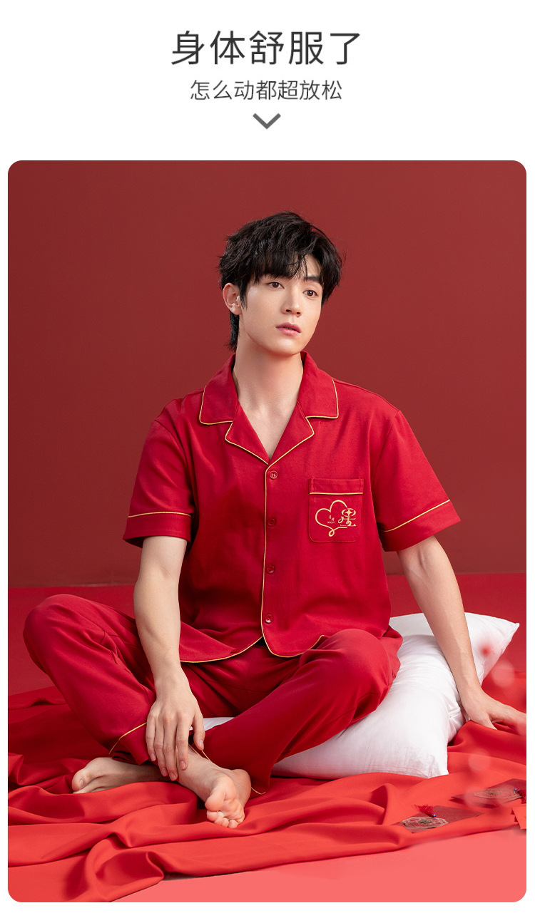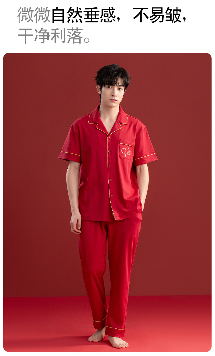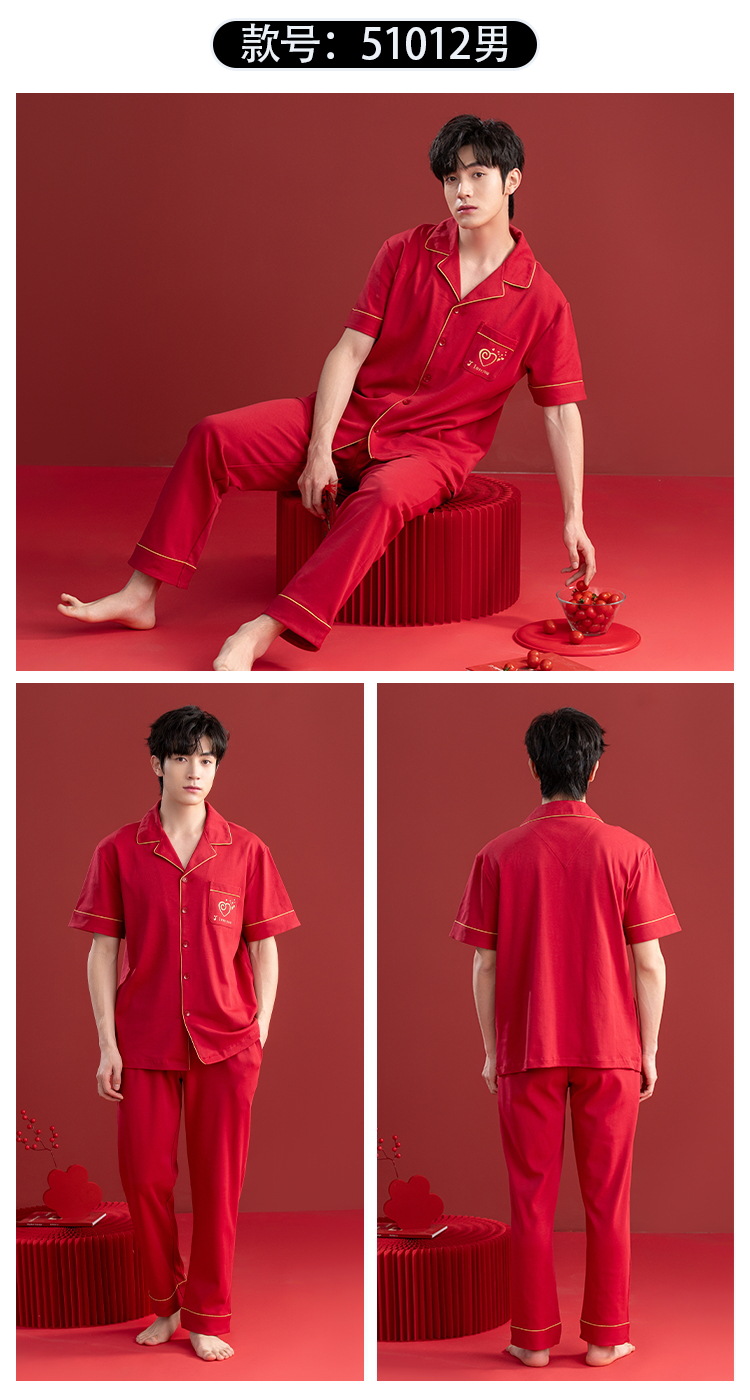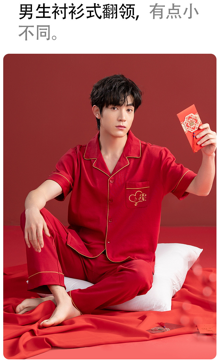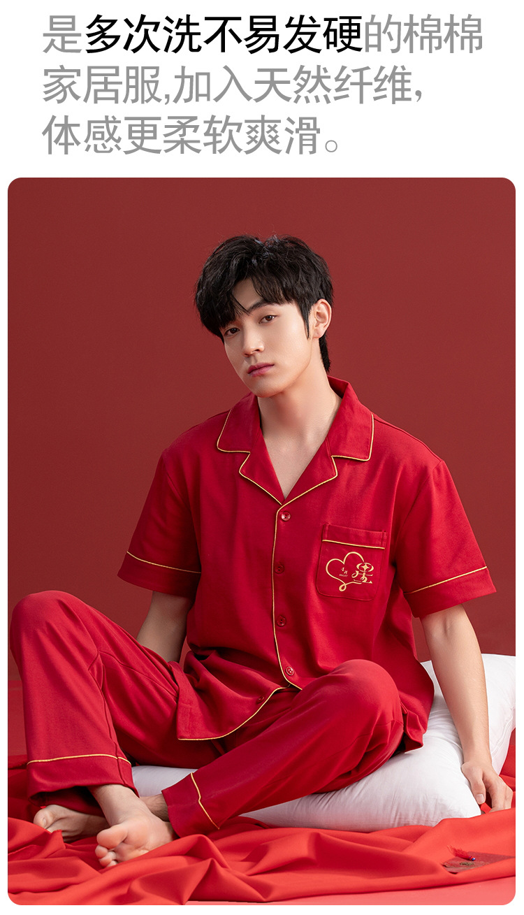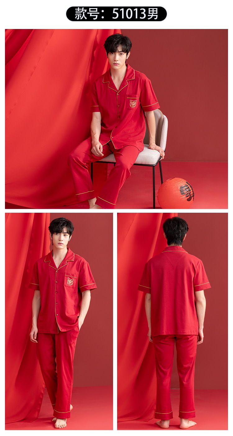 Pijamas de las mujeres verano algodón manga corta media manga Pantalones rojo año nacimiento boda desgaste del hogar verano 2024 Nuevo