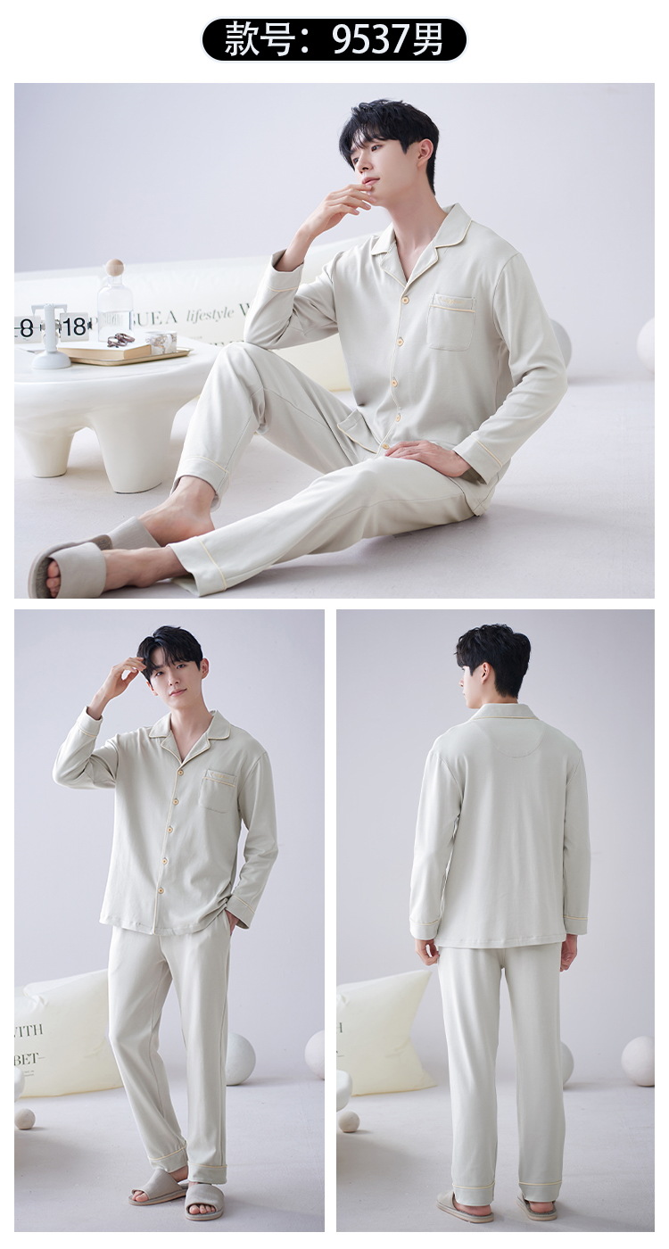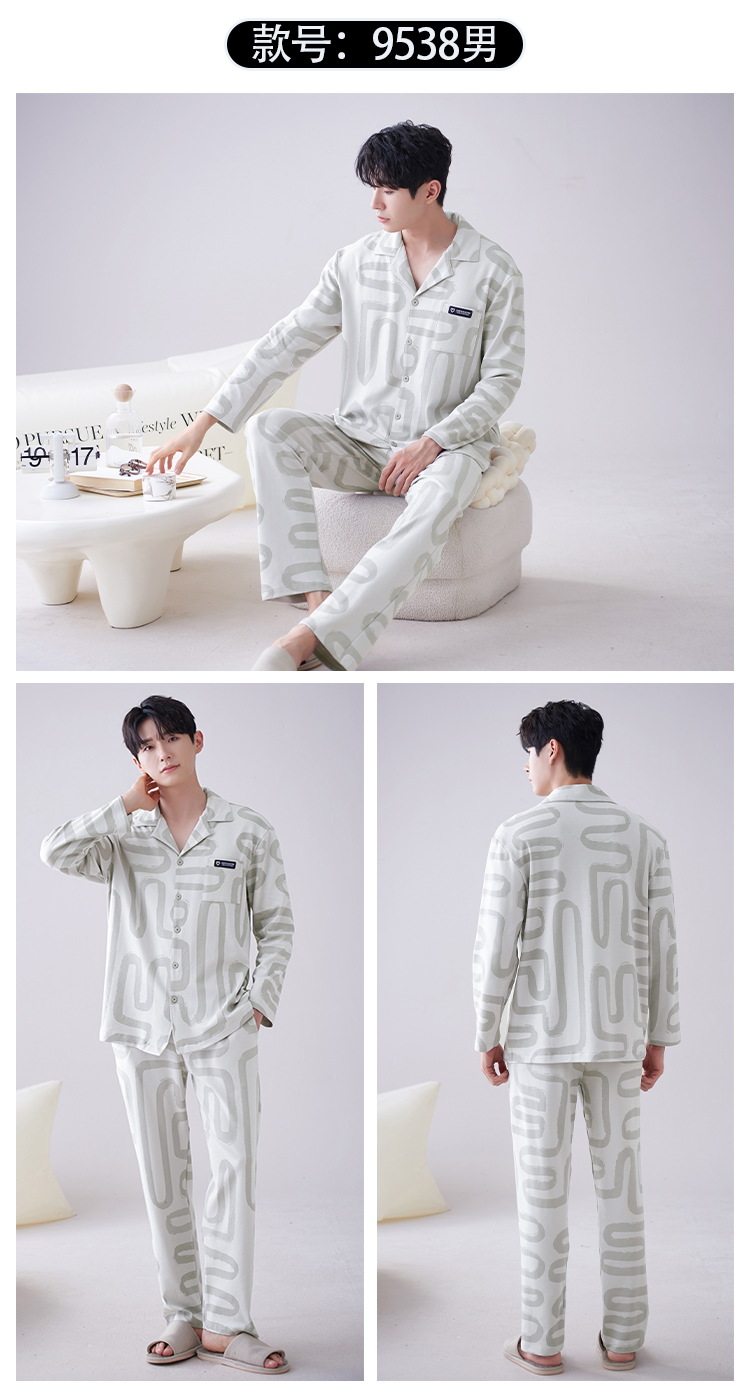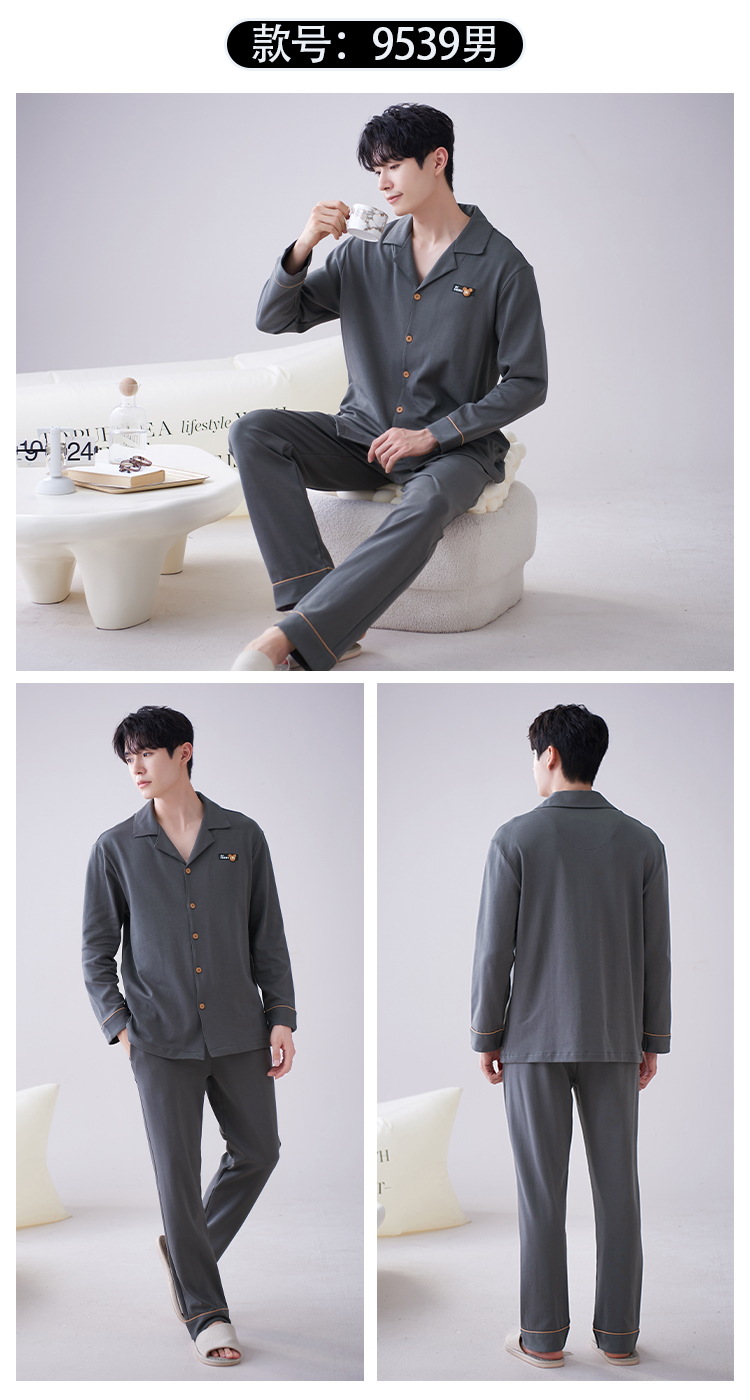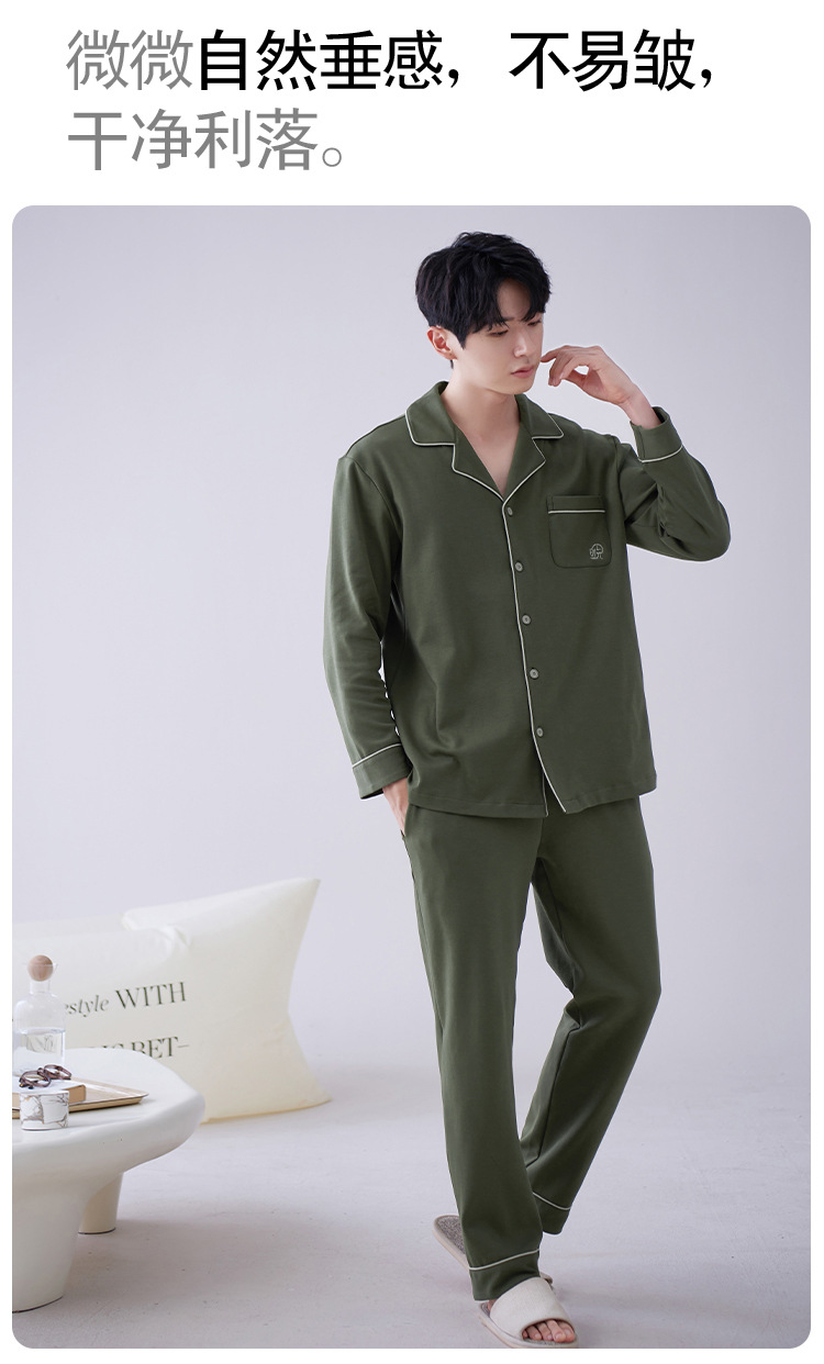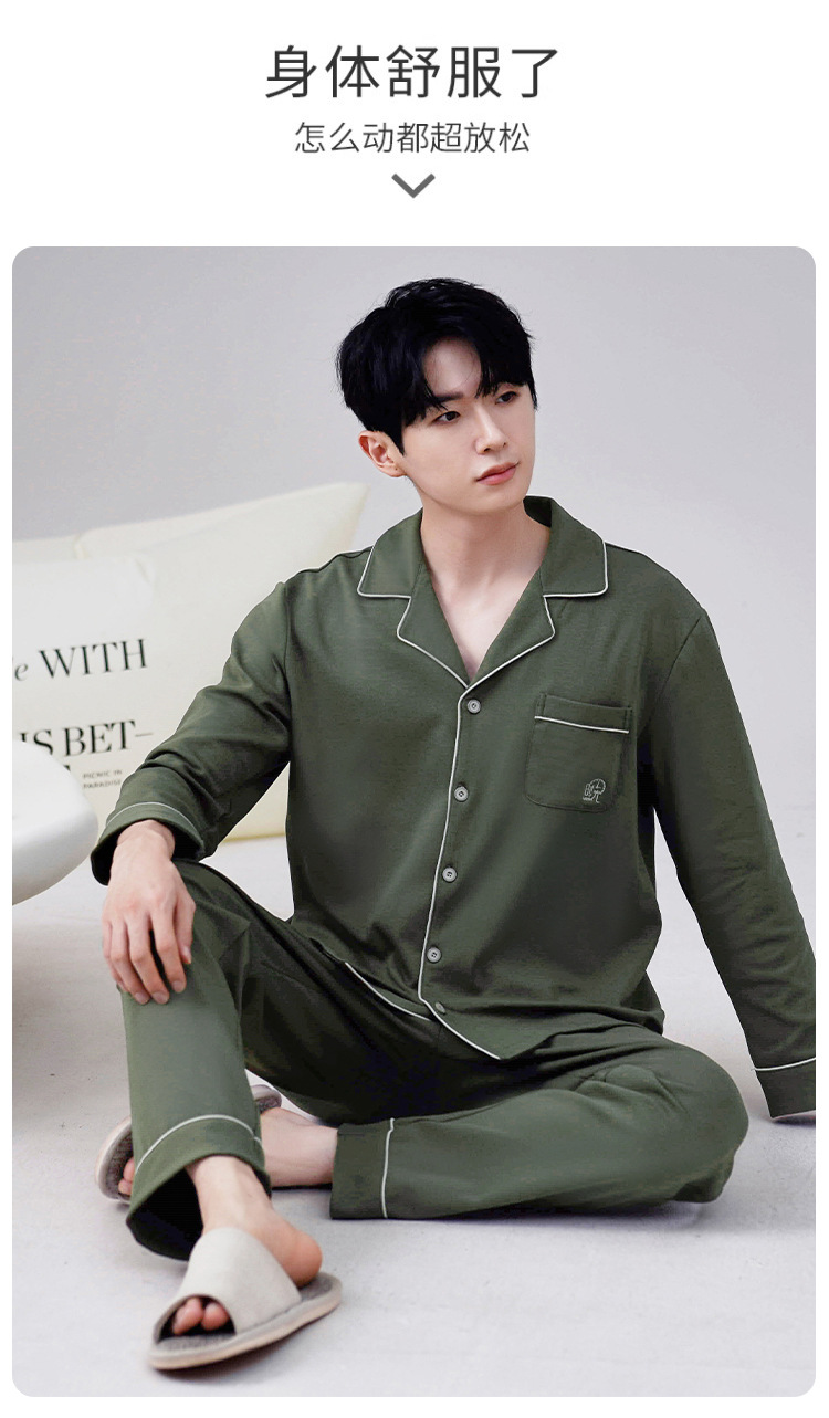Los hombres de la Rebeca pijamas de otoño de los hombres de manga larga de algodón de moda traje de pijama de solapa de los hombres texturizado ropa para el hogar de primavera y otoño