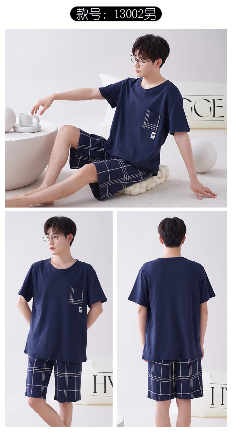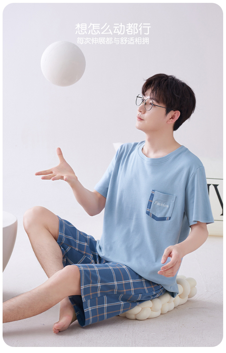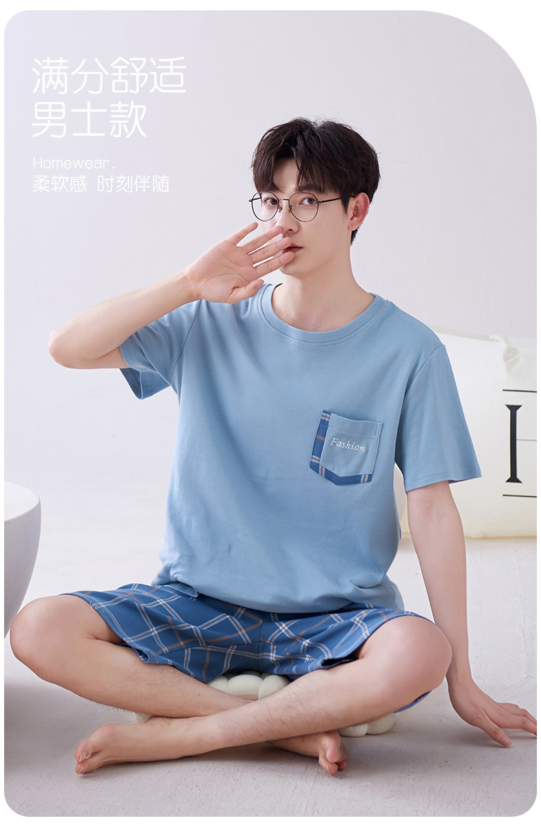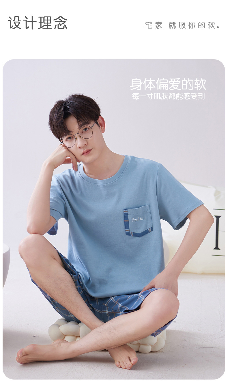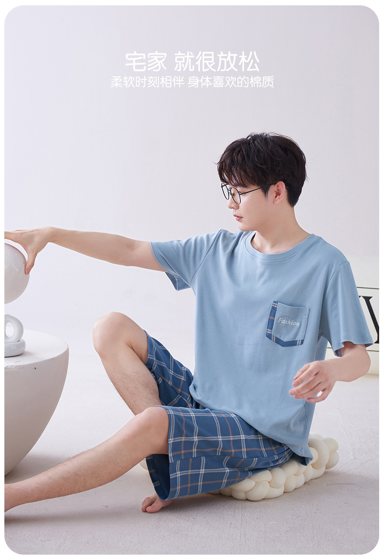 100% pijamas de algodón de verano de los hombres de algodón estilo coreano Delgado suelta manga corta de alta gama ropa para el hogar se puede usar fuera traje
