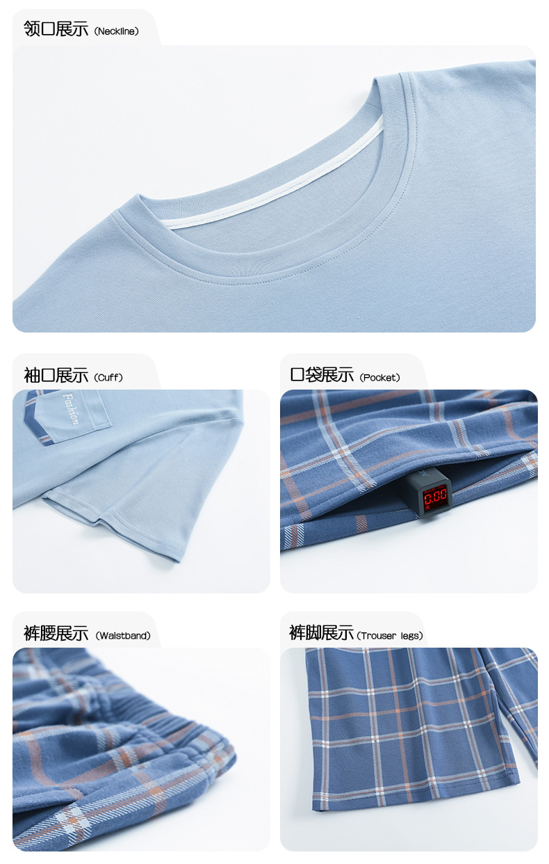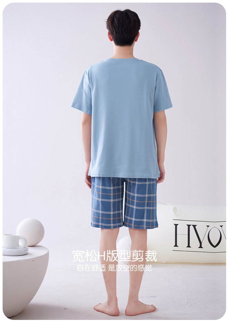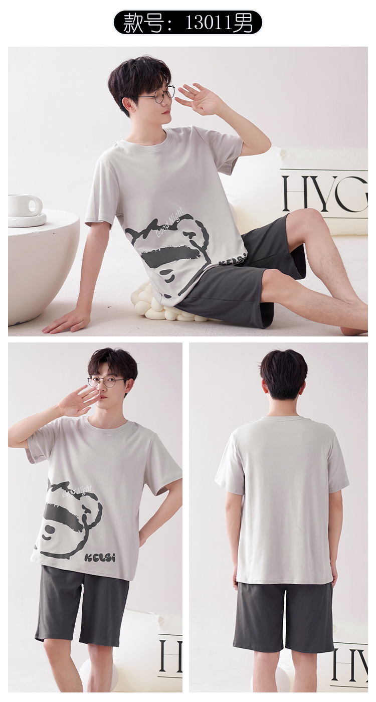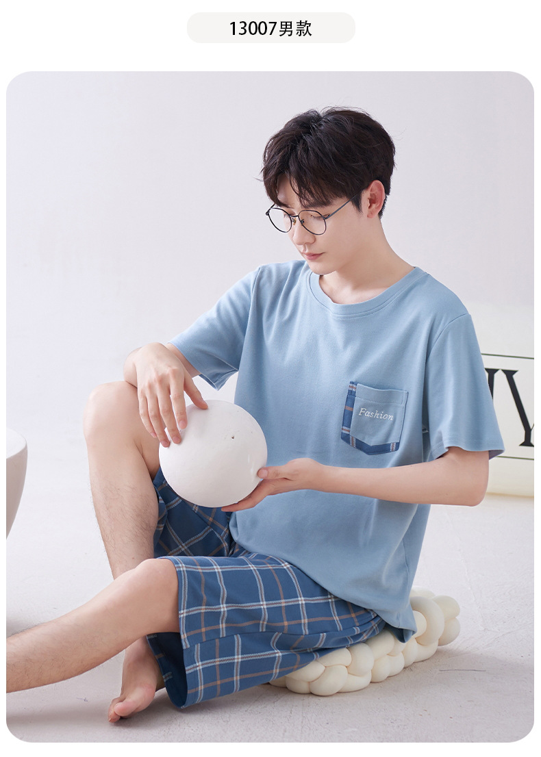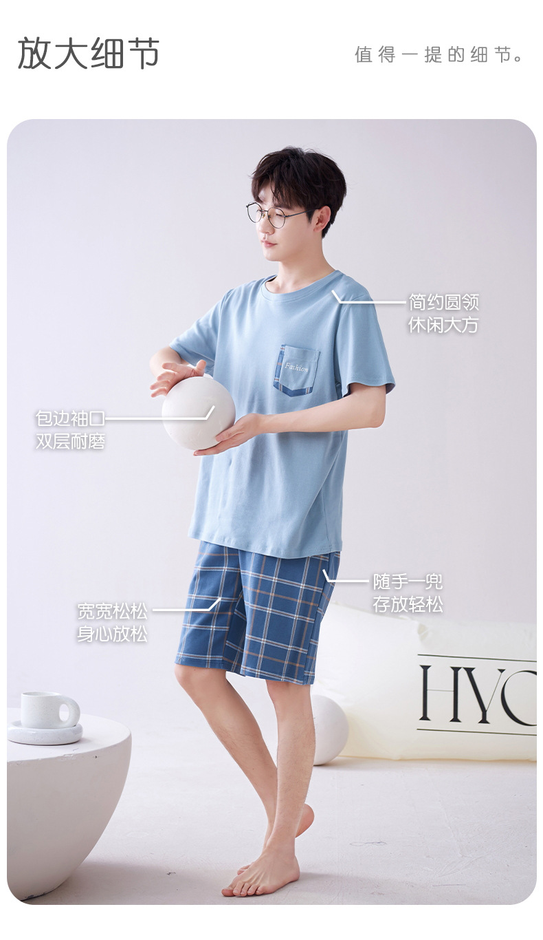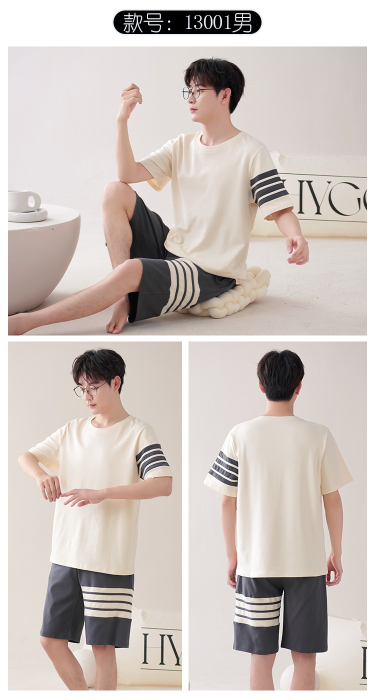 100% pijamas de algodón de verano de los hombres de algodón estilo coreano Delgado suelta manga corta de alta gama ropa para el hogar se puede usar fuera traje