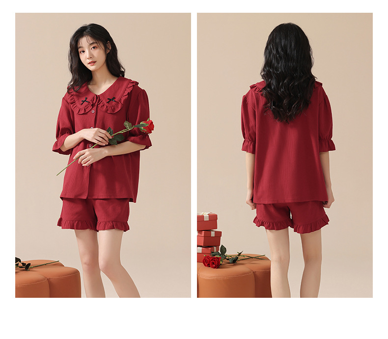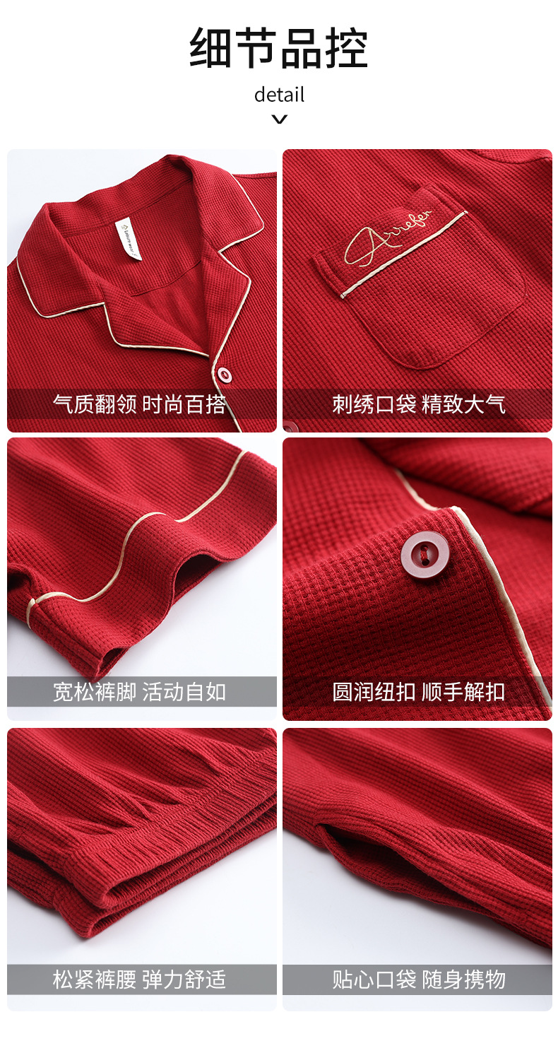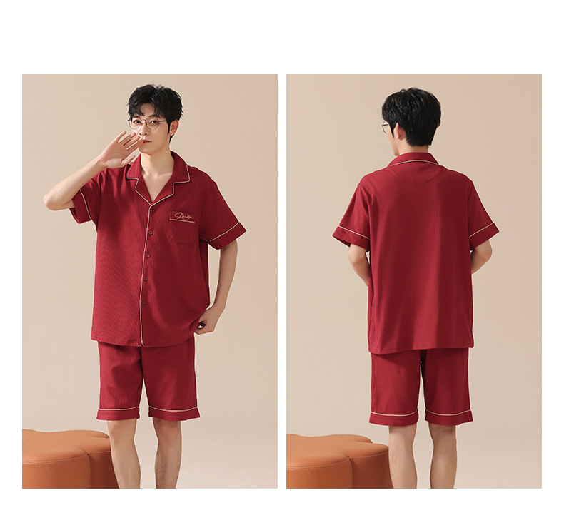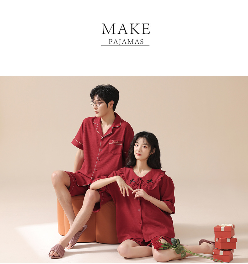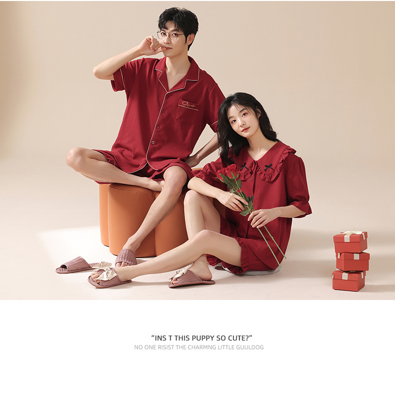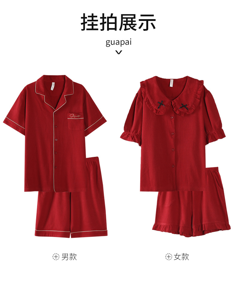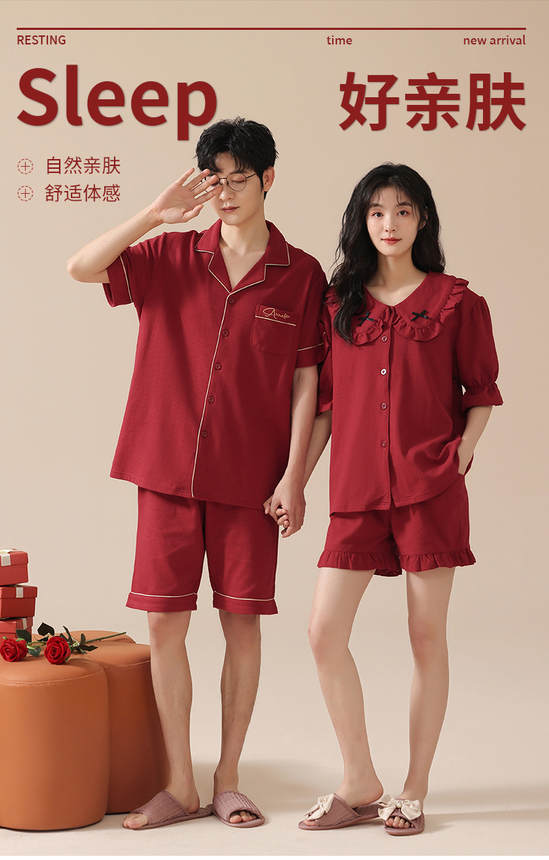 2023 verano nueva pareja pijamas de algodón de manga corta waffle camisón de las mujeres boda roja homewear hombres