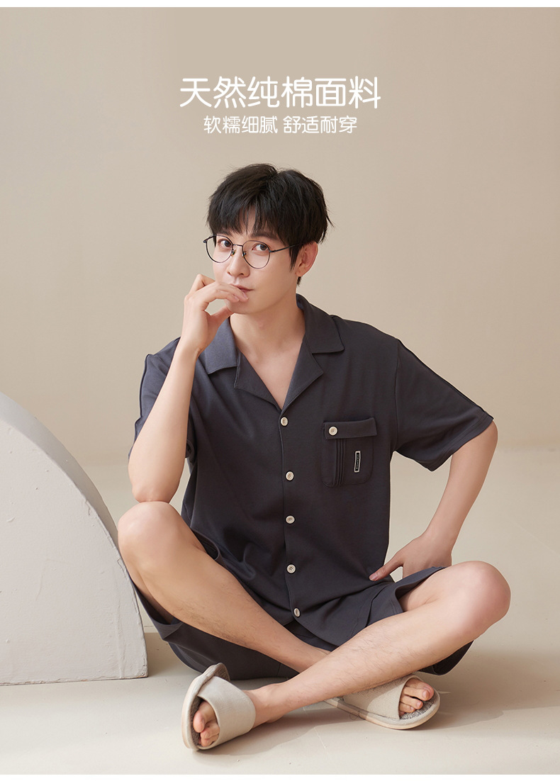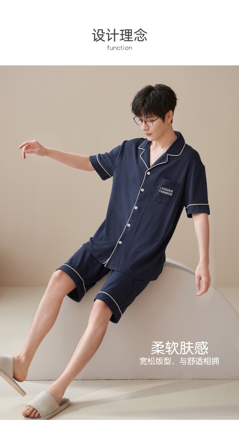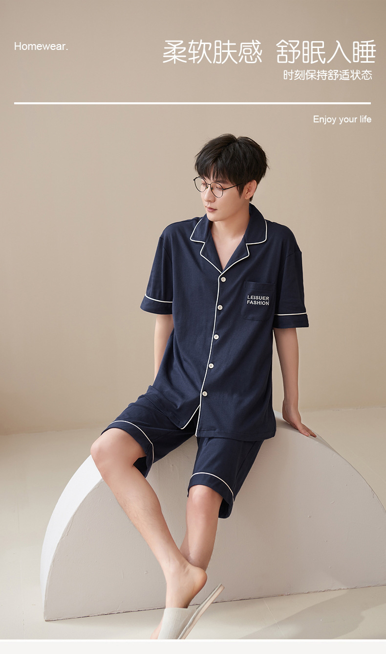 Pijamas de algodón para hombres de verano nuevo de manga corta casual cómodo suelto más tamaño ropa de abrigo homewear traje Delgado