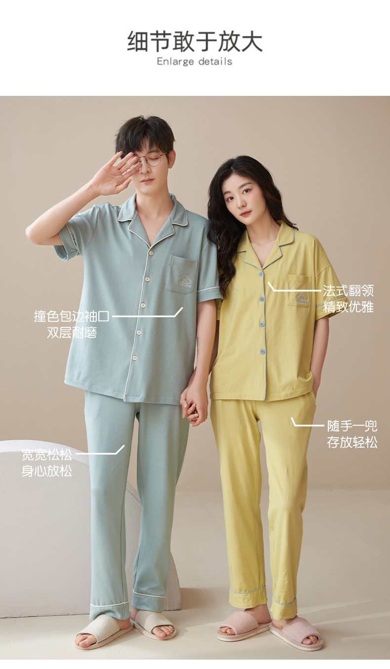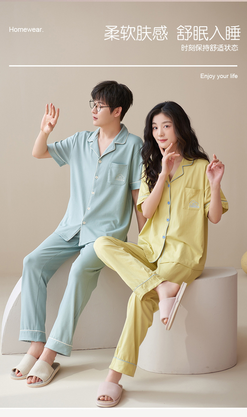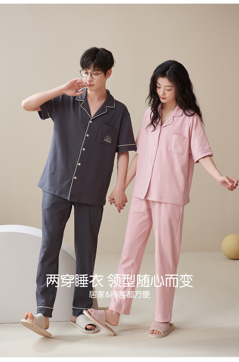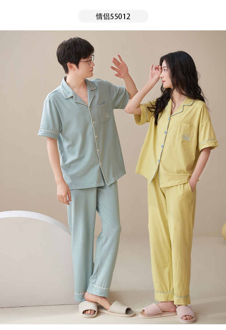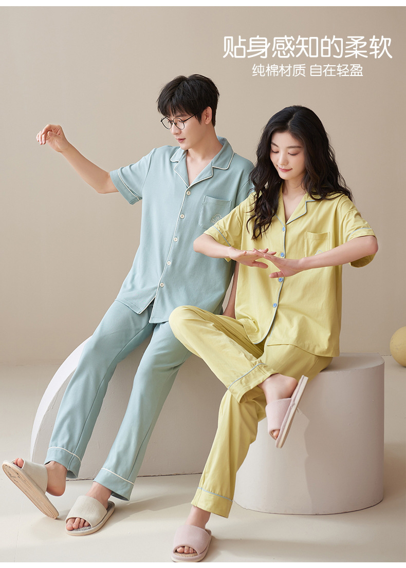 Pijamas pareja desgaste un hombre y una mujer verano puro algodón simple moda de alta calidad delgada pantalones de manga corta ropa de casa verano