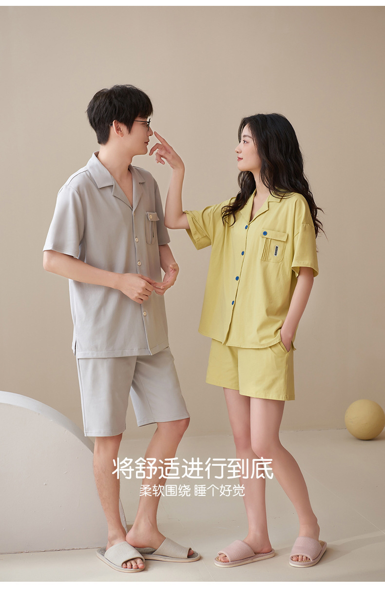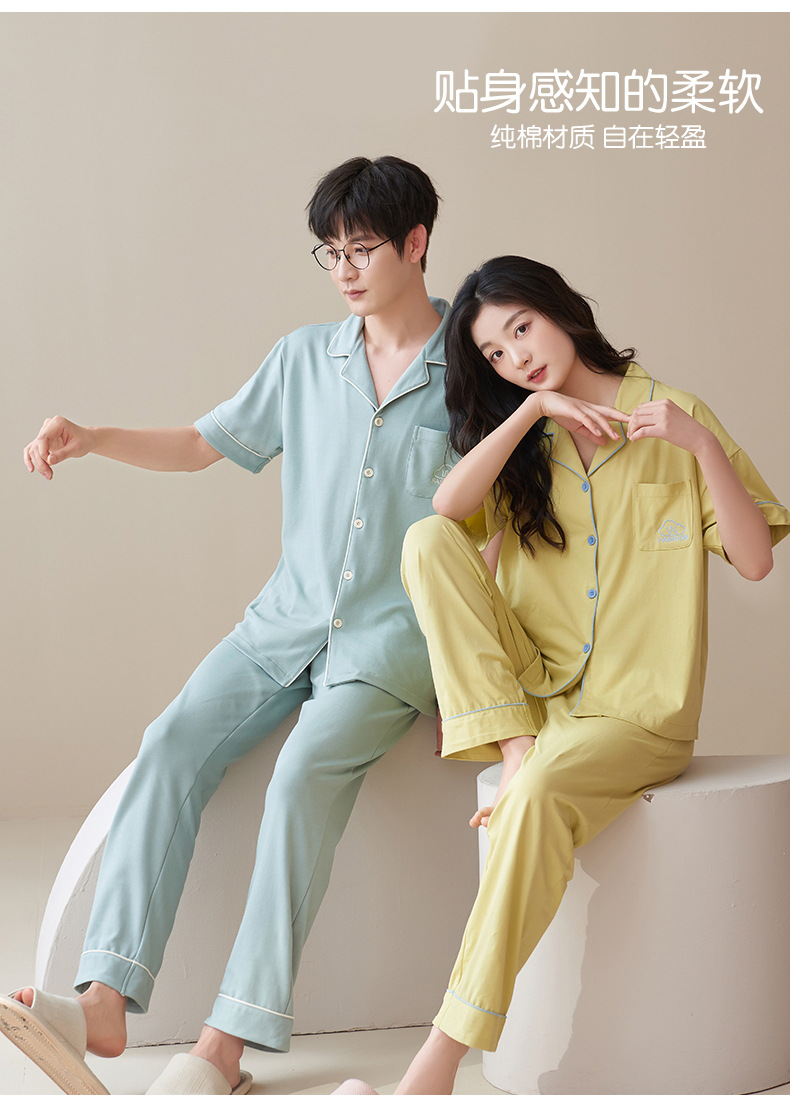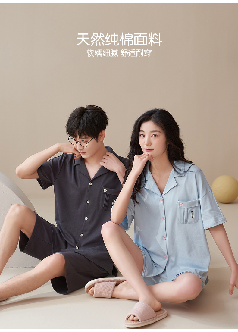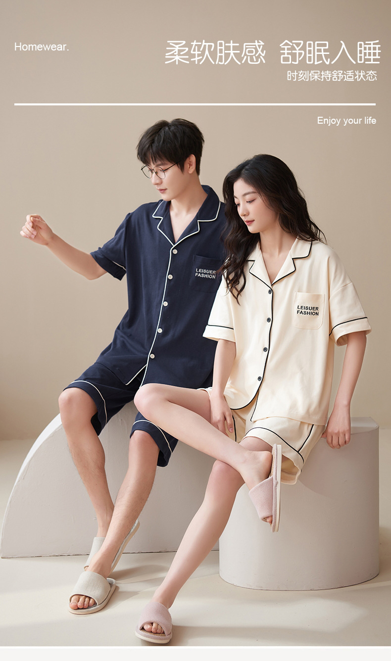 Verano Pull-on pijamas de algodón puro de alta calidad de manga corta pantalones cortos de algodón fino traje de desgaste para el hogar de los hombres y las mujeres