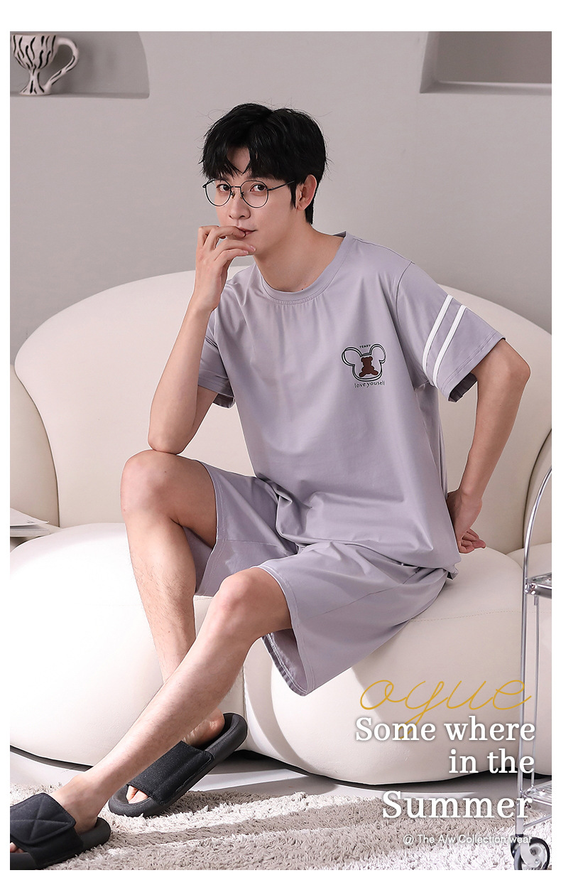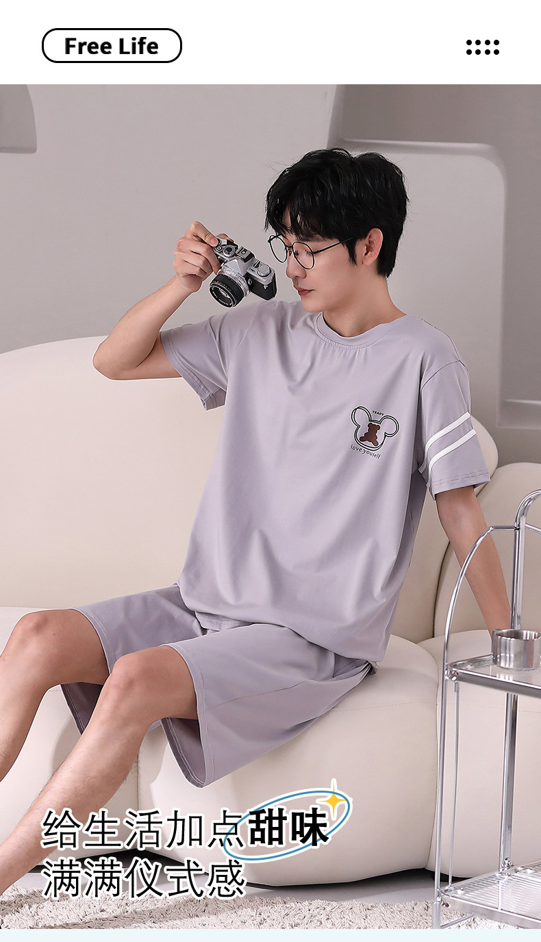 Pijamas pantalones cortos de manga corta de algodón de verano para hombres ropa para el hogar ropa exterior delgada de verano para hombres más traje de tamaño