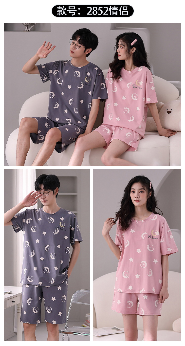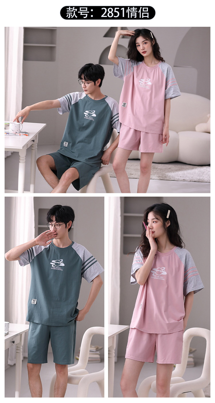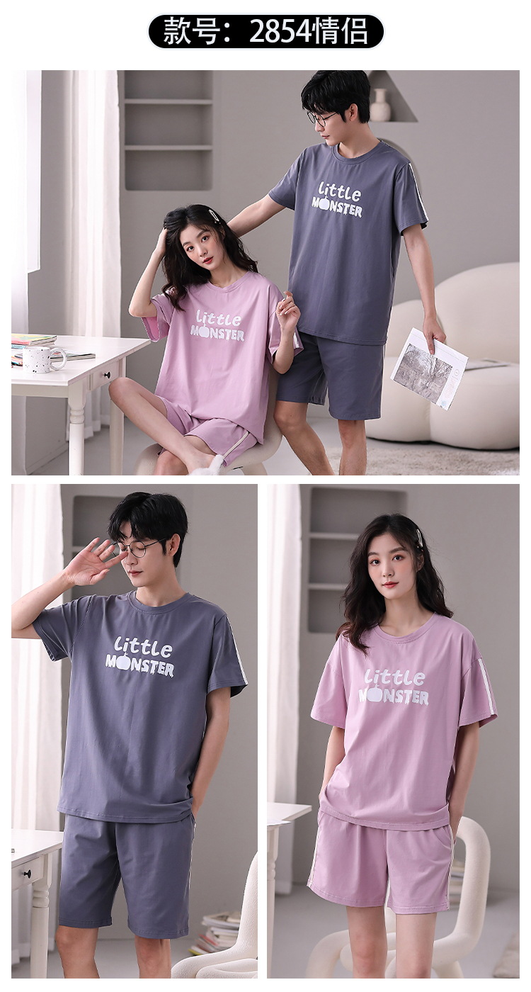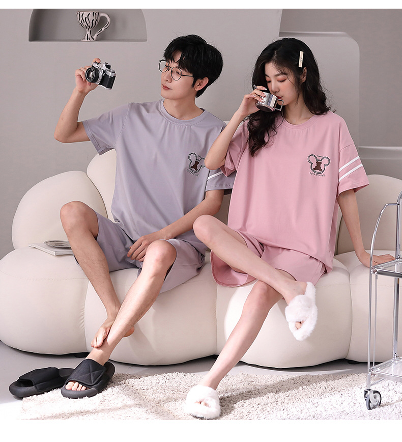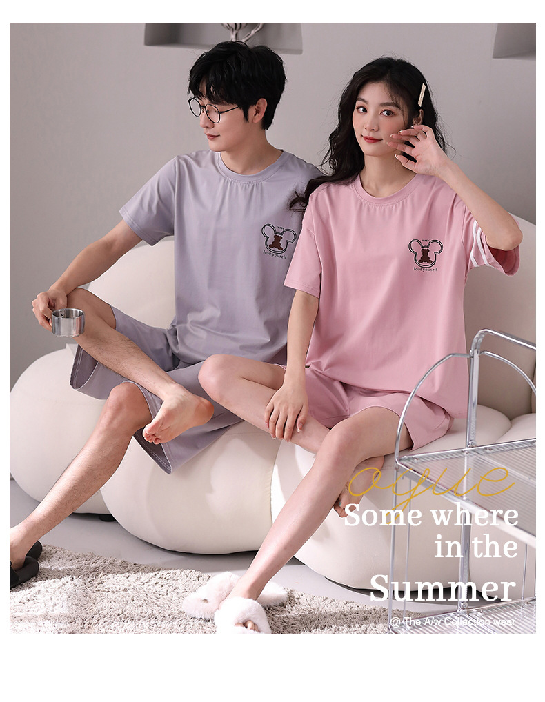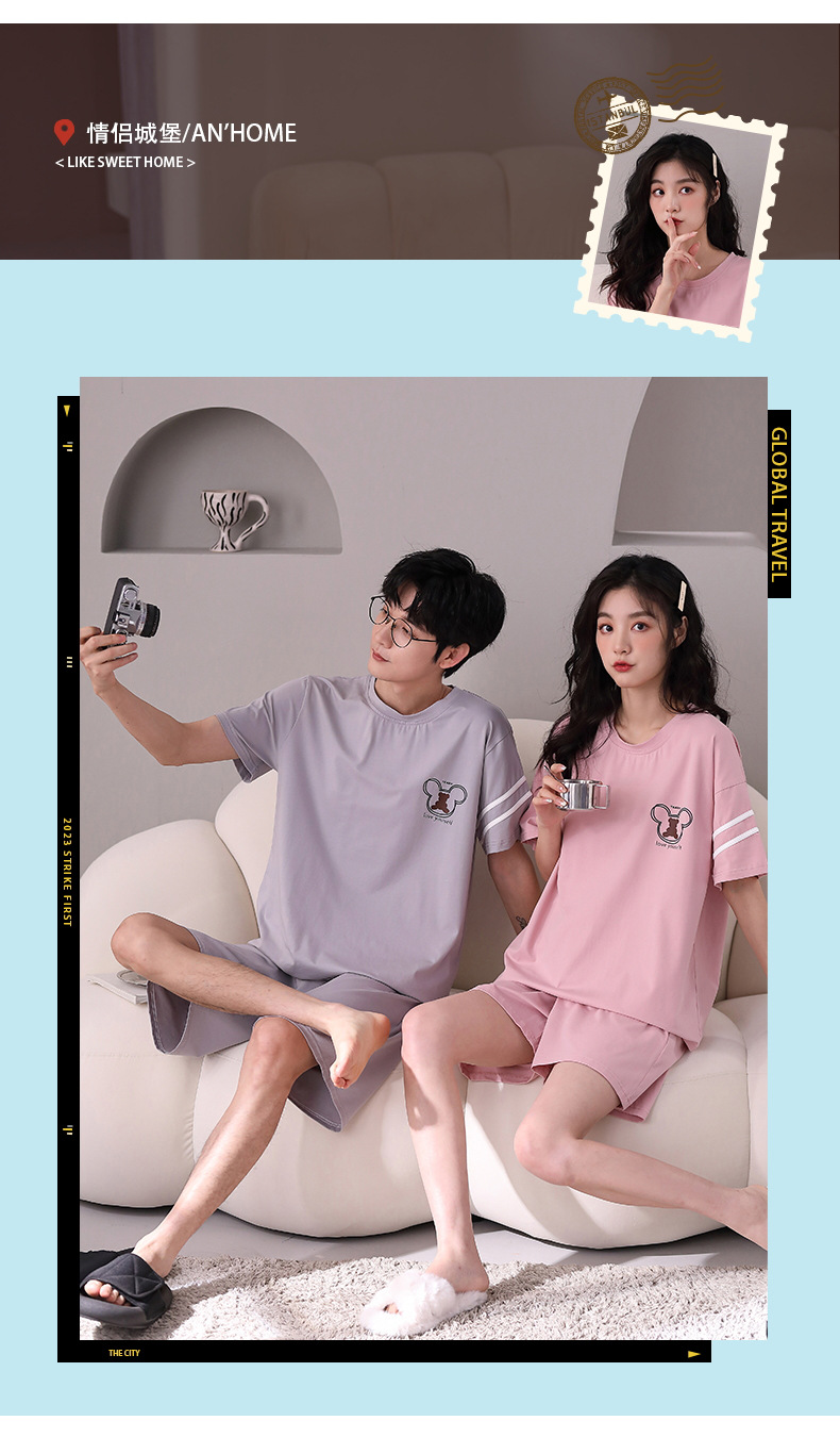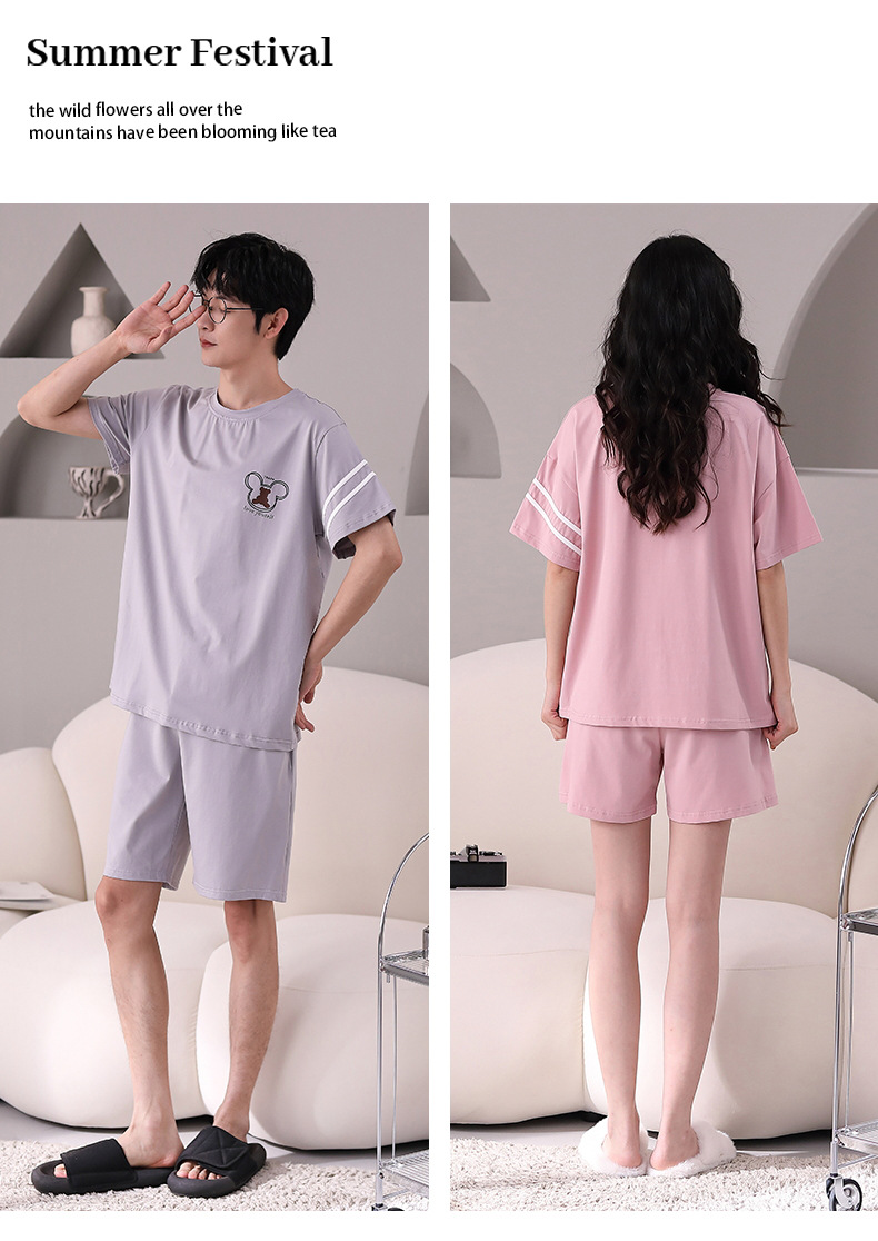 Venta al por mayor pareja pijamas de verano de las mujeres traje de manga corta de algodón Delgado coreano casual hombres y ropa de casa de las mujeres se puede usar fuera