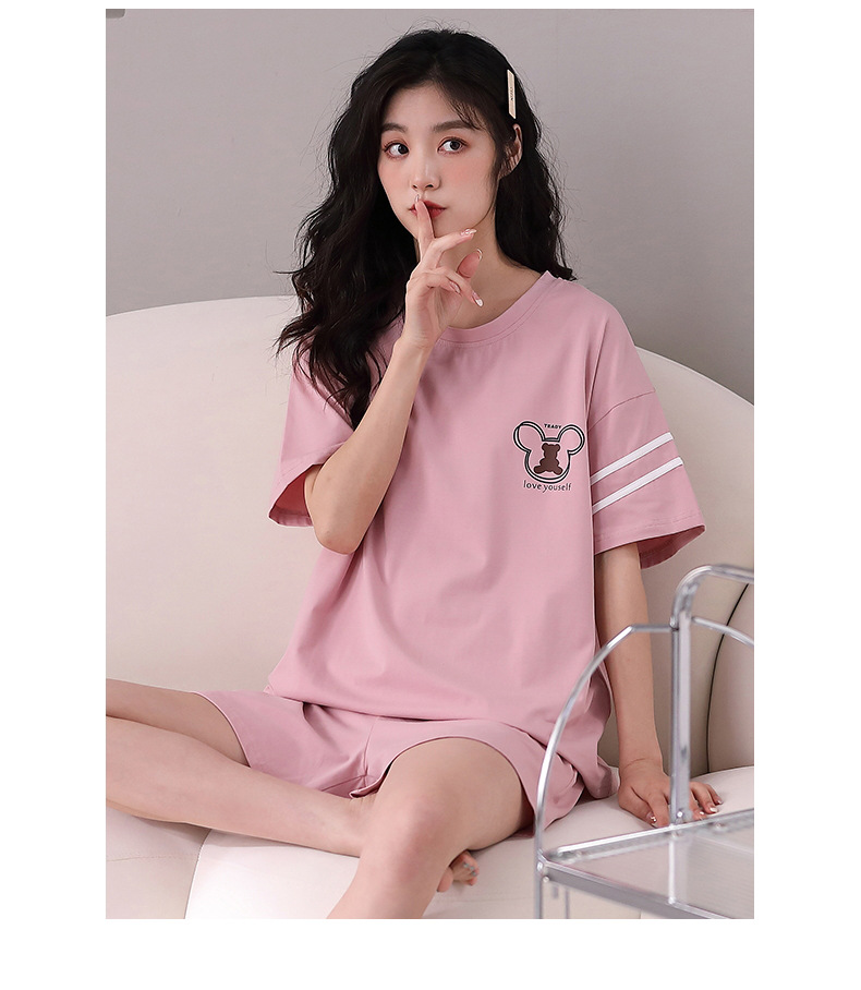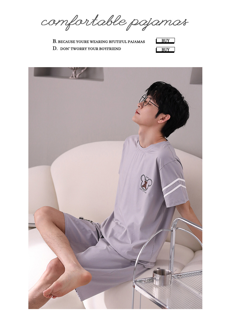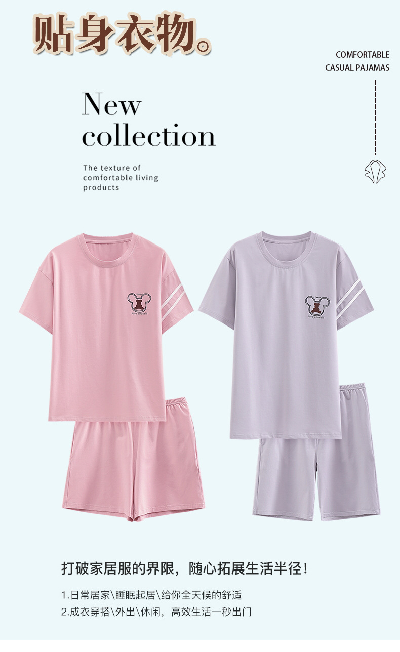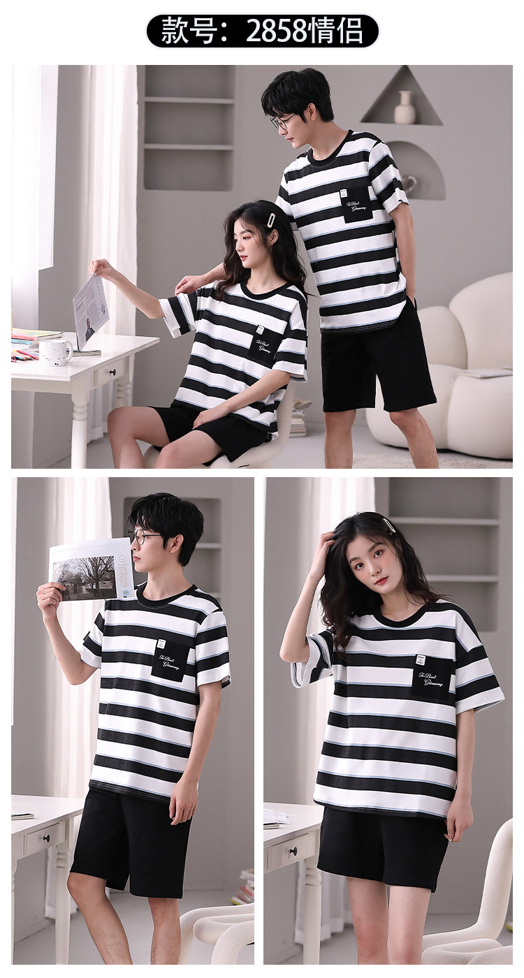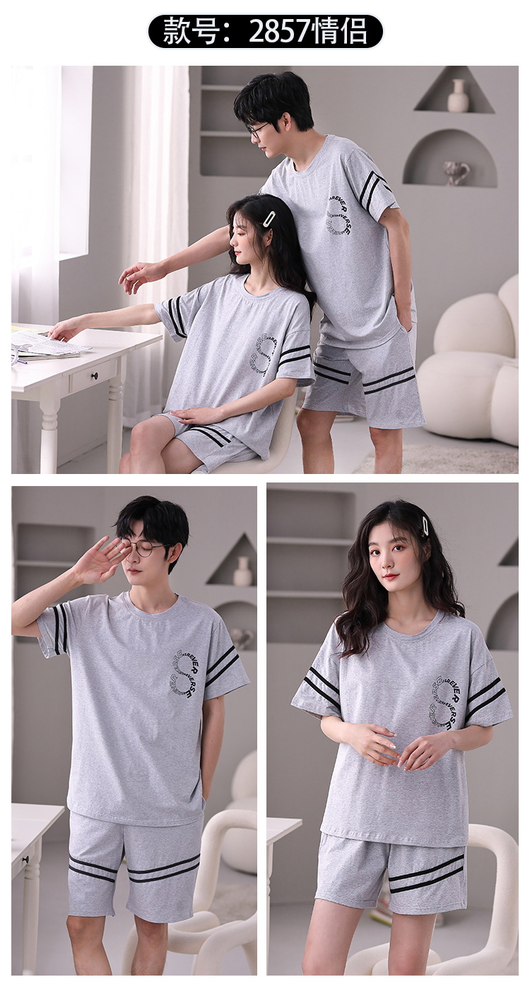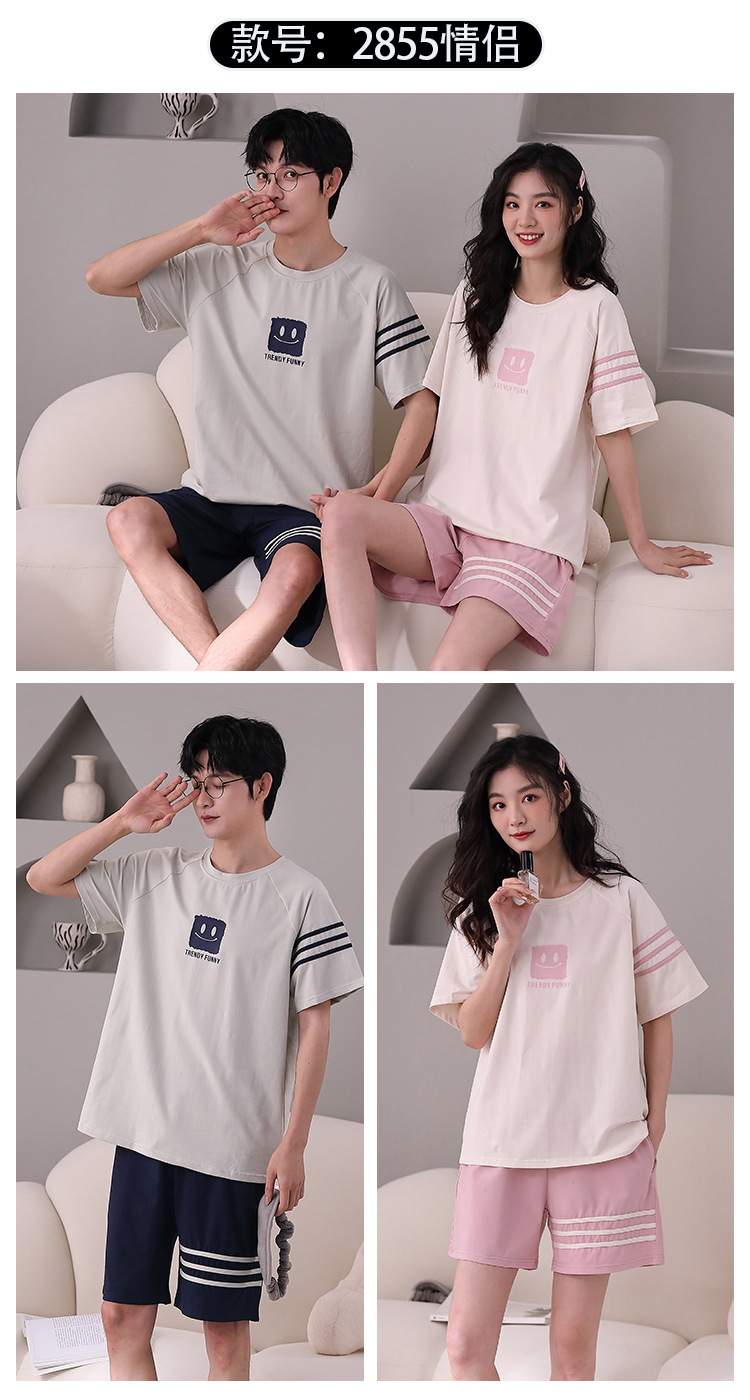 Venta al por mayor pareja pijamas de verano de las mujeres traje de manga corta de algodón Delgado coreano casual hombres y ropa de casa de las mujeres se puede usar fuera