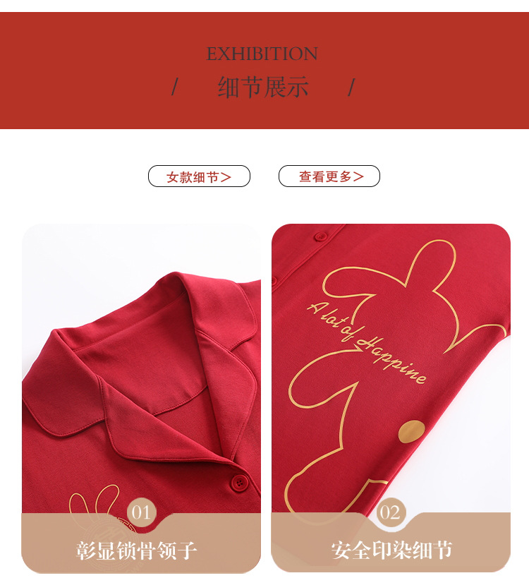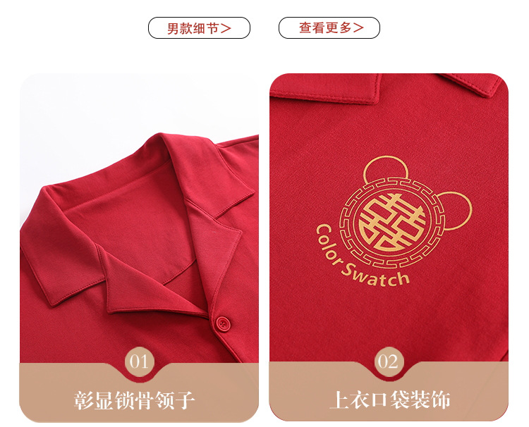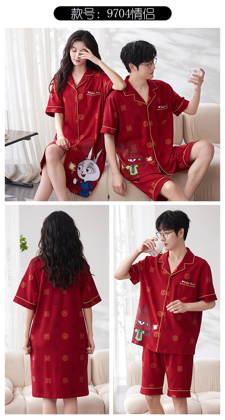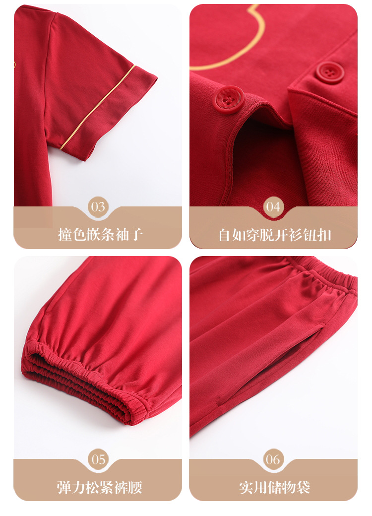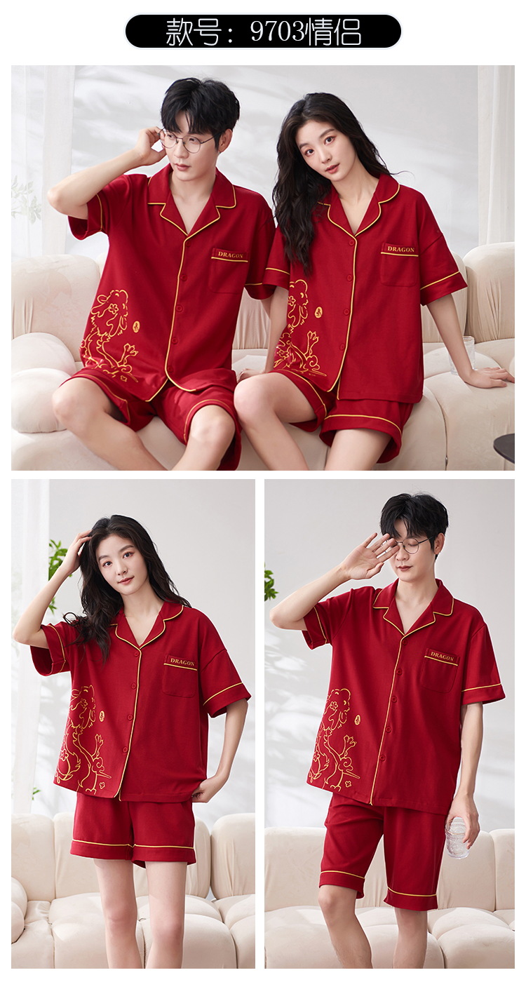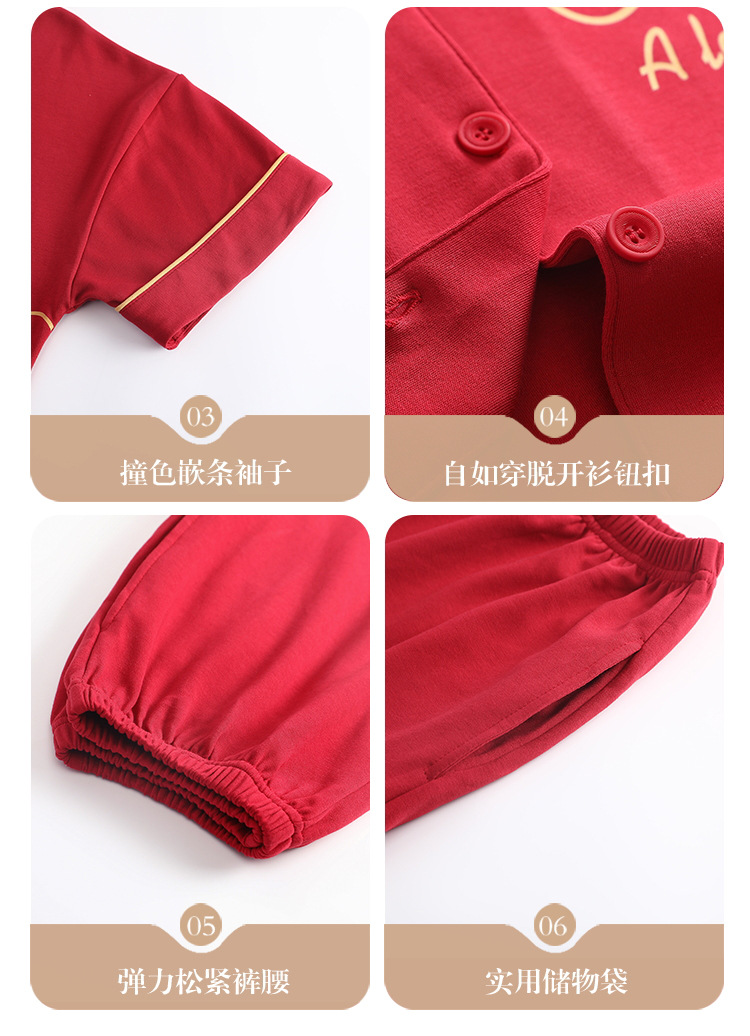 Pareja de verano pijamas de algodón de las mujeres de la boda traje rojo solapa año de nacimiento de algodón manga corta desgaste del hogar de Los Hombres
