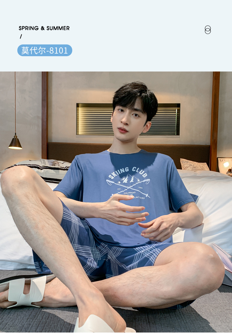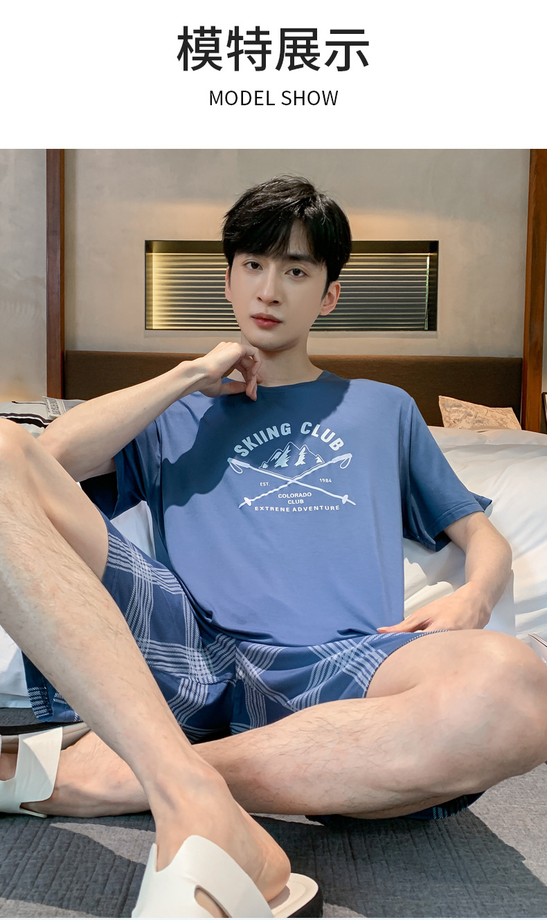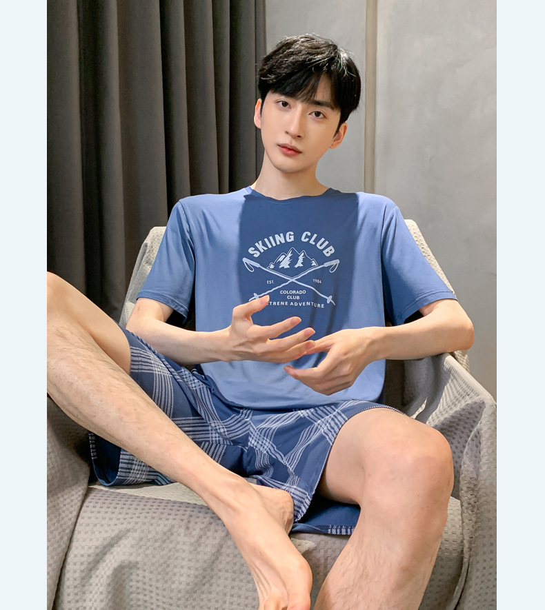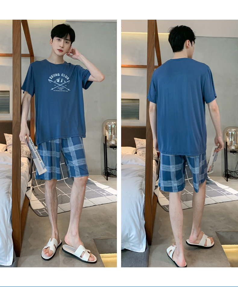 Verano de los nuevos hombres de manga corta modal pijamas casuales simples pantalones cortos a cuadros traje de ropa para el hogar en el extranjero al por mayor