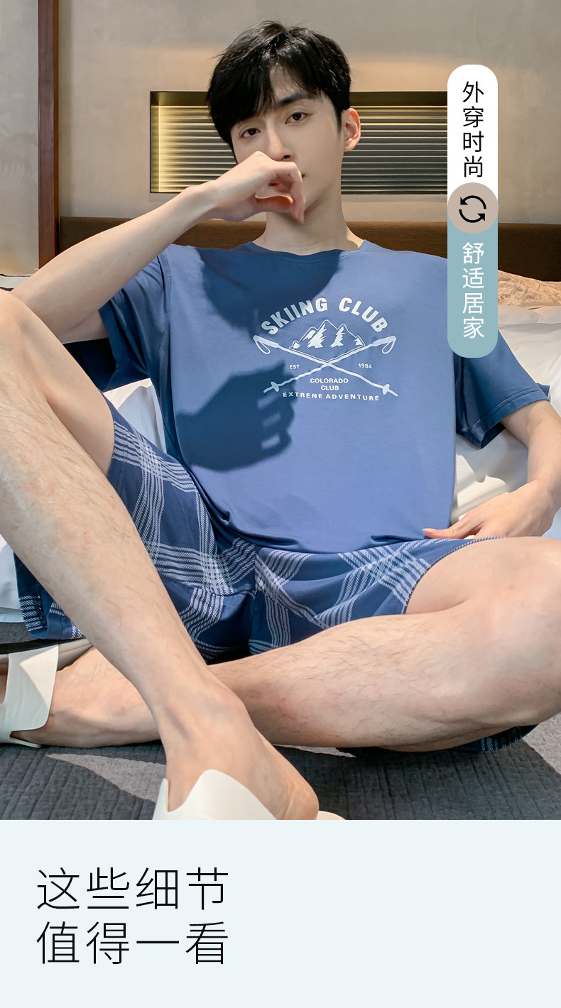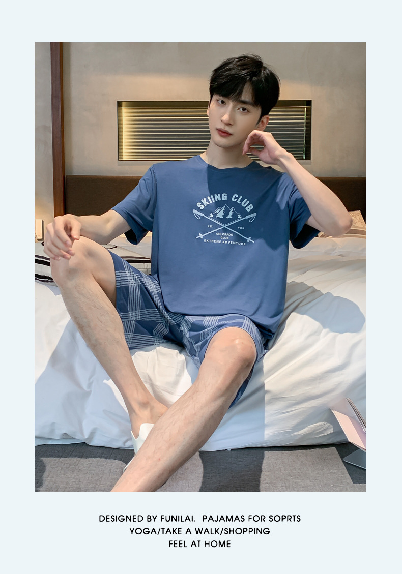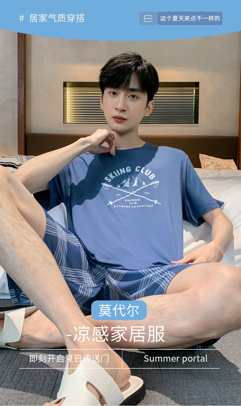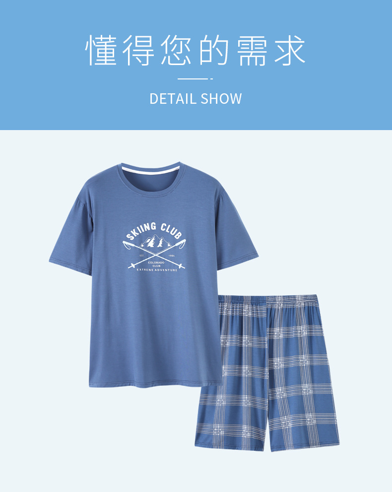 Verano de los nuevos hombres de manga corta modal pijamas casuales simples pantalones cortos a cuadros traje de ropa para el hogar en el extranjero al por mayor