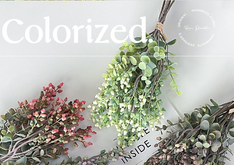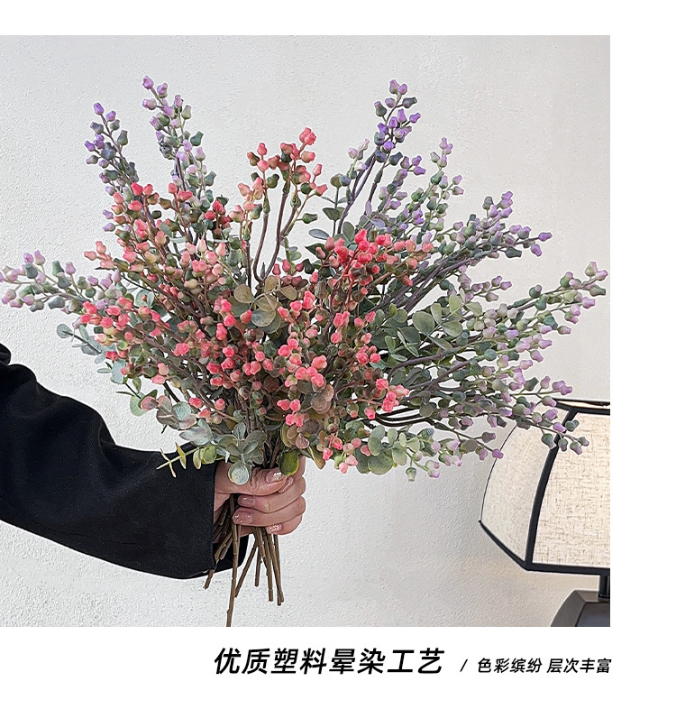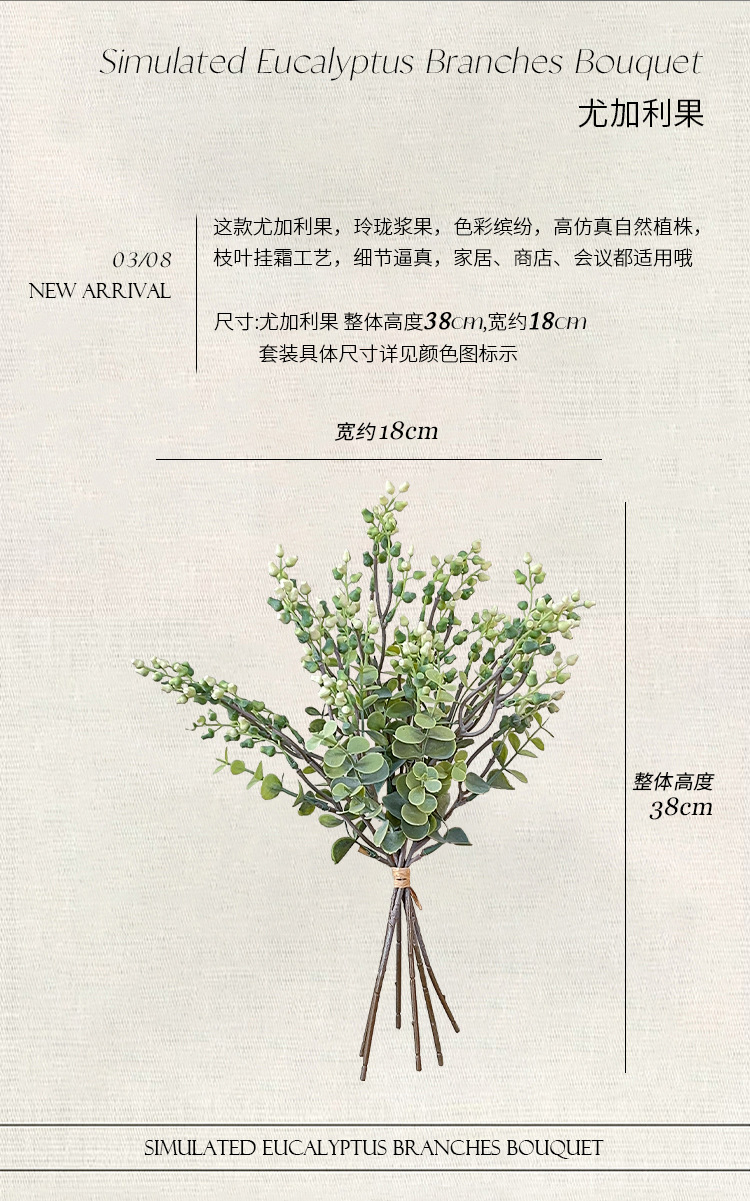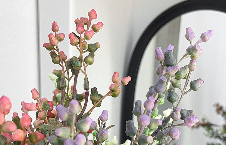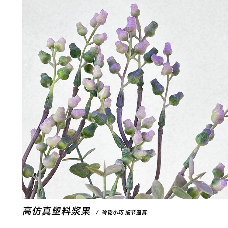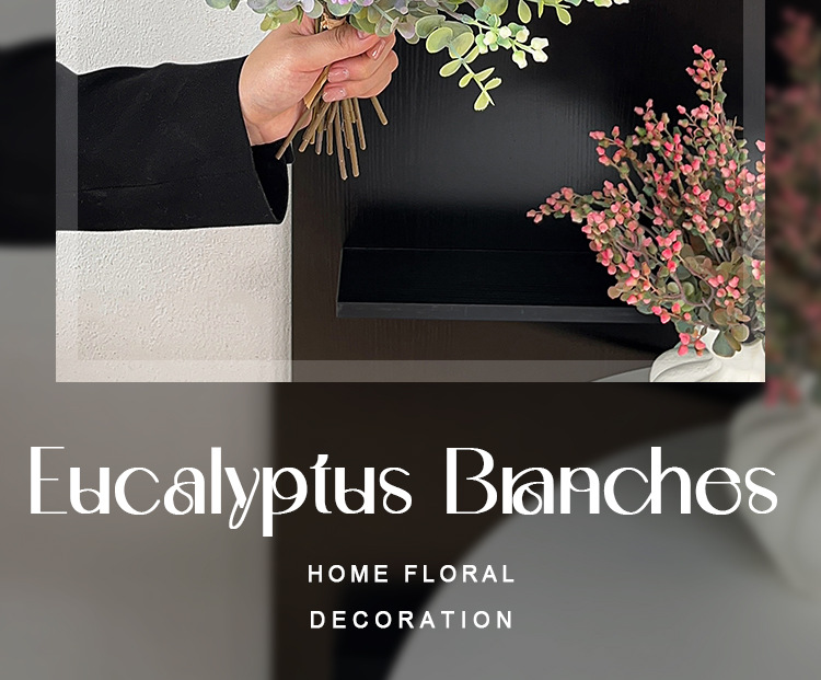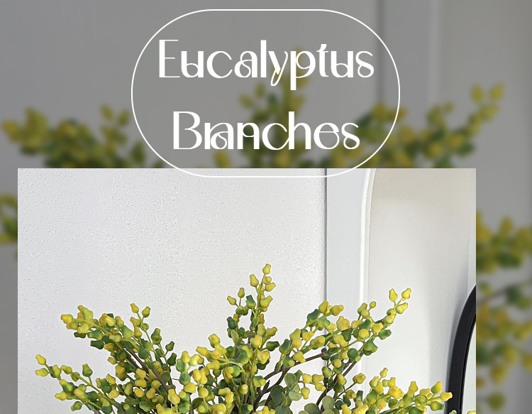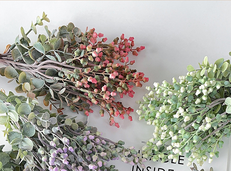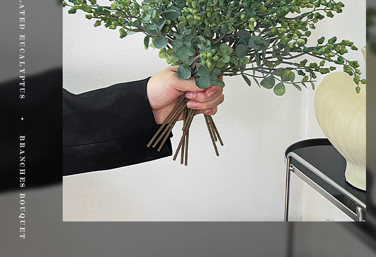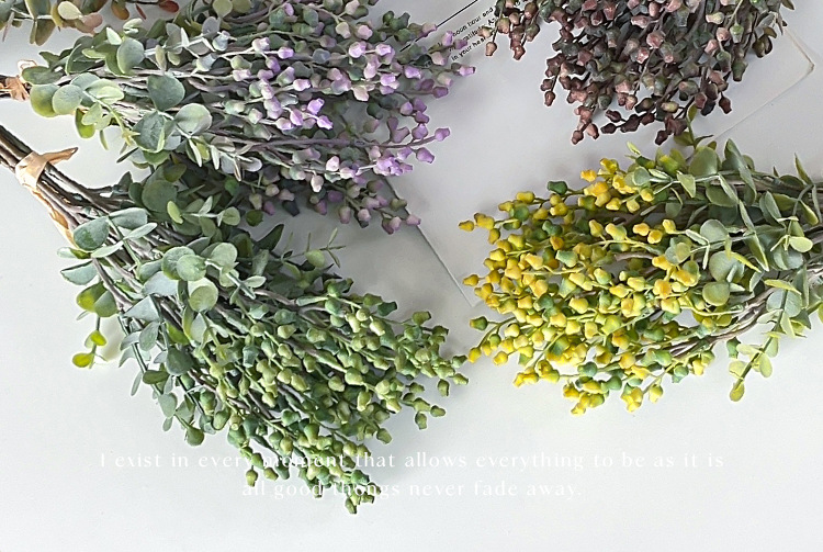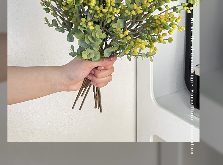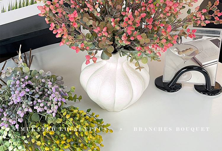 Simulación de estilo nórdico de fruta de eucalio de dinero ramas de flores falsas flores decoración de la mesa de comedor decoración