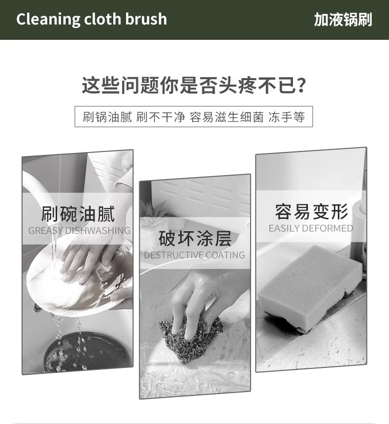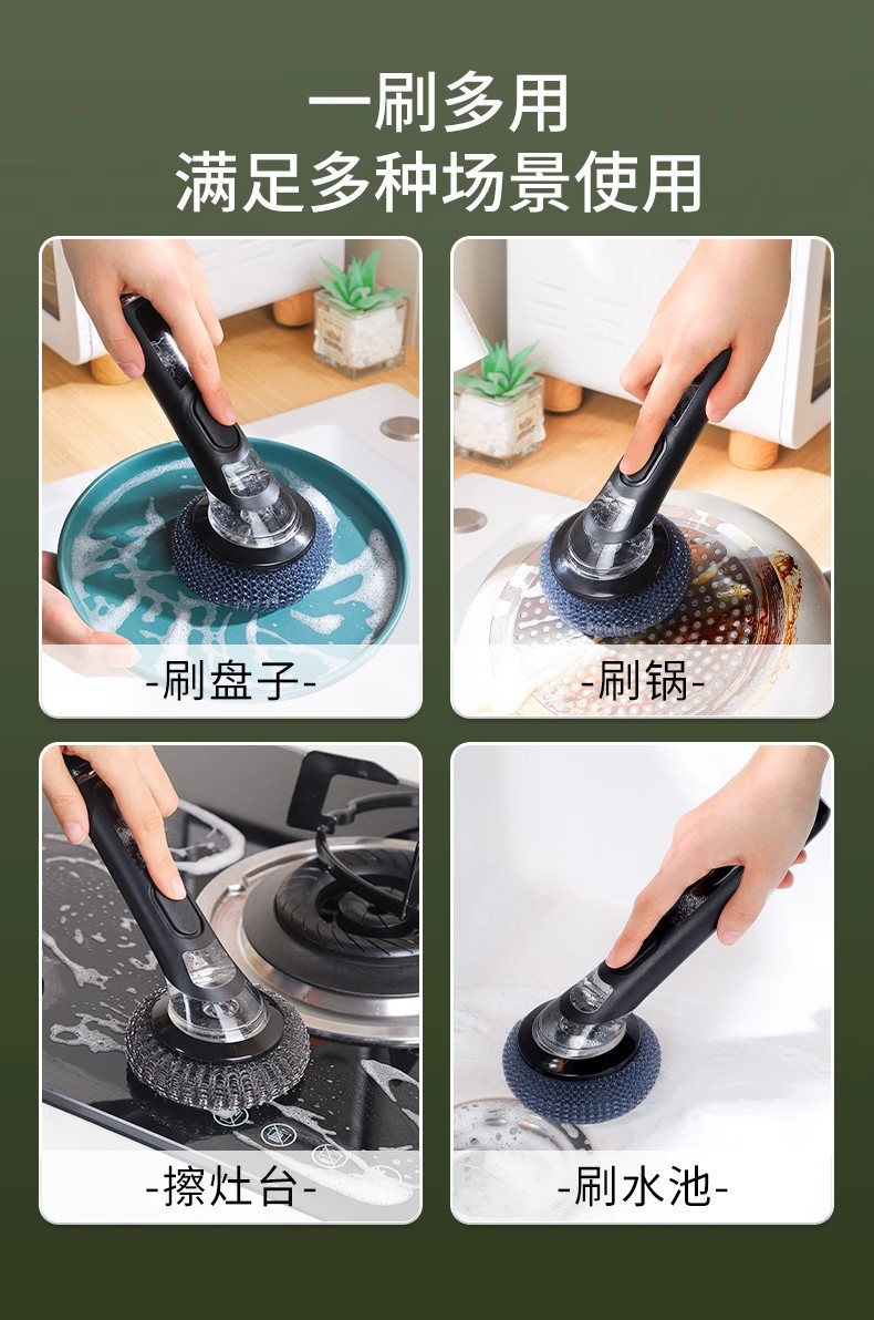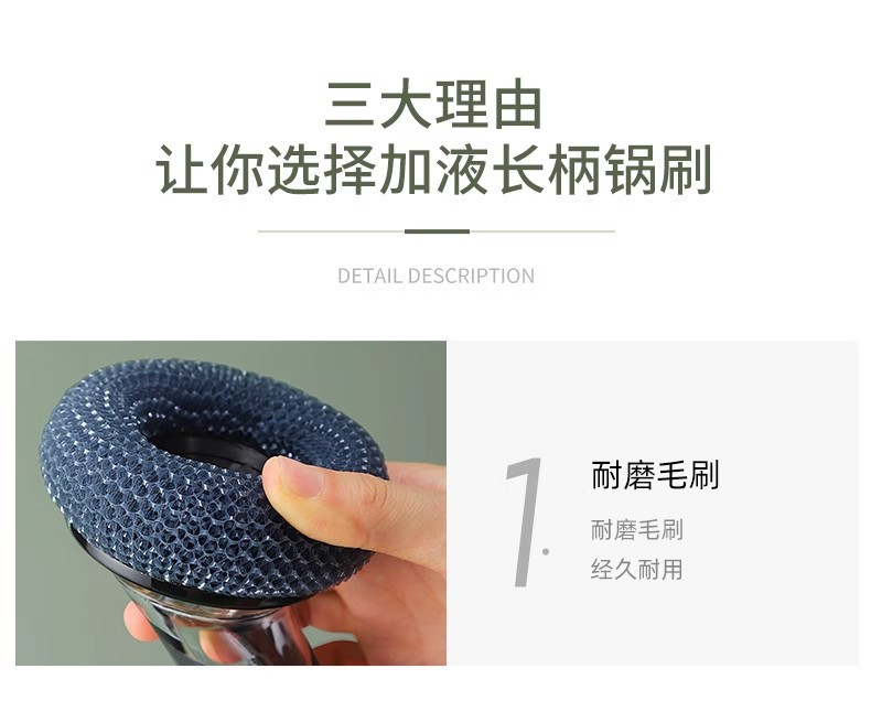 Cepillo multifuncional, mango largo, adición de líquido de alta eficiencia, cepillo de limpieza, cepillo, tazón, líquido automático, cocina doméstica, cepillo de lavado de mango largo