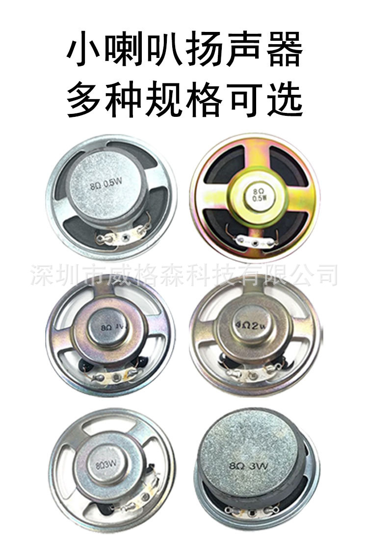 | Tipo | 2840 4欧3瓦,2840 8欧2.5瓦,2840 8欧2瓦,1635 8欧2瓦,2040 4欧3瓦塑壳,2040 8欧2瓦塑壳,2040 4欧3瓦铁壳,2040 8欧2瓦铁壳,2027 4欧3瓦,2027 8欧2瓦,2035 4欧3瓦,2035 8欧2瓦,直径28喇叭4欧2W,28mm内磁带耳朵4欧1.5瓦外线9cm2P1.0间距,直径28mm带耳喇叭 8欧2瓦,直径30薄 8欧0.5W,直径30mm喇叭带耳朵8欧1瓦,直径36薄款4欧2瓦,直径36薄款8欧0.5W,直径40薄款4欧2瓦,直径40薄款8欧0.5W,直径40方内黑膜8欧5瓦,直径45薄款8欧2瓦,40(薄) 带耳 8欧2瓦,40mm(薄) 8欧2瓦,5090外磁带耳朵 8欧10瓦,413喇叭铁 8欧10瓦,513喇叭铁 8欧10瓦,3070 铁6欧5瓦,3070喇叭18磁8欧5瓦,40银13芯8欧3瓦,4020黑膜外磁4欧3瓦,4070外磁8欧2瓦,4070喇叭18磁薄8欧5瓦,4070喇叭外磁4欧5瓦,4070喇叭22磁4欧5瓦,4070喇叭22磁8欧5瓦,4070折角内磁4欧5瓦,直径50喇叭18磁8欧1瓦,直径50银13芯8欧3瓦,5026外磁4欧3瓦黑,5090内磁4欧3瓦,5090喇叭纸盆4欧5W,5090防水8欧10瓦,5090防水4欧10瓦,77方蓝膜4欧5瓦,77圆外磁4欧5瓦,77圆外磁防水4欧5瓦,77mm方内磁4欧10瓦,77方外磁4欧10瓦,77方外磁4欧20瓦,77方外磁8欧20瓦,77烤黑方外磁8欧20瓦,66方内磁4欧5瓦,66圆外磁8欧3瓦,66mm方内磁8欧5瓦,66圆喇叭18磁头8欧1瓦,52方内银膜4欧3W,52方外磁黑膜4R3W,52外磁方形银4欧3瓦,57圆外磁4欧5瓦,57圆外磁8欧1瓦,57圆薄8欧0.5瓦,4寸方外磁防水4欧10瓦,4寸方外磁防水8欧10瓦,4寸方外磁4欧5瓦,4寸方外磁8R5W,40圆13芯银锅底8欧2瓦,40圆银锅底13芯4欧3瓦,40黑膜16芯4欧3瓦,45喇叭18磁8欧0.5瓦,4070折角内磁8欧4瓦,512喇叭8欧10瓦,613翘脚8欧10W,50喇叭18磁头8欧1瓦,50喇叭18磁头8欧2瓦,50银膜22磁4欧5瓦,50圆外磁8欧0.5瓦,50防水4欧3W,50防水8欧1W,50防水8欧2W,黑色4545(4欧5瓦音腔喇叭),20040铁外磁6欧10瓦(一对),17045铁喇叭6欧10瓦(一对),22631喇叭8欧12瓦(一对),22631喇叭8欧15瓦(一对) |