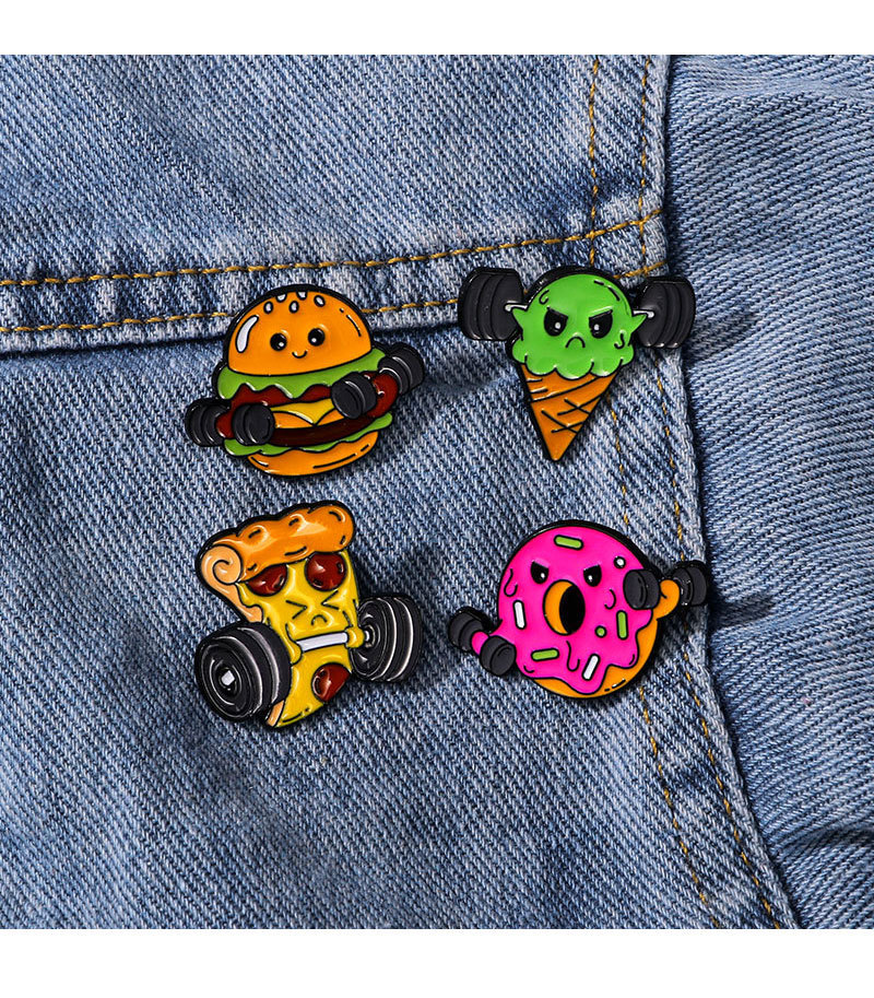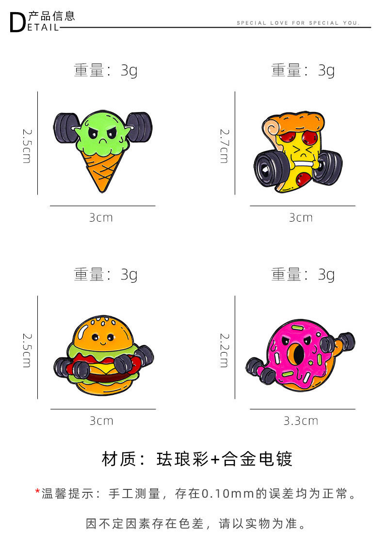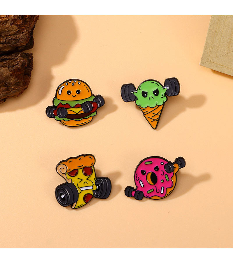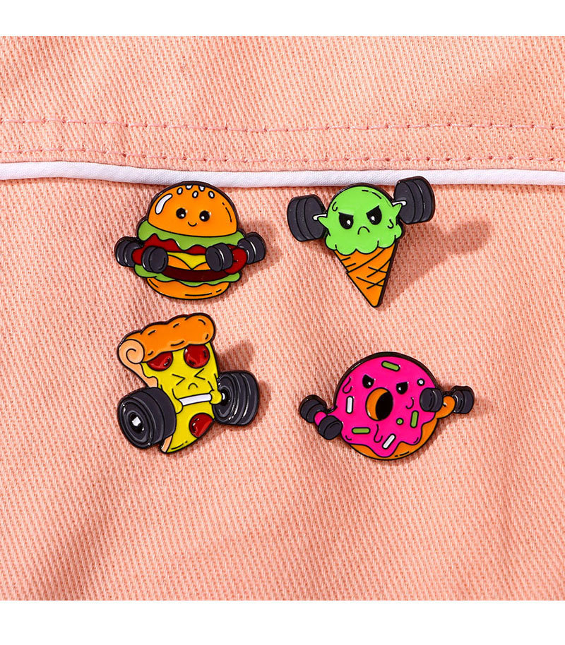 Serie de comida original dibujos animados goteo aleación broche hamburguesas pizza helado modelado ropa decoración insignia