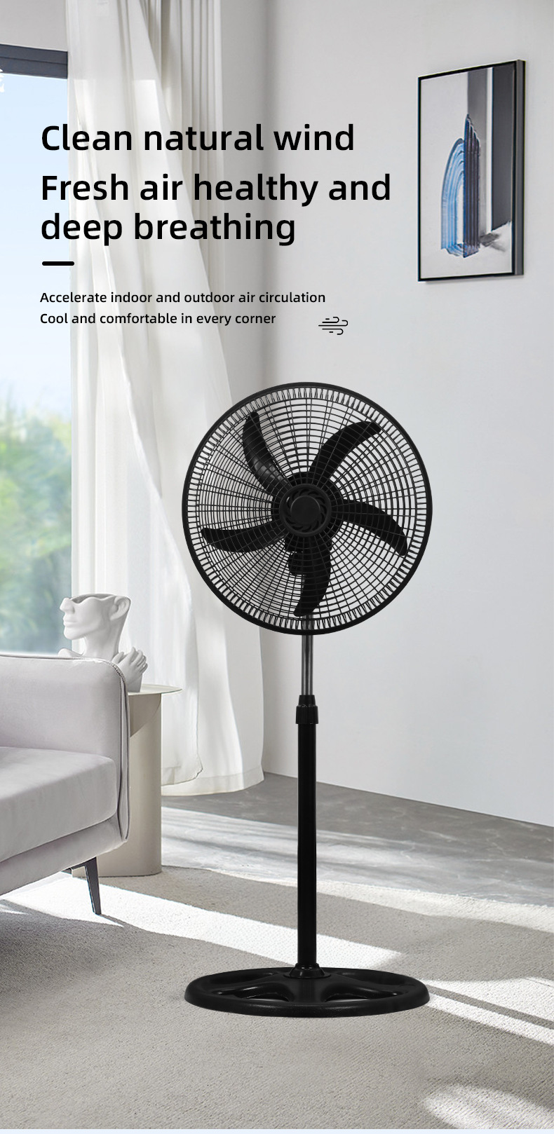 Fabricantes al por mayor 18 pulgadas ventilador de suelo de gran viento cubierta de malla de plástico negro gran ventilador de energía eólica África América del Sur comercio exterior