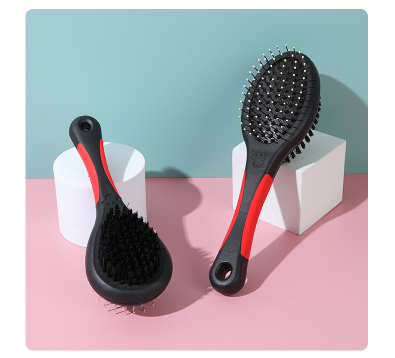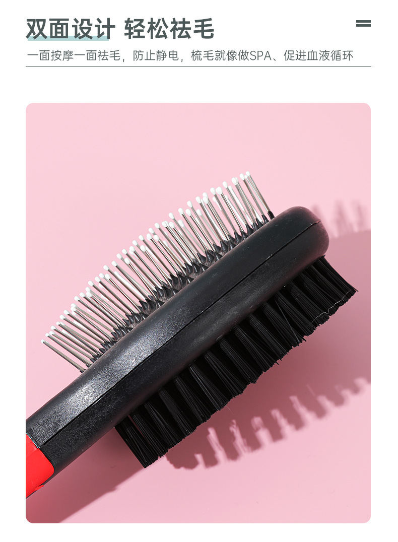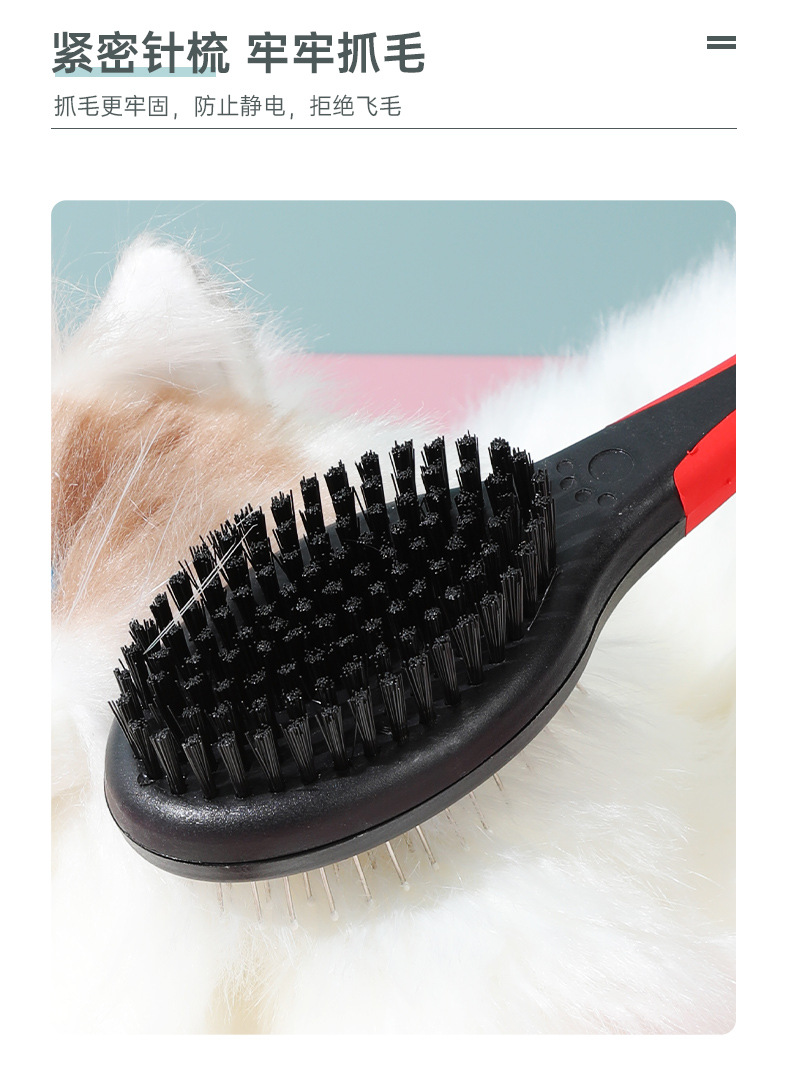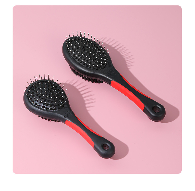 mango de plástico negro pegamento rojo dos lados peinado gato y perro general acero inoxidable aguja peinado pelo peinado mascotas al por mayor