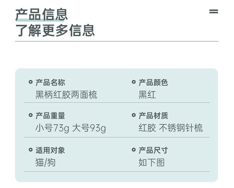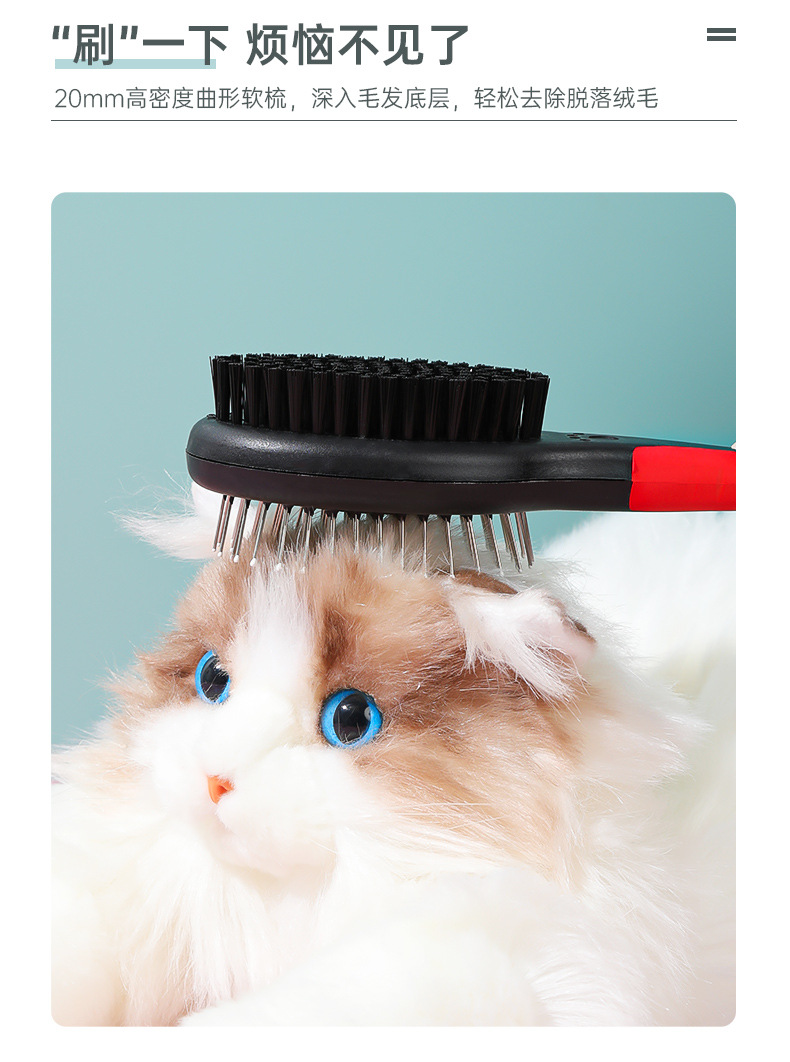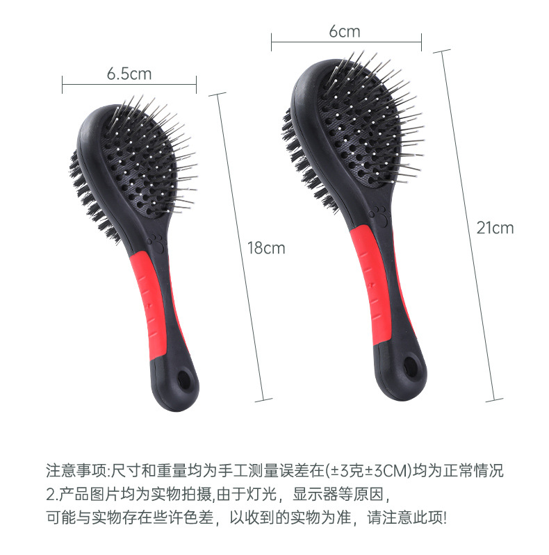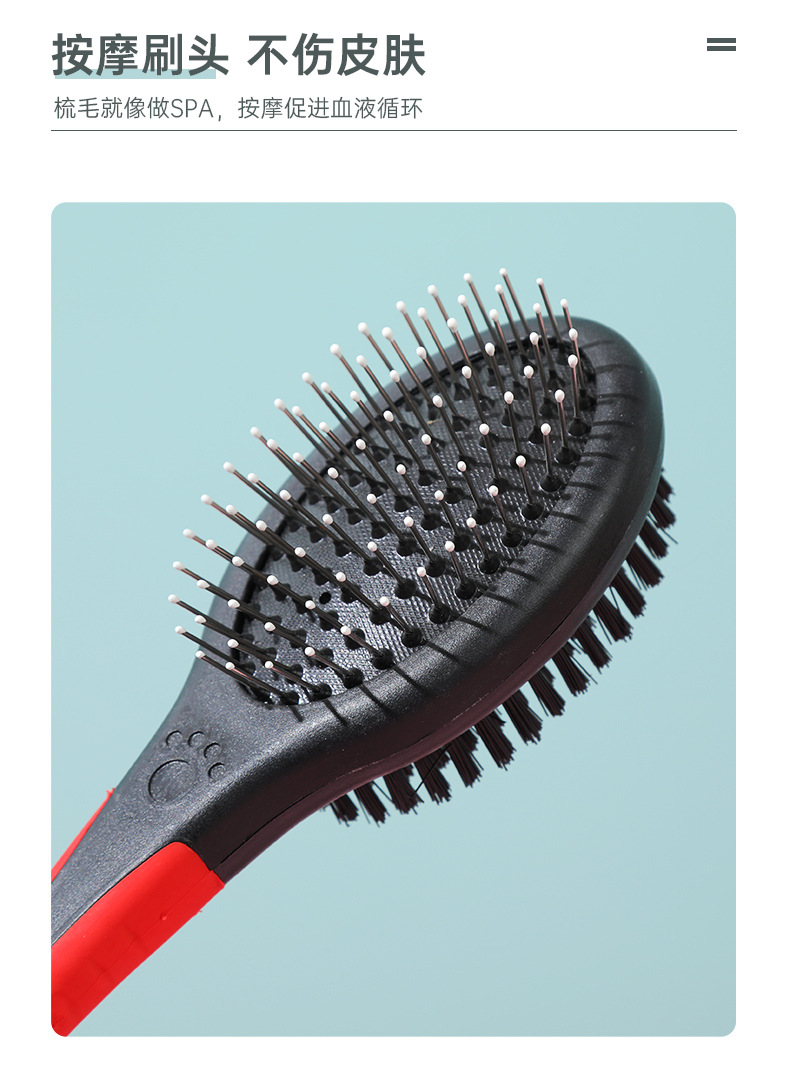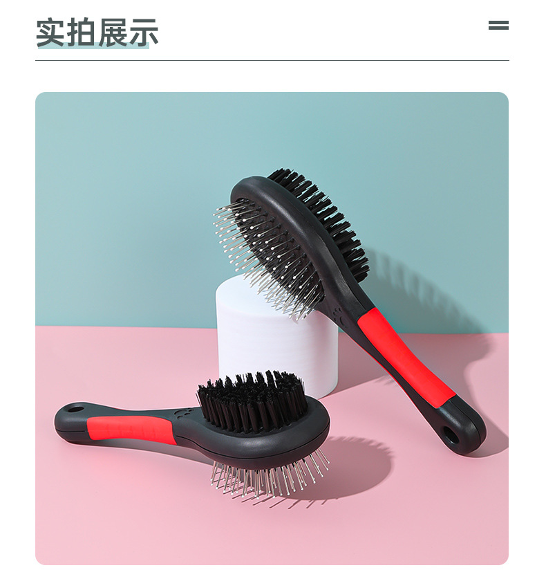 mango de plástico negro pegamento rojo dos lados peinado gato y perro general acero inoxidable aguja peinado pelo peinado mascotas al por mayor