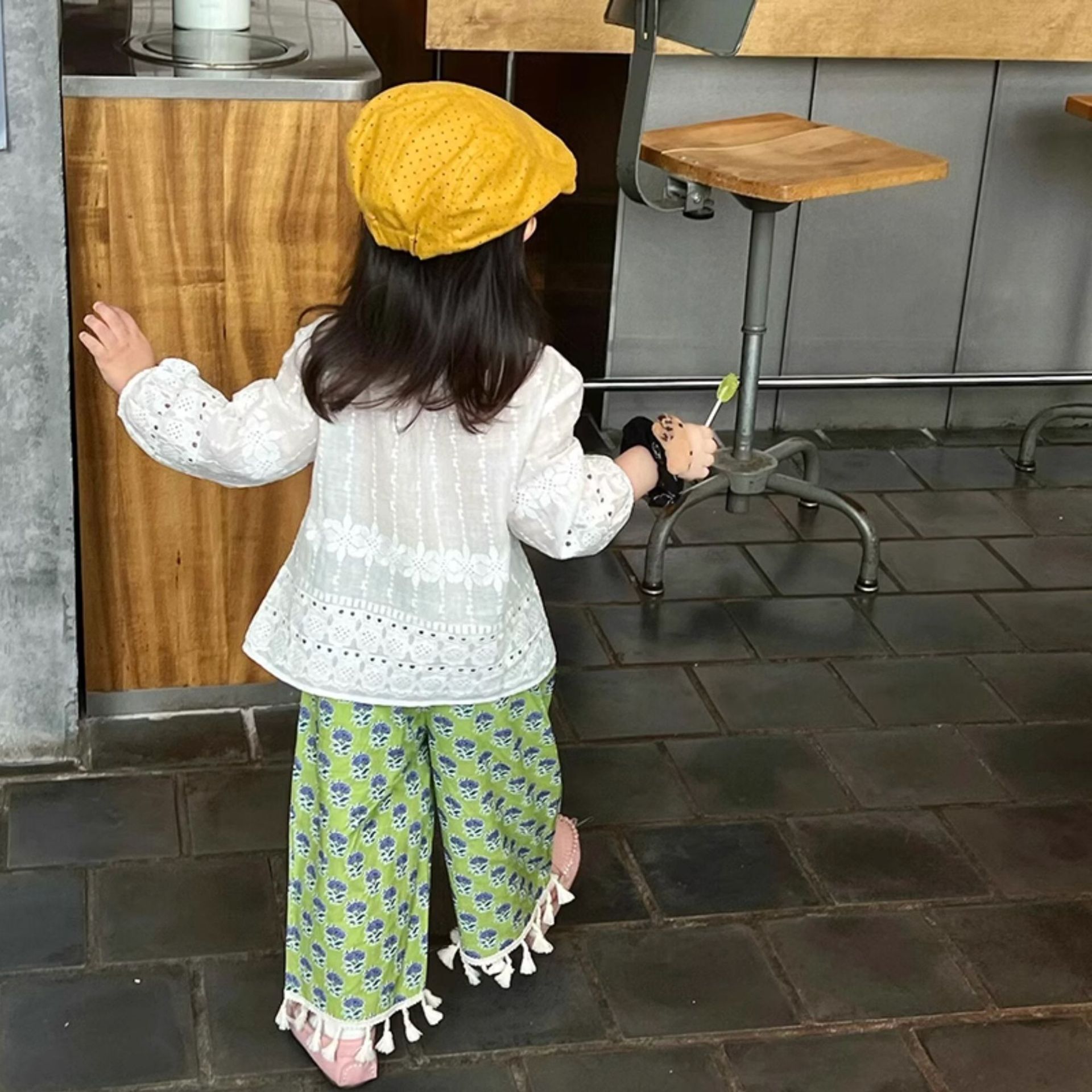 Ropa de vacaciones para padres e hijos, ropa de mujer para madres, trajes para niñas, ropa de principios de primavera, camisa blanca de moda para bebés, pantalones verdes