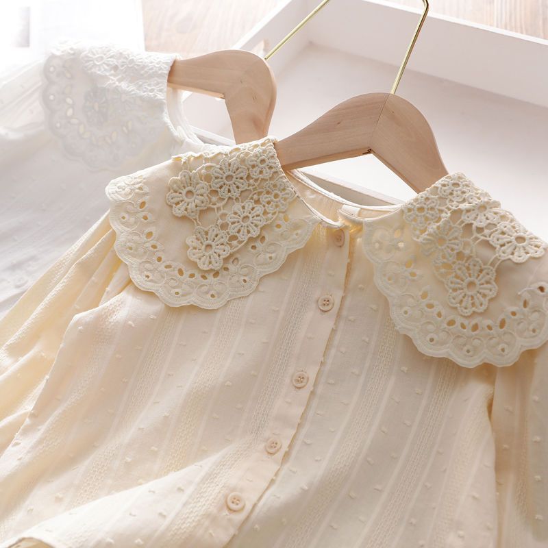 Primavera y otoño camisas de ropa de niñas bebés estilo extranjero marca de moda personalidad coreana encaje dulce camisa blanca hueca