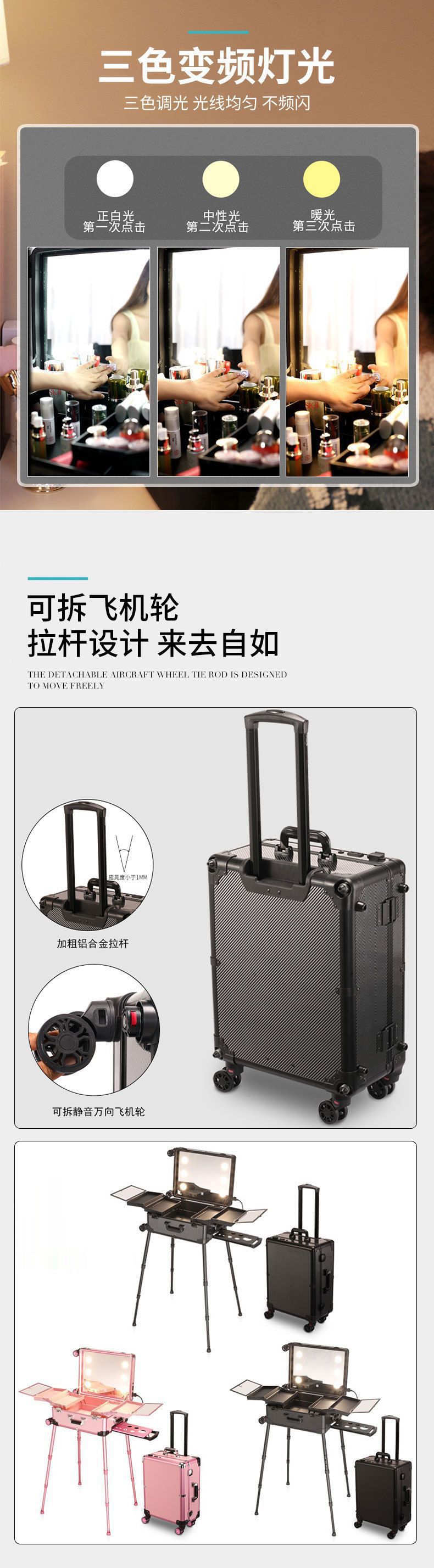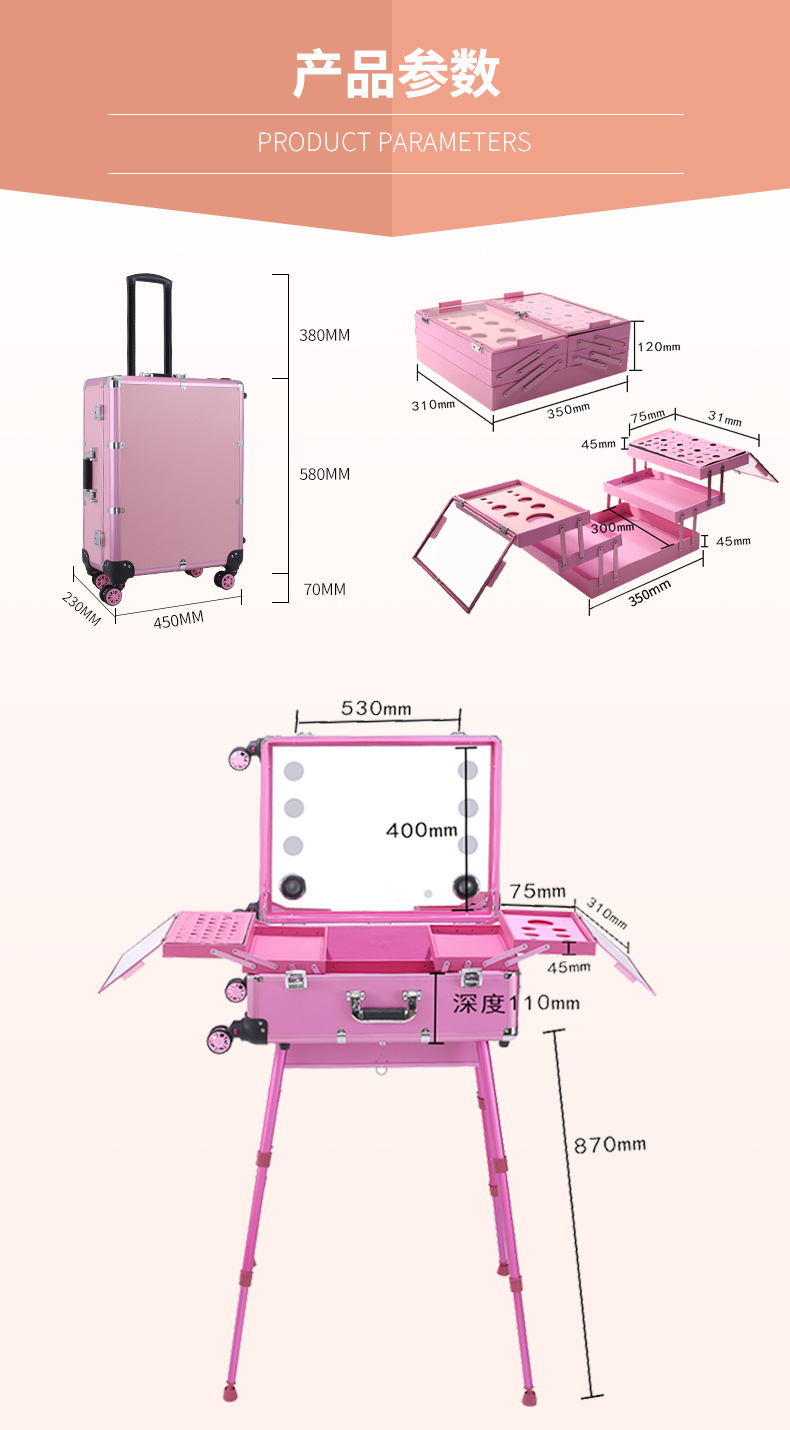 Caja cosmética de aleación de aluminio con carro ligero multifuncional tatuaje belleza Bluetooth carro caso maquillaje artista Caja de Herramientas