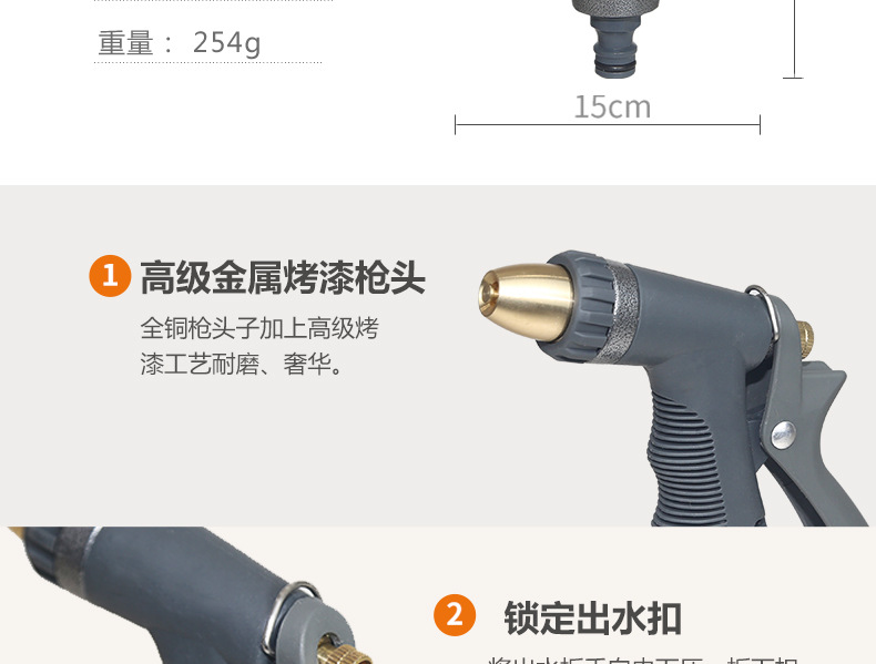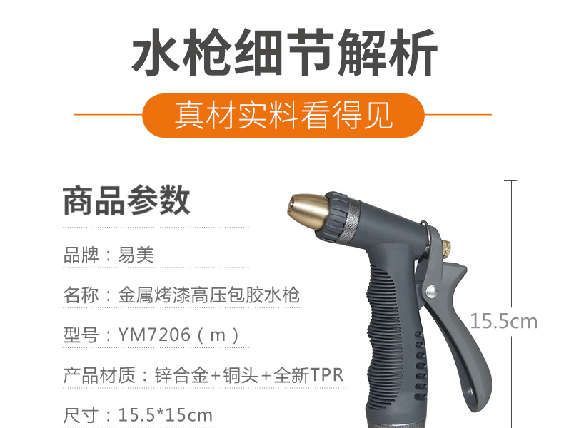 Pistola de rociador de agua multifuncional de metal para jardinería de agua para lavado de automóviles domésticos para mascotas para baños de alta presión para jardín