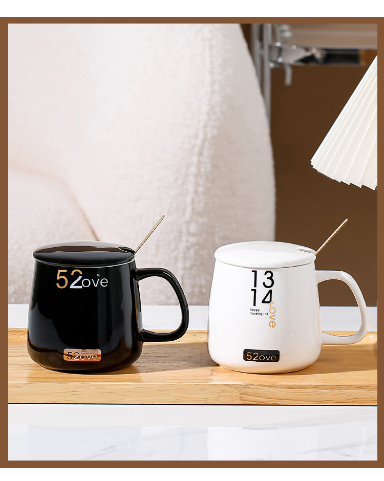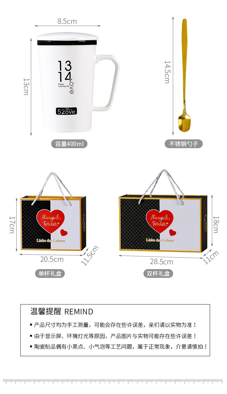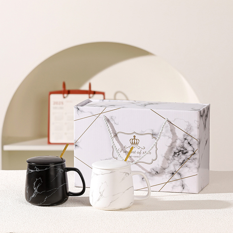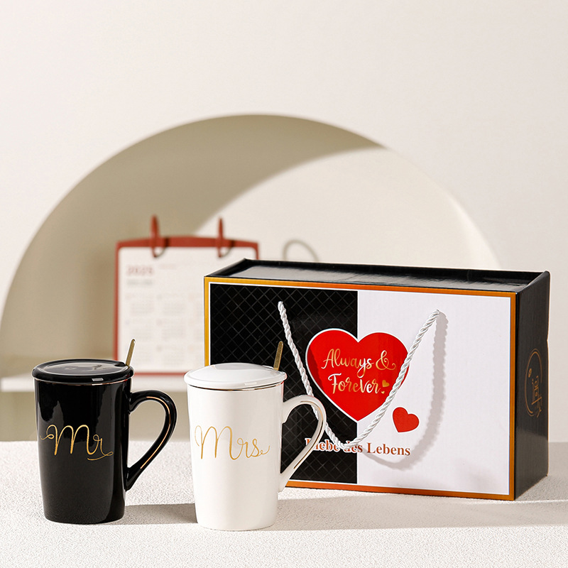 Taza de cerámica simple para casarse con un par de copas de marca logotipo personalizado para parejas en blanco y negro para copas caja de regalo de boda