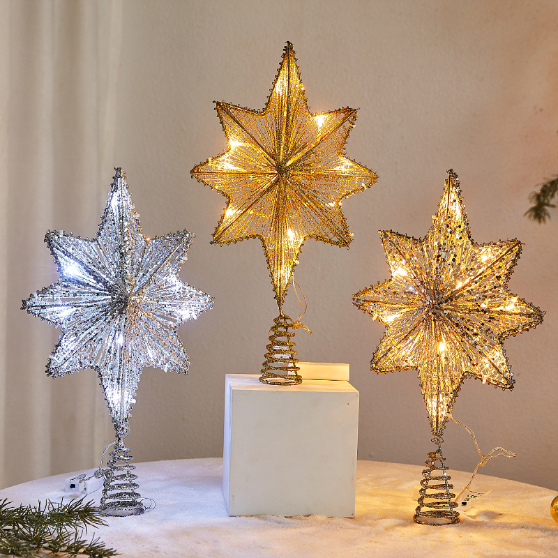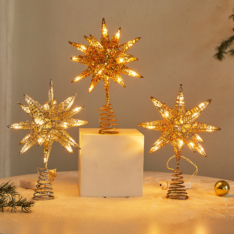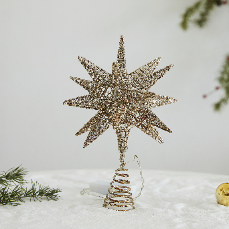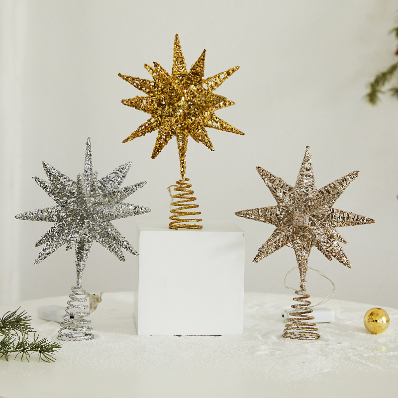 Decoración de estrella de techo de base dura navideña dedicada transfronteriza estrella de cinco puntas tridimensional brillo de hierro forjado suministros navideños de cinco estrellas