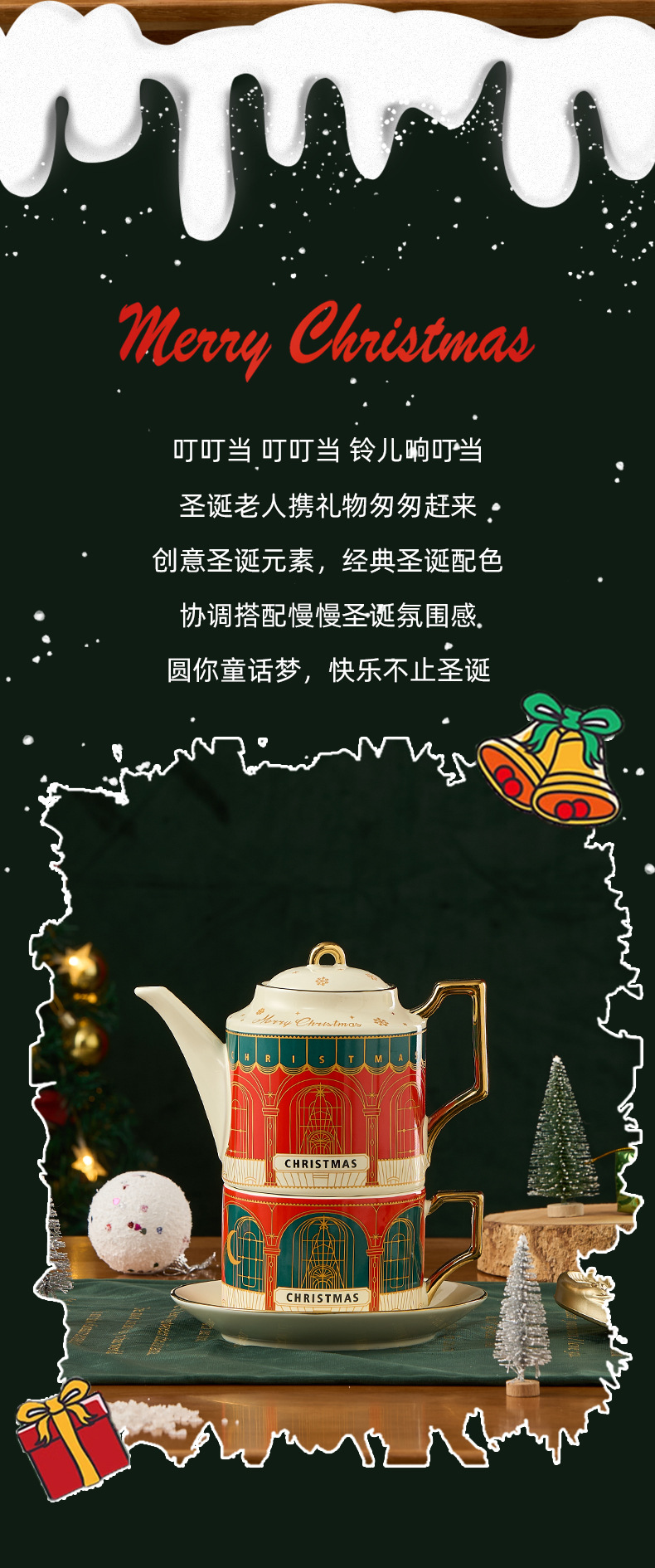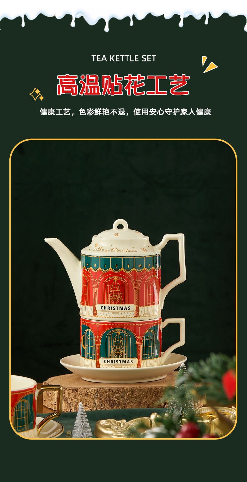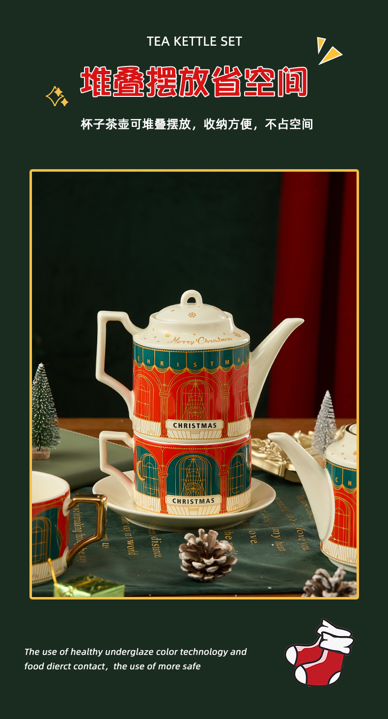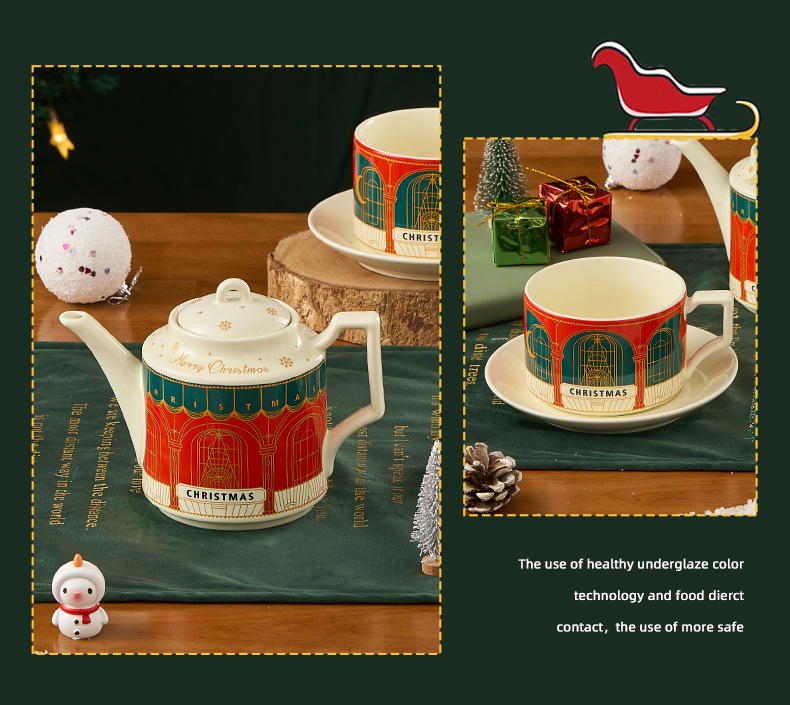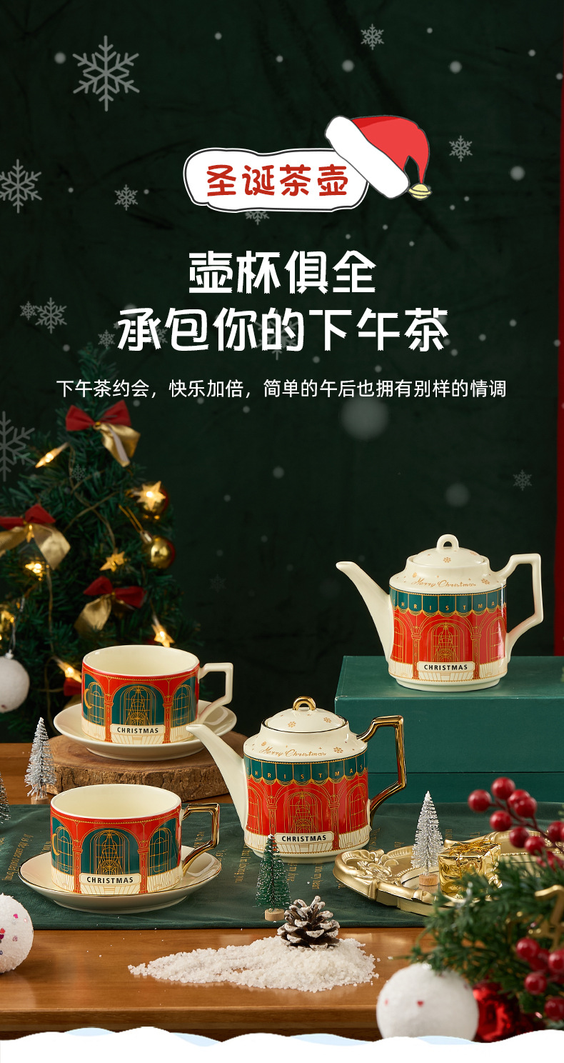 Ins set de té de cerámica Navidad acompañante caja de regalo tetera británica Amazon oro platos tazas de café