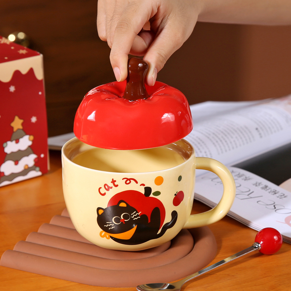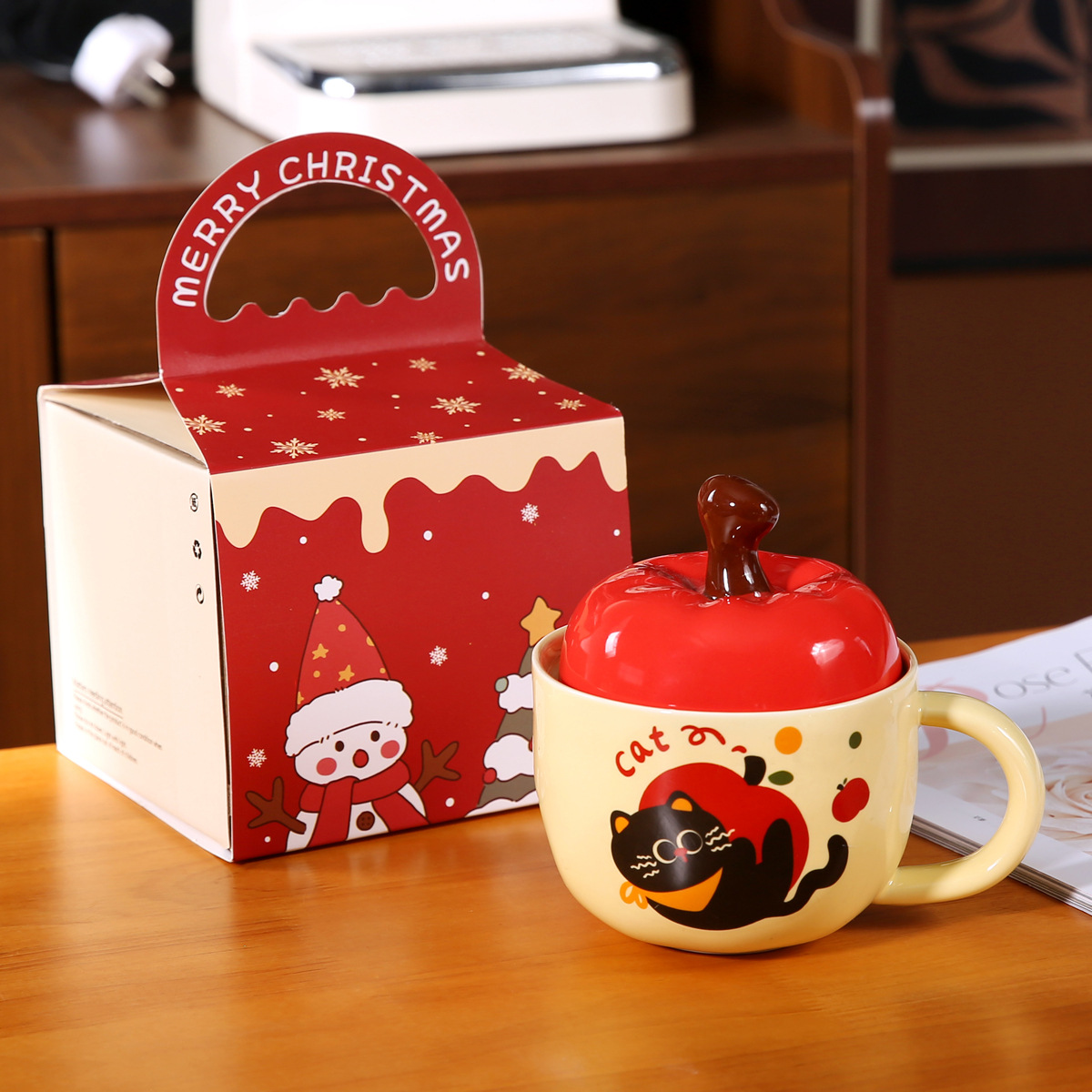 Taza de cerámica de dibujos animados de fruta de seguridad navideña nueva transfronteriza linda taza de agua de Navidad regalo taza de Navidad