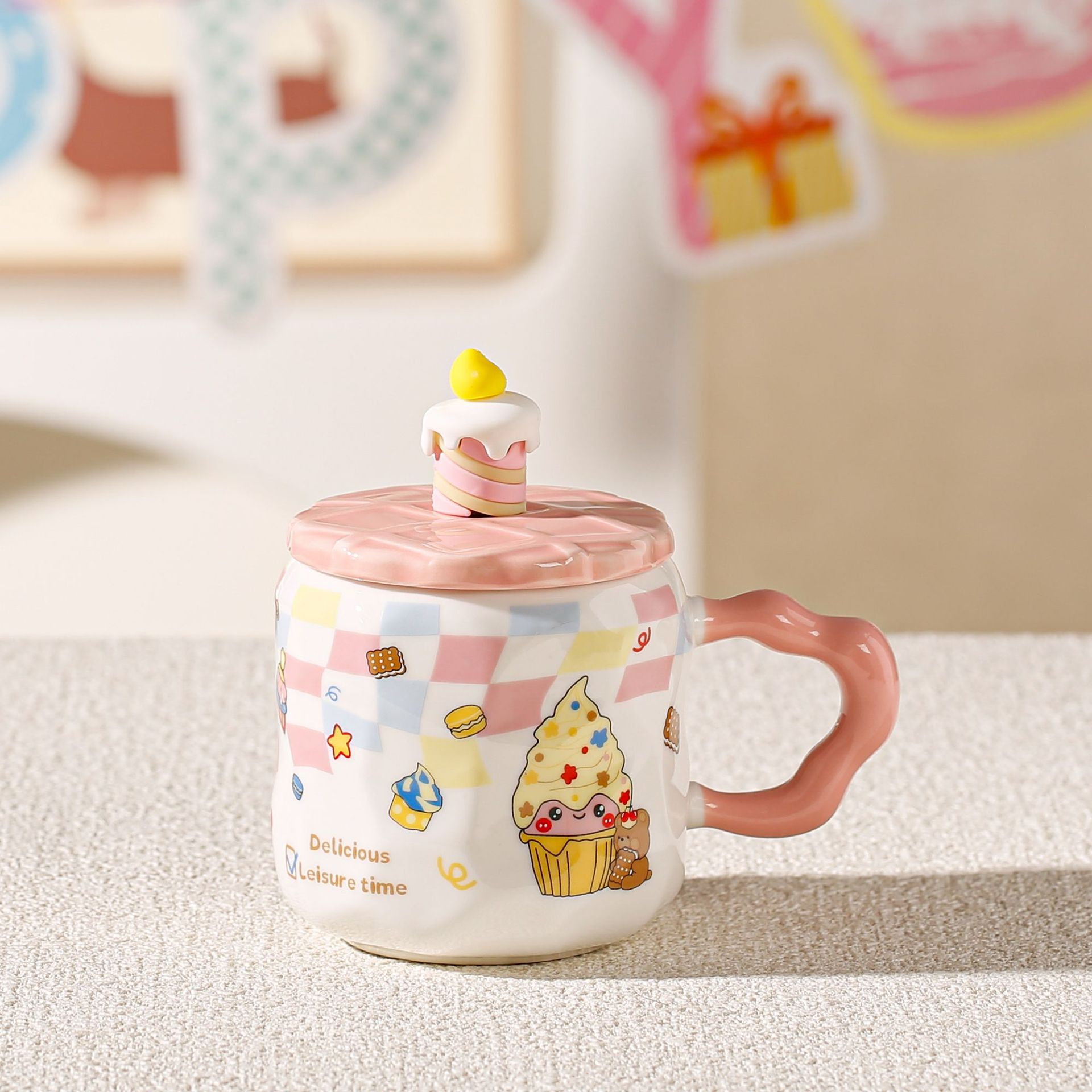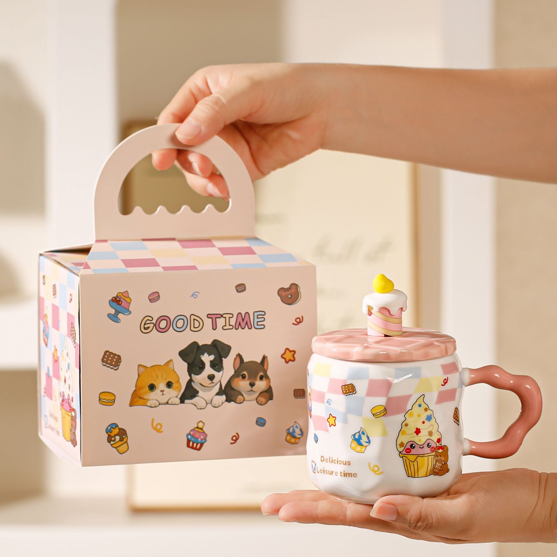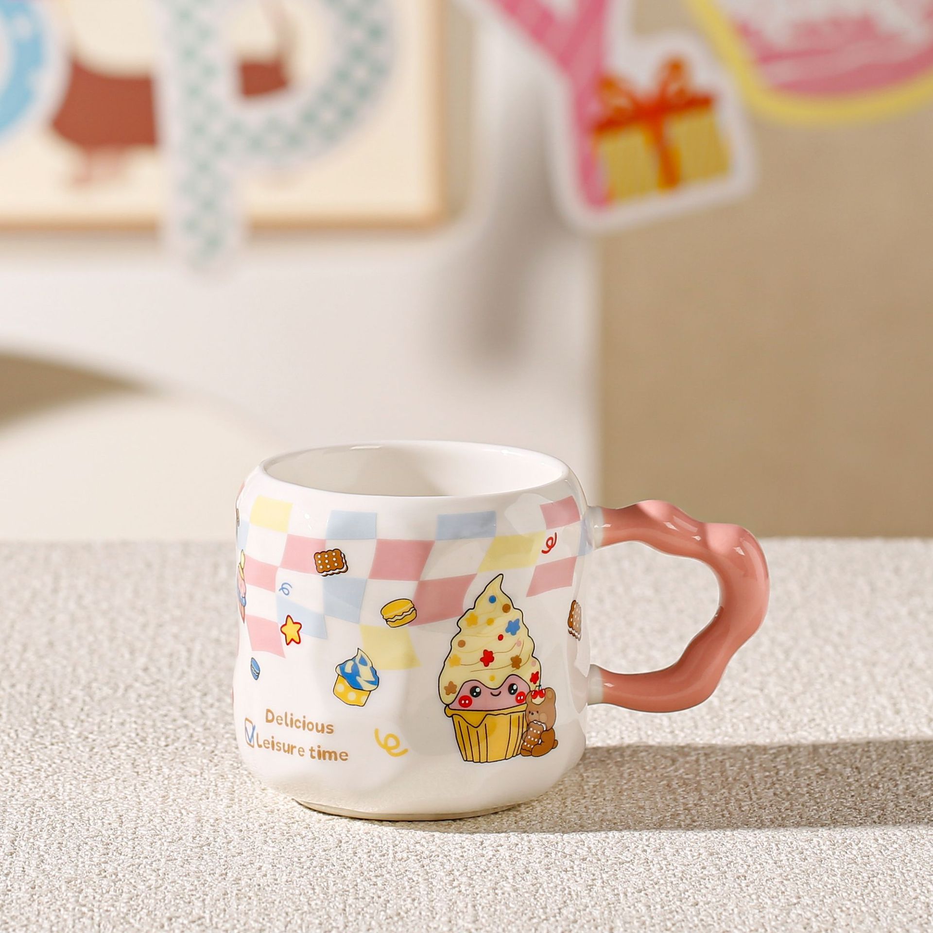 Taza de helado linda, regalo pequeño exquisito, taza de agua potable para niñas de alto valor, taza de café de oficina de cerámica