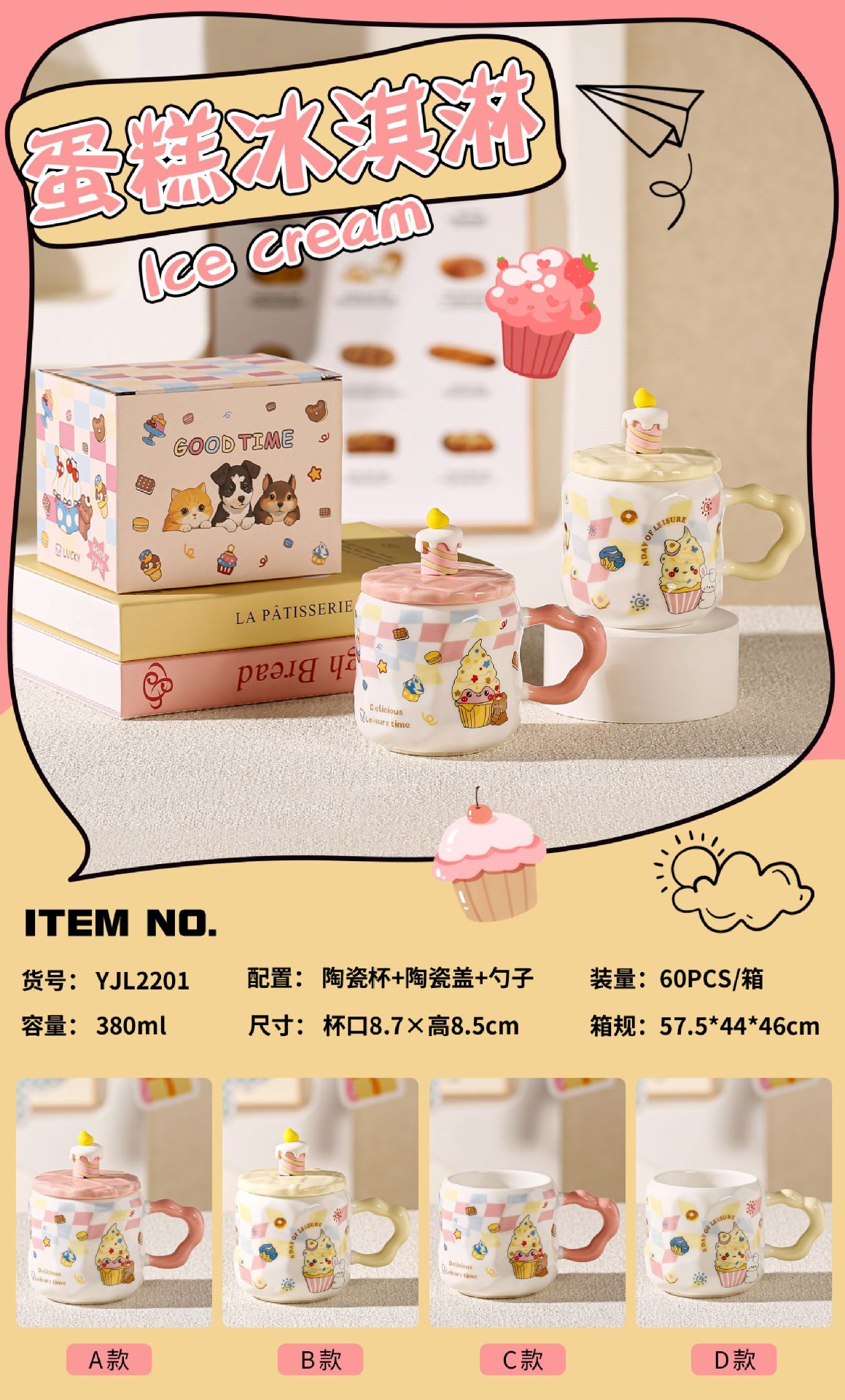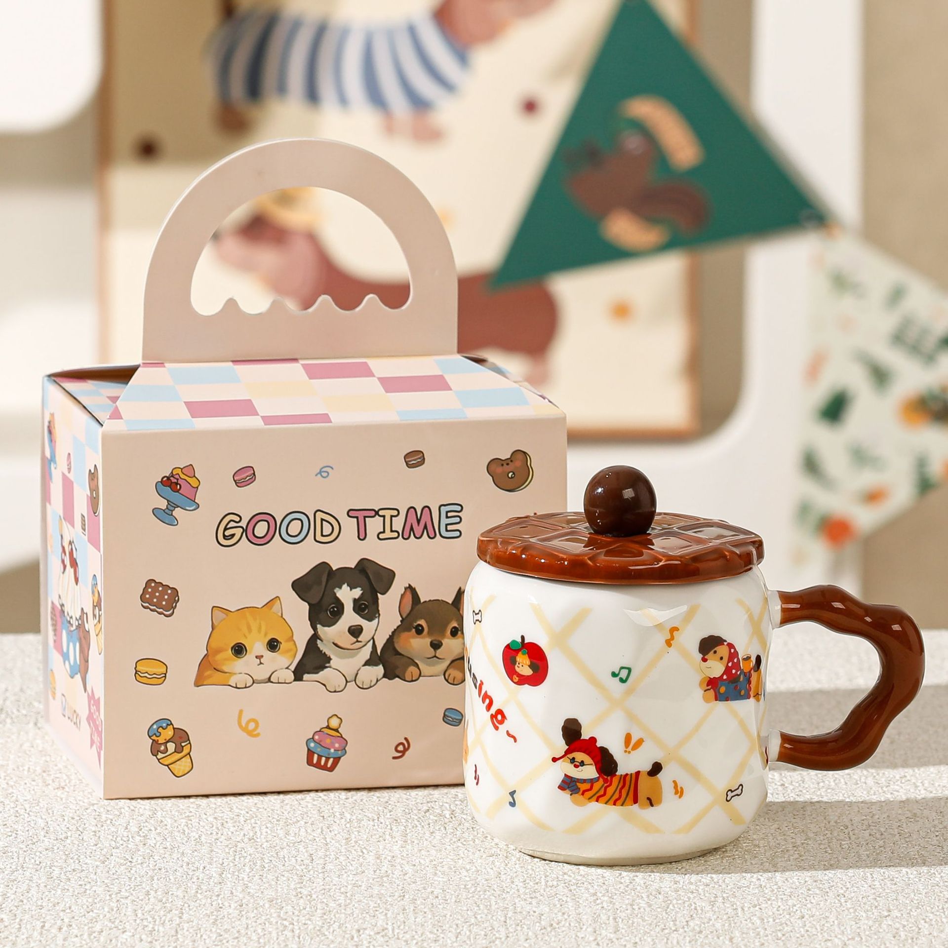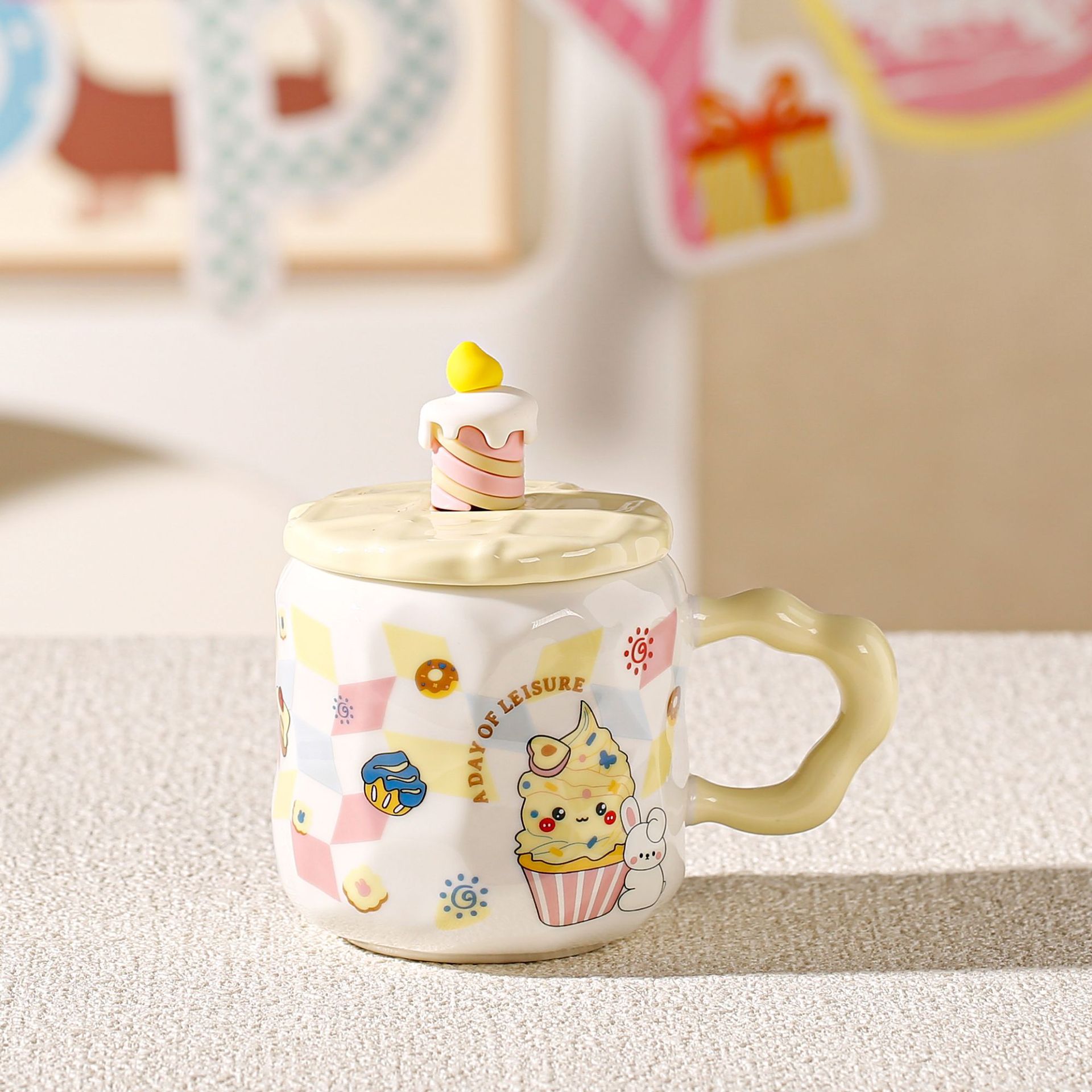 Taza de helado linda, regalo pequeño exquisito, taza de agua potable para niñas de alto valor, taza de café de oficina de cerámica