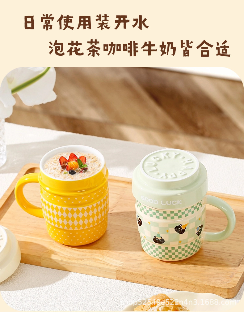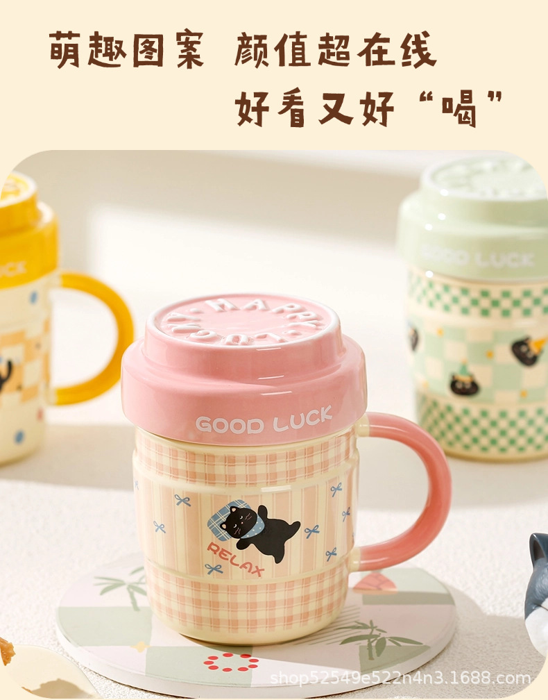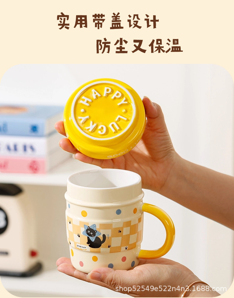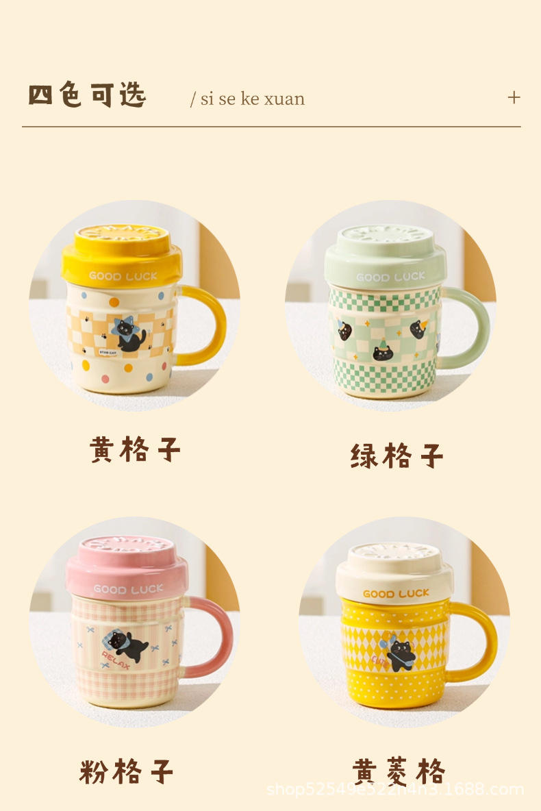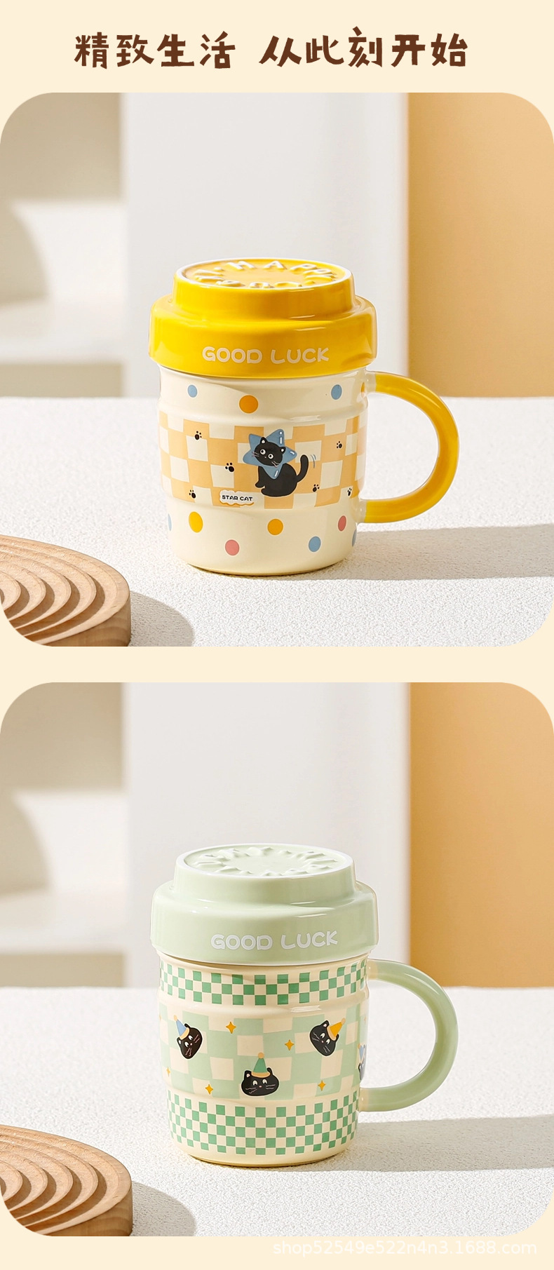 Taza de cerámica de alto valor con tapa de caricatura gato negro taza de regalo de cumpleaños regalo de mano taza de agua bebida pareja de oficina