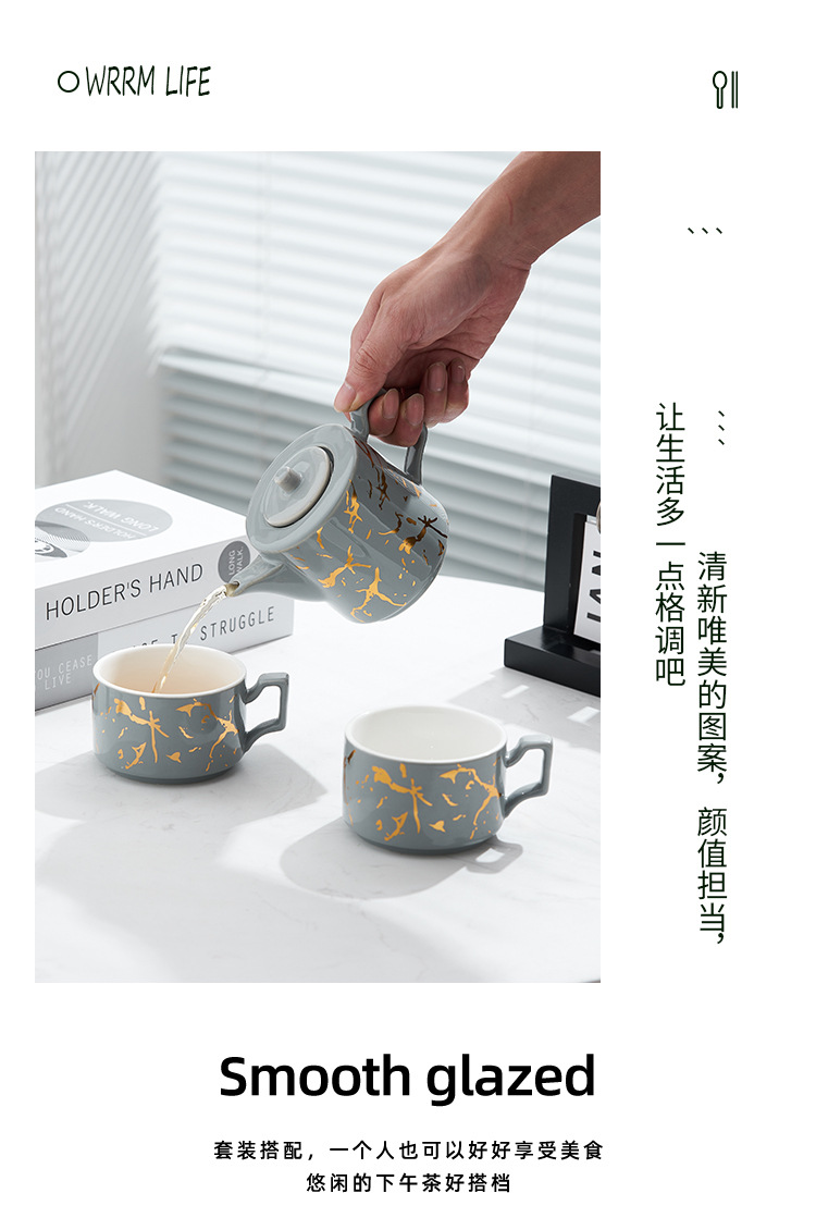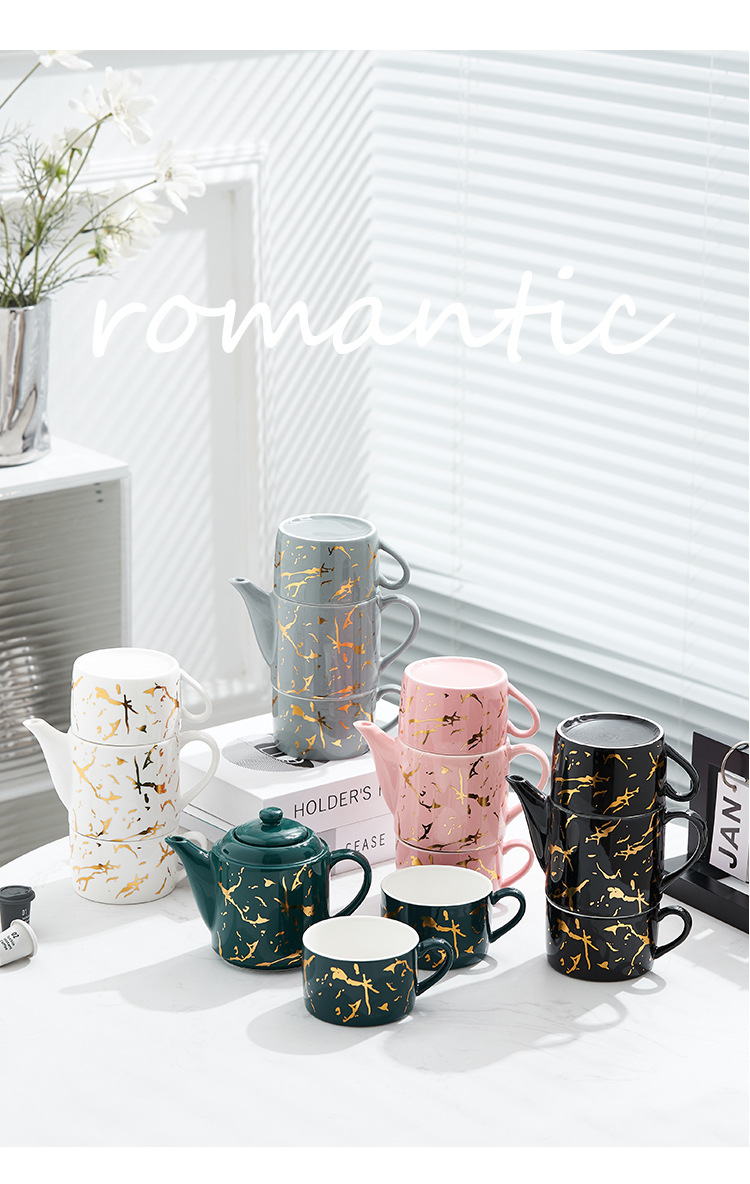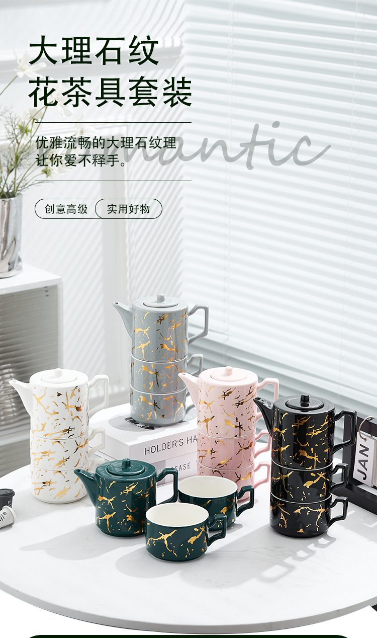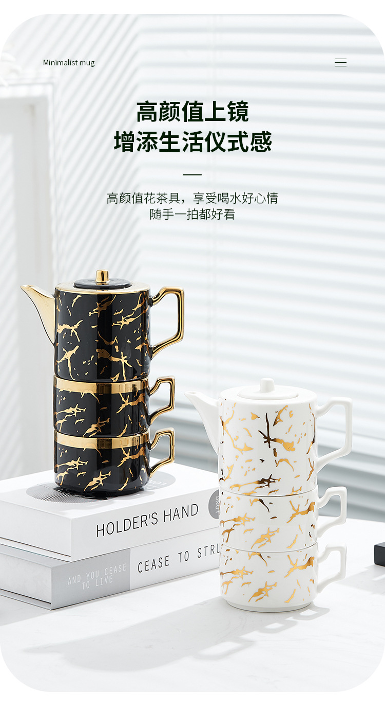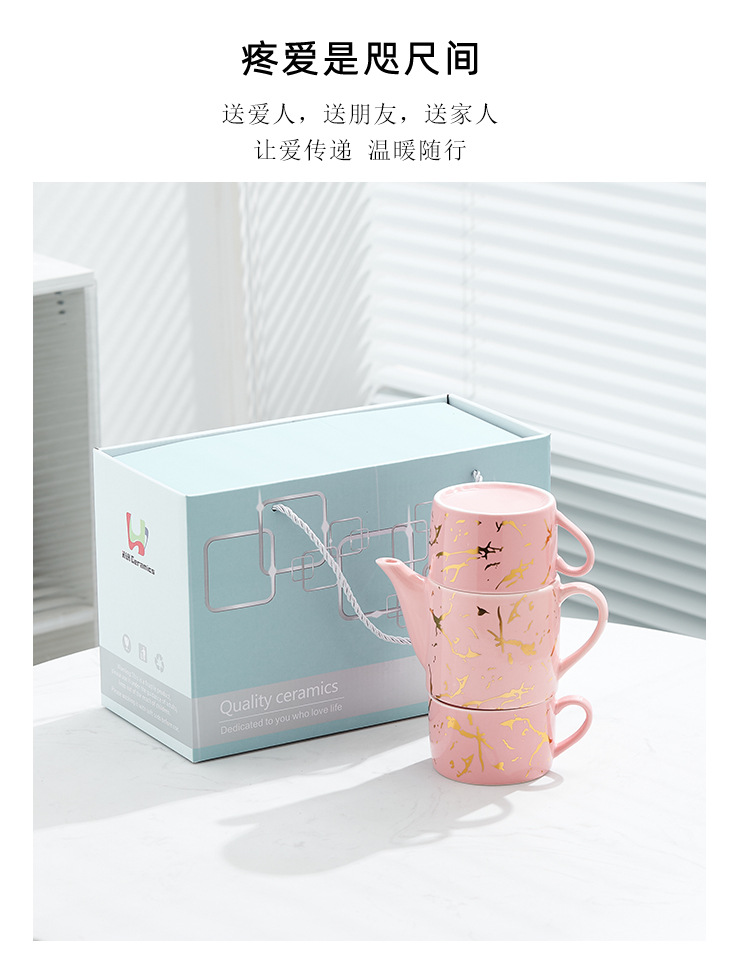 Oro marbling flor juego de té Nordic ins juego de té traje Luz de lujo tarde juego de té caja de regalo embalaje