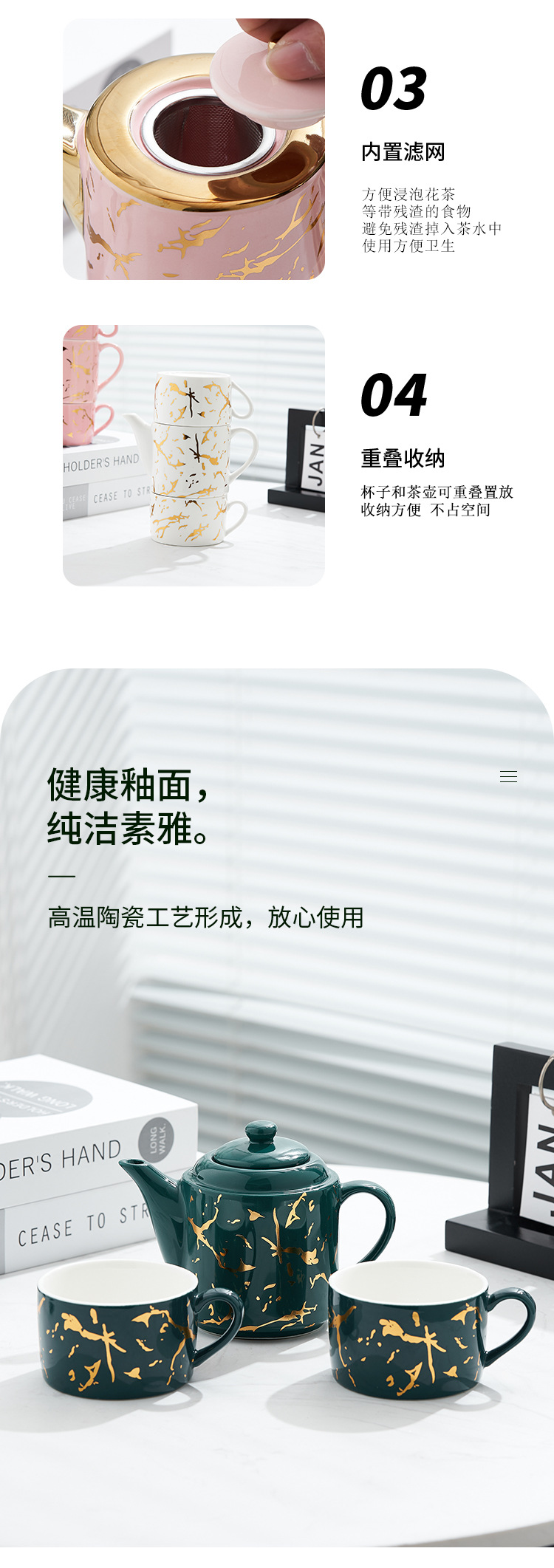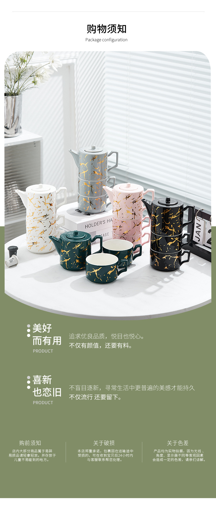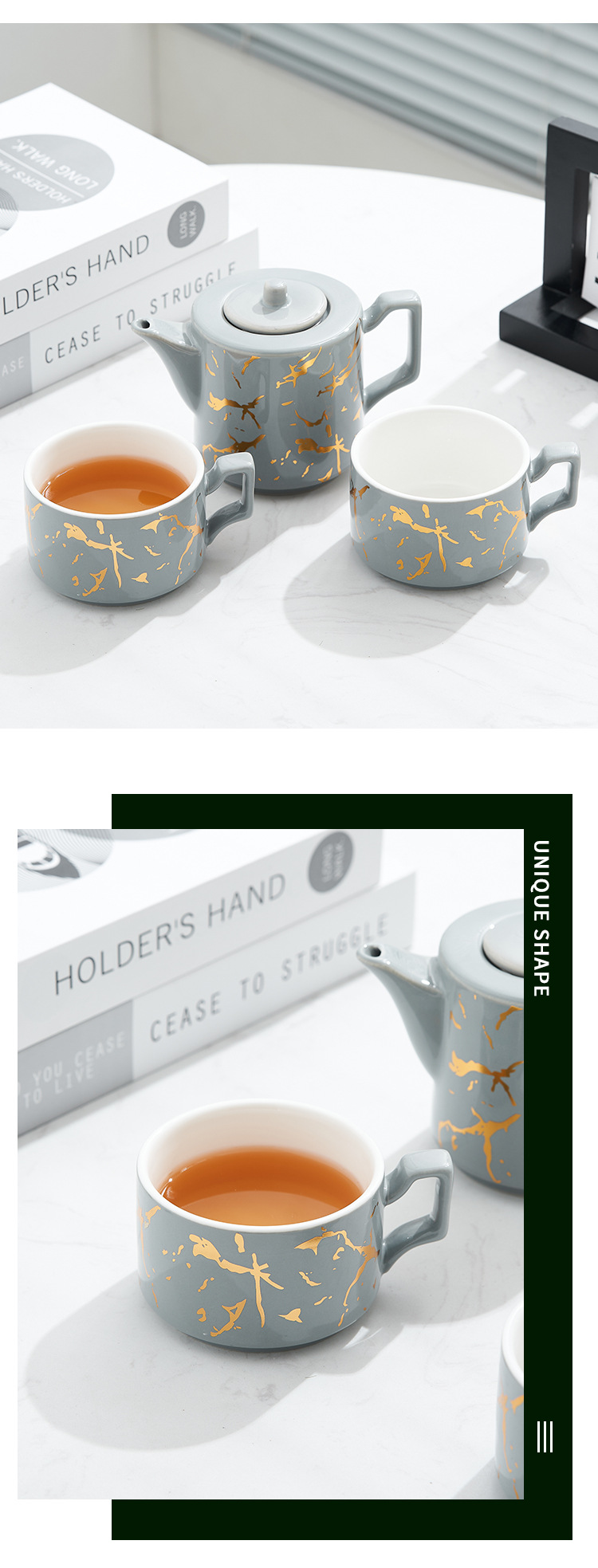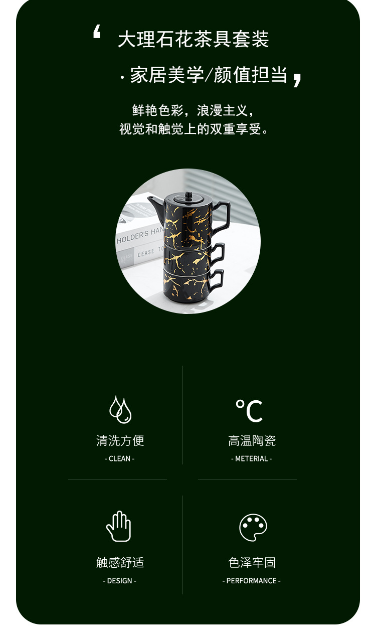 Oro marbling flor juego de té Nordic ins juego de té traje Luz de lujo tarde juego de té caja de regalo embalaje