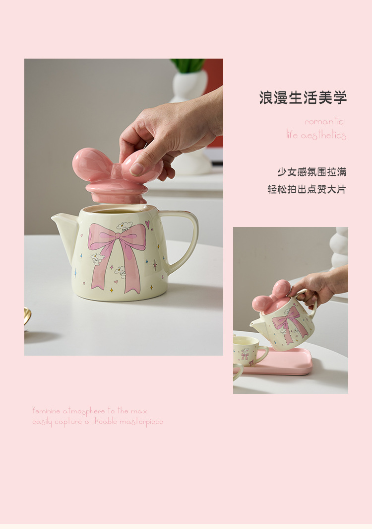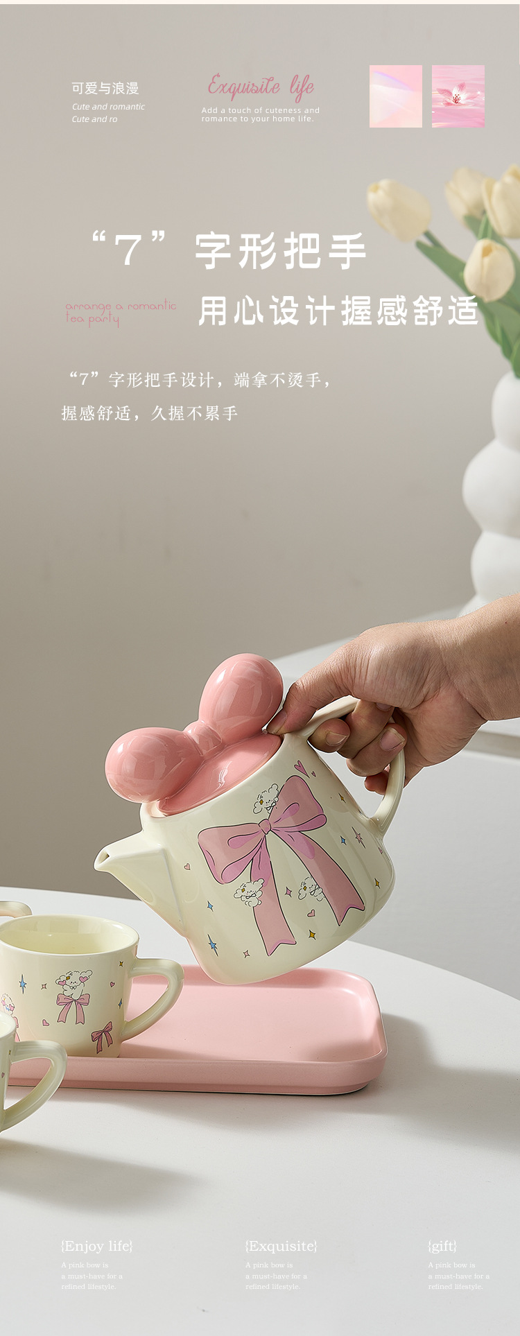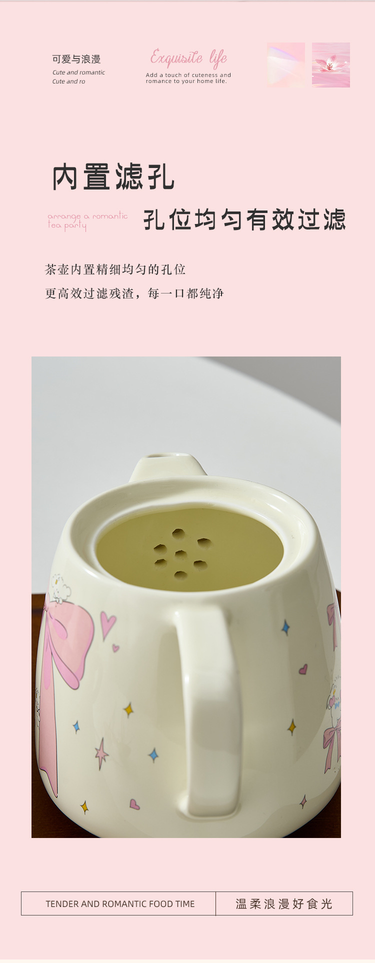 Juego de té de cerámica Tetera de flores de kung fu para niñas, hervidor de agua frío con filtro resistente al calor lindo, taza de agua iNS, tetera