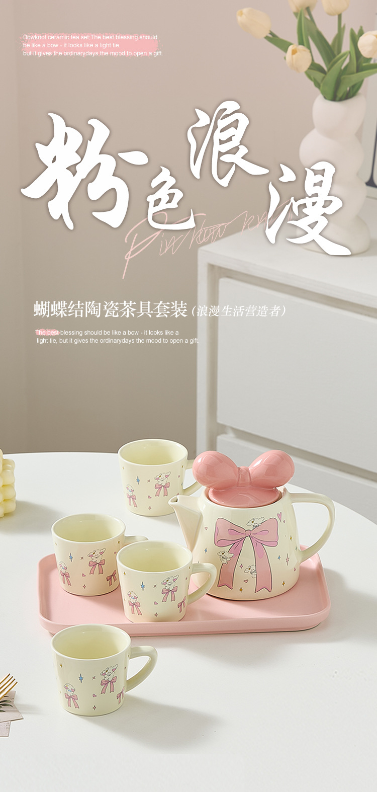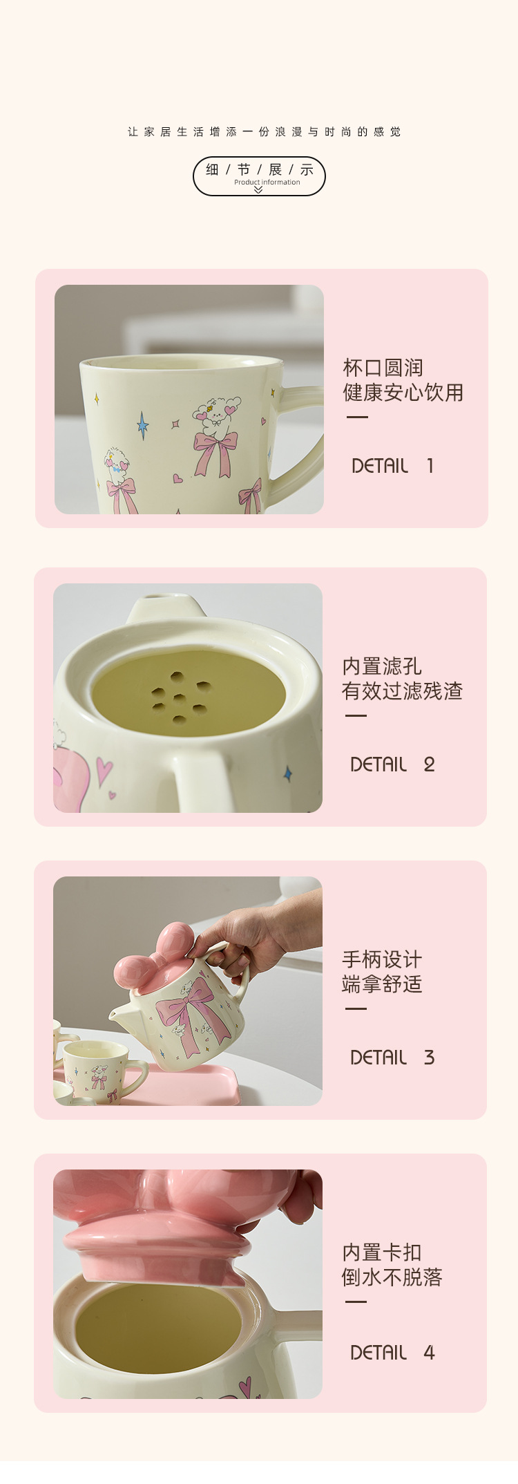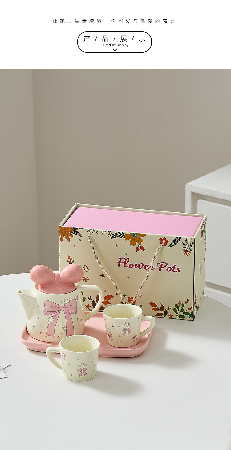 Juego de té de cerámica Tetera de flores de kung fu para niñas, hervidor de agua frío con filtro resistente al calor lindo, taza de agua iNS, tetera