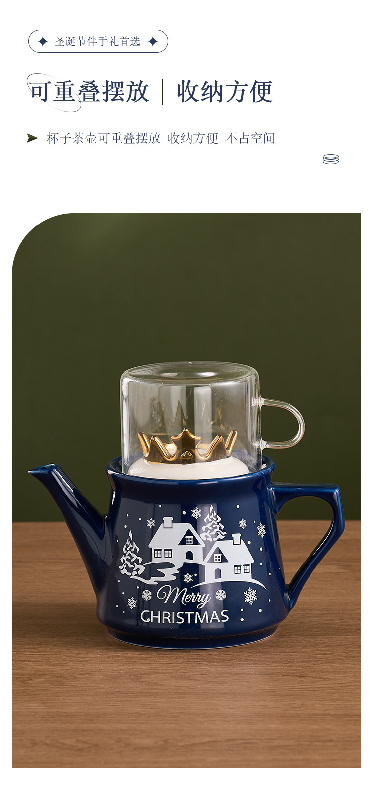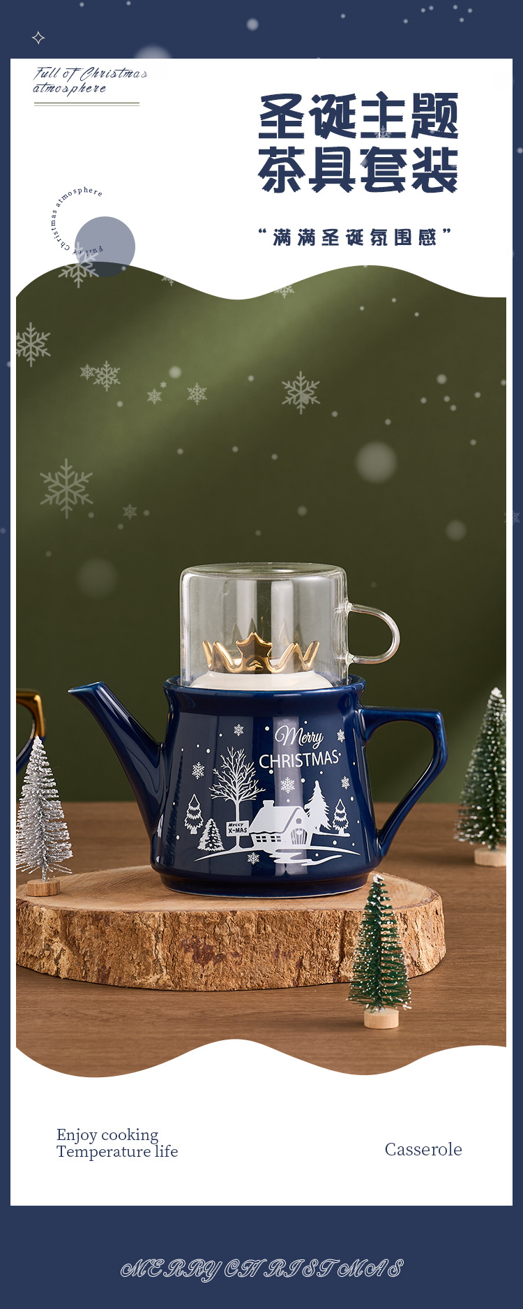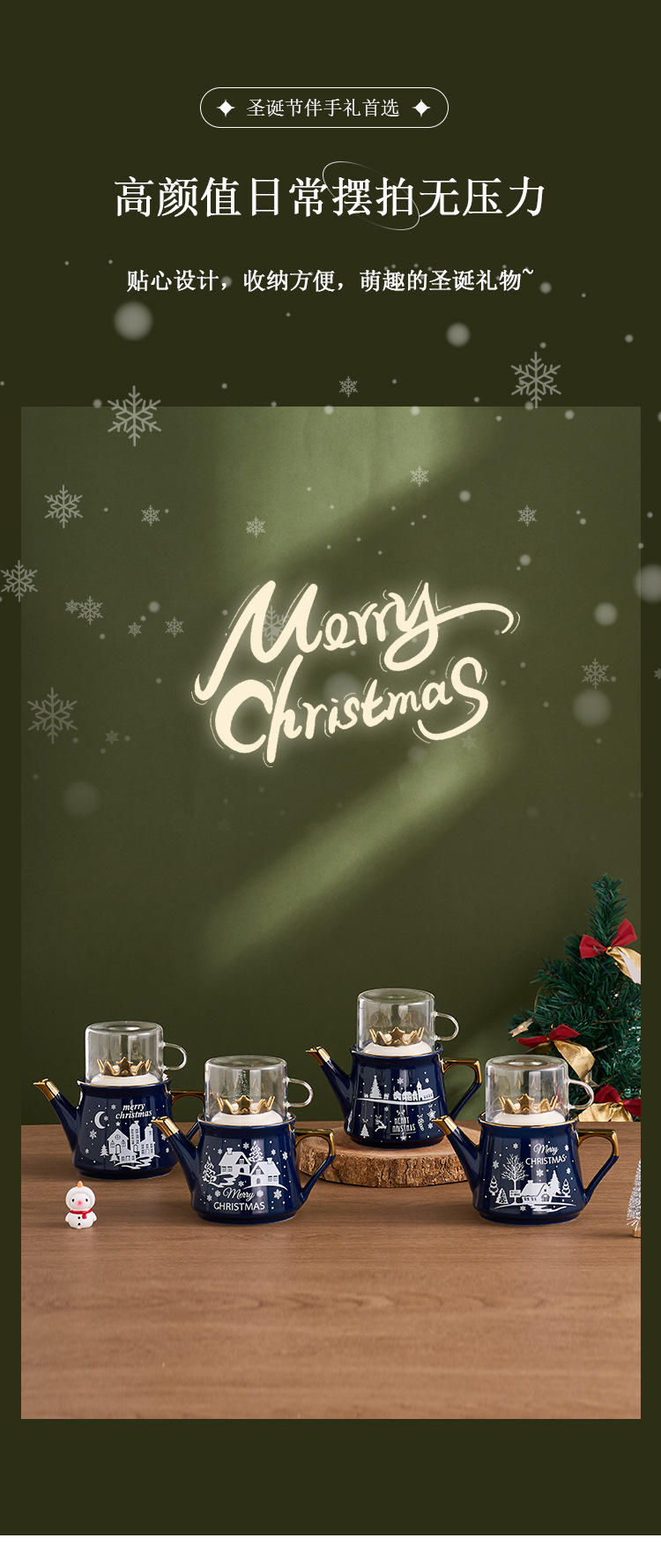 Ins encantador dibujo animado nieve regalo de navidad taza de cerámica set de té regalo de navidad regalo casual