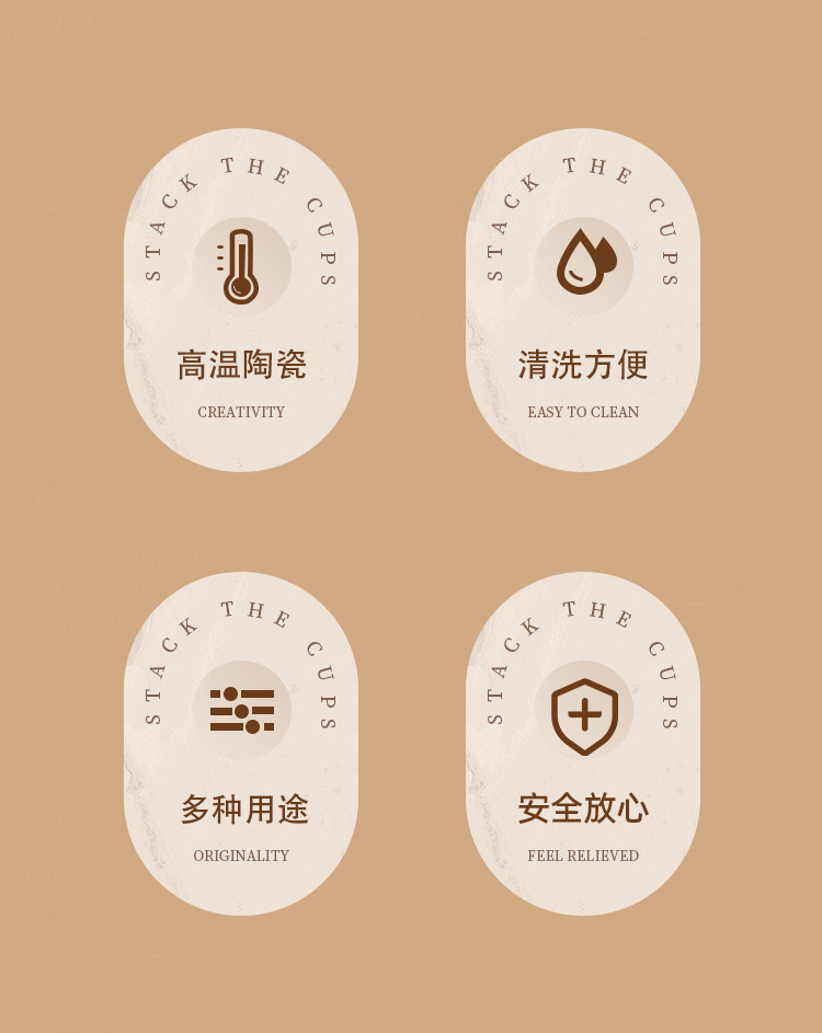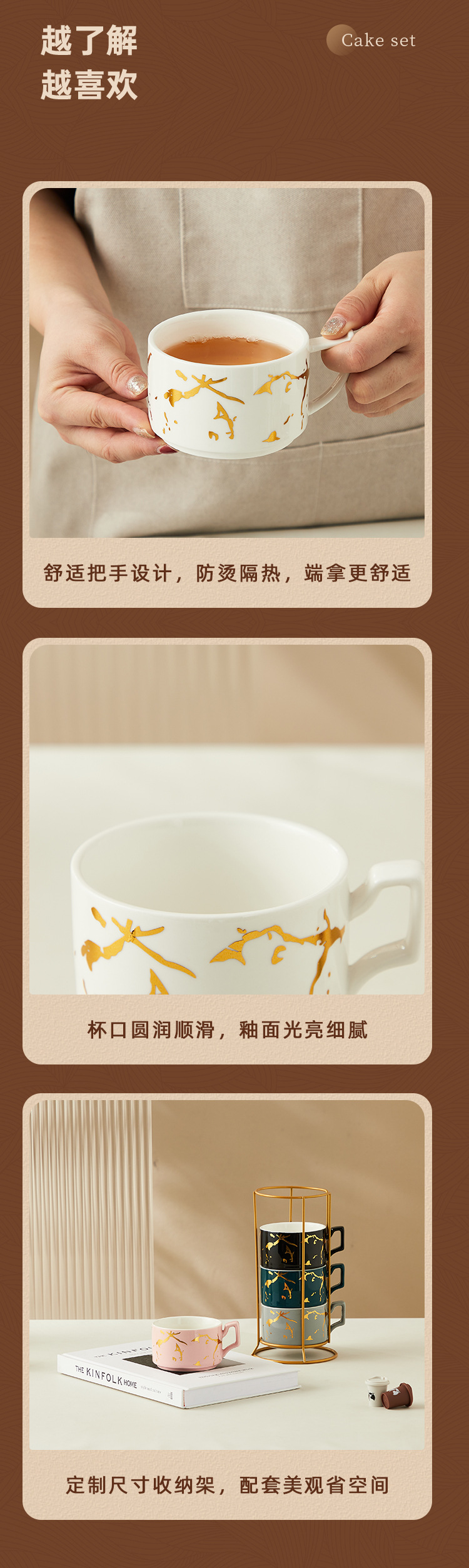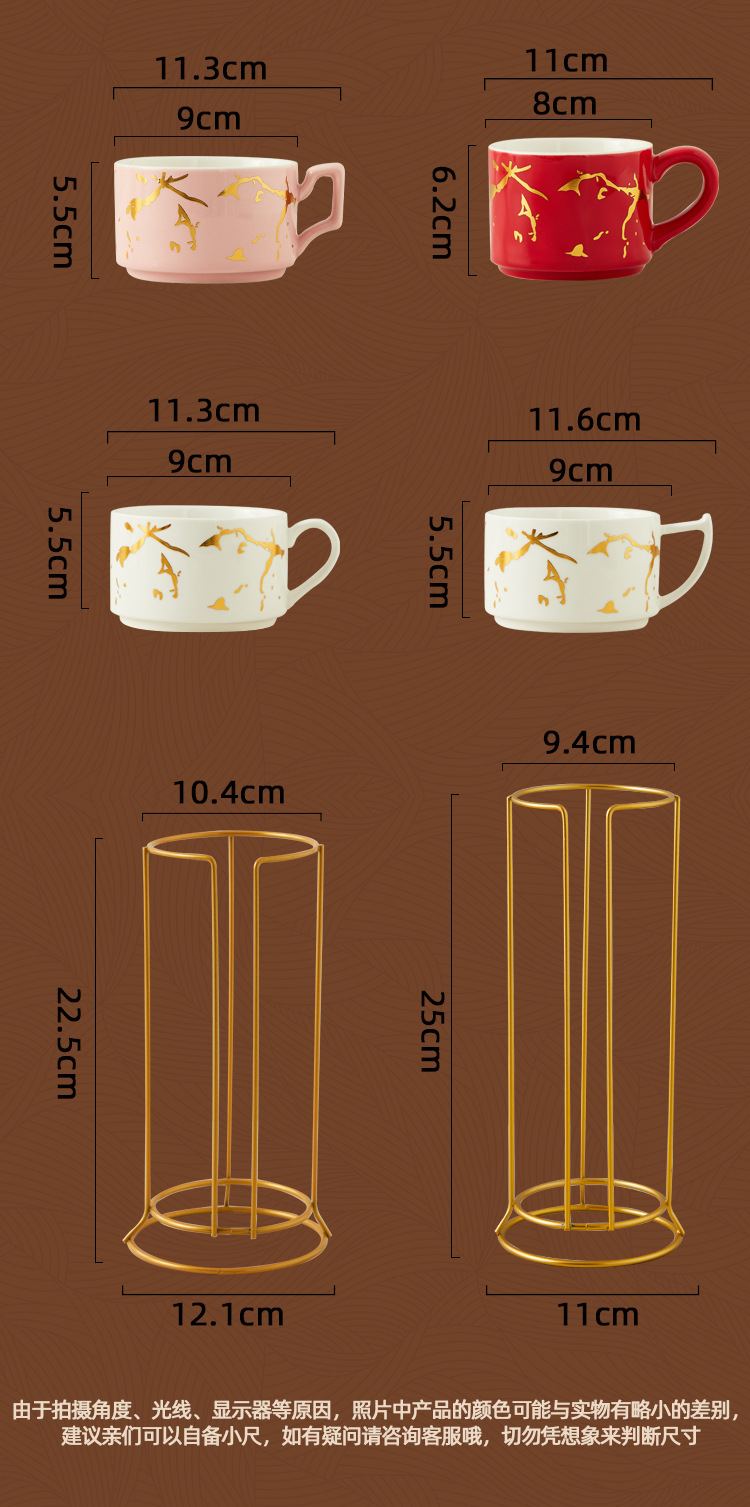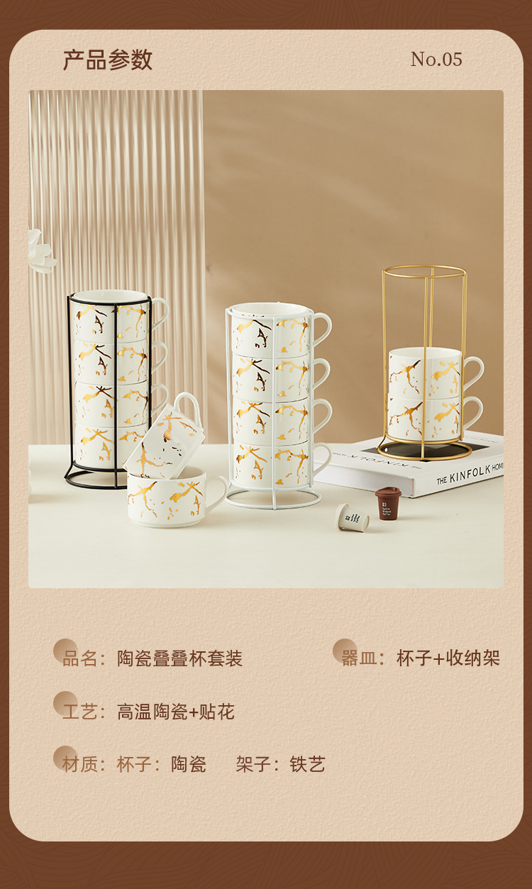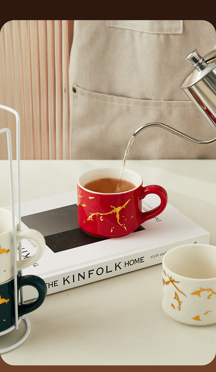 Creativo dorado Taza de cerámica taza hogar tridimensional apilada taza de cuatro piezas con marco de hierro taza de agua de café