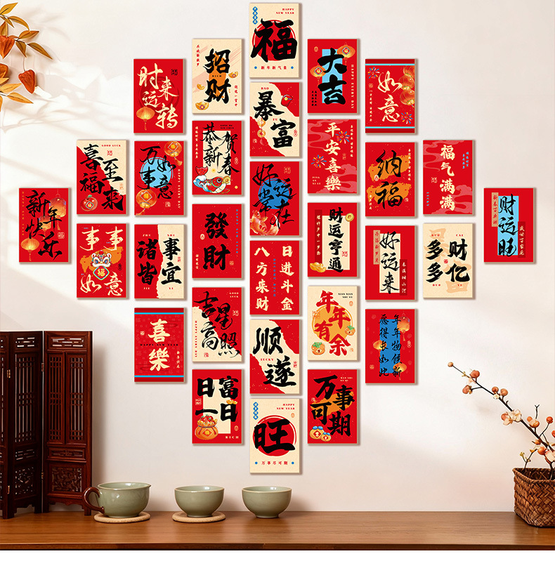 2026 nuevo año del caballo tarjetas postales de Año Nuevo pegatinas del Festival de Primavera felicitaciones de Año Nuevo tarjetas de fotos de fondo pegatinas de pared