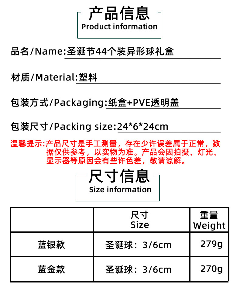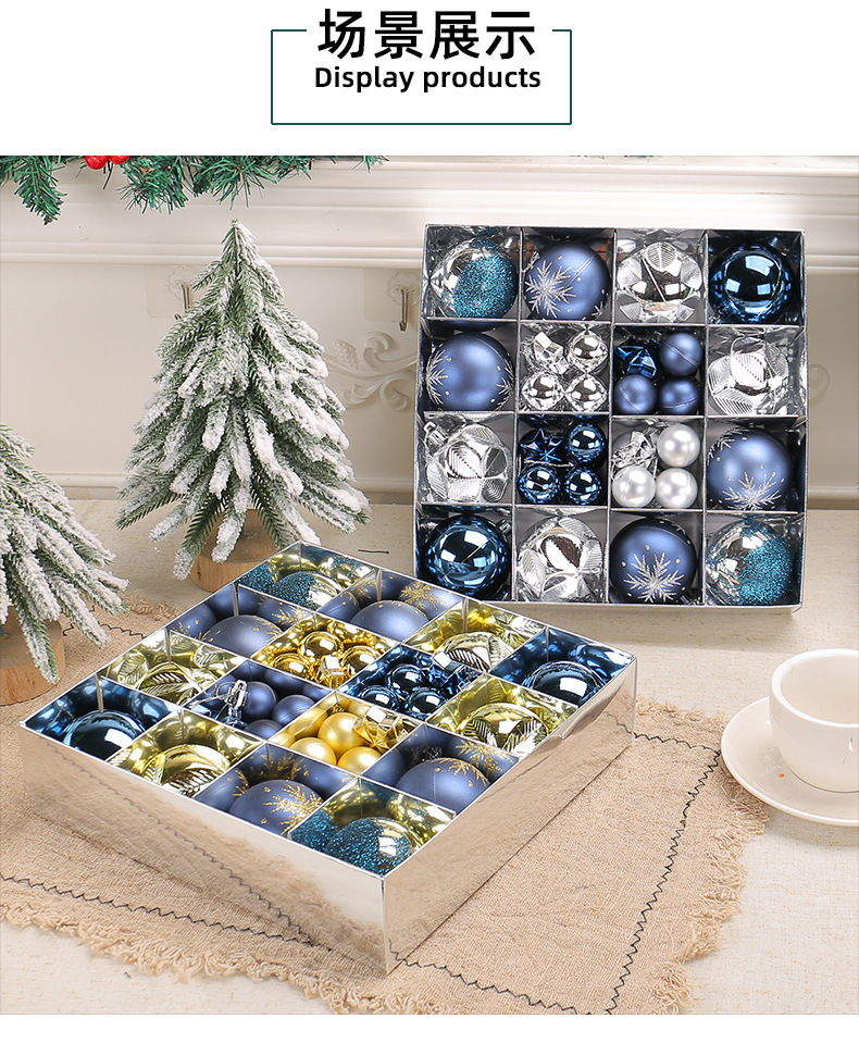 Nuevos productos galvanizados bolas de decoración de Navidad árbol de Navidad de plástico colgante bolas de Navidad pintadas colgante caja de regalo