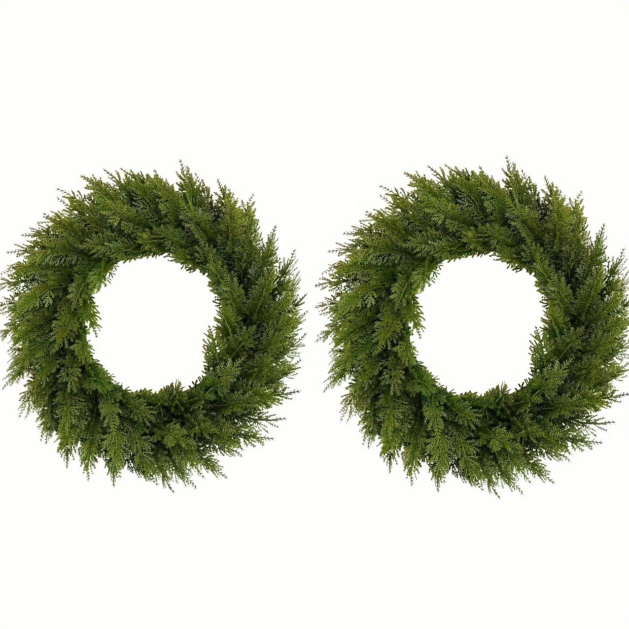 Decoración navideña de Amazon Guirnalda de hojas de pino verde Decoración de la ventana del hogar festivo Simulación de pino y ciprés Anillo de ratán Colgador de la puerta