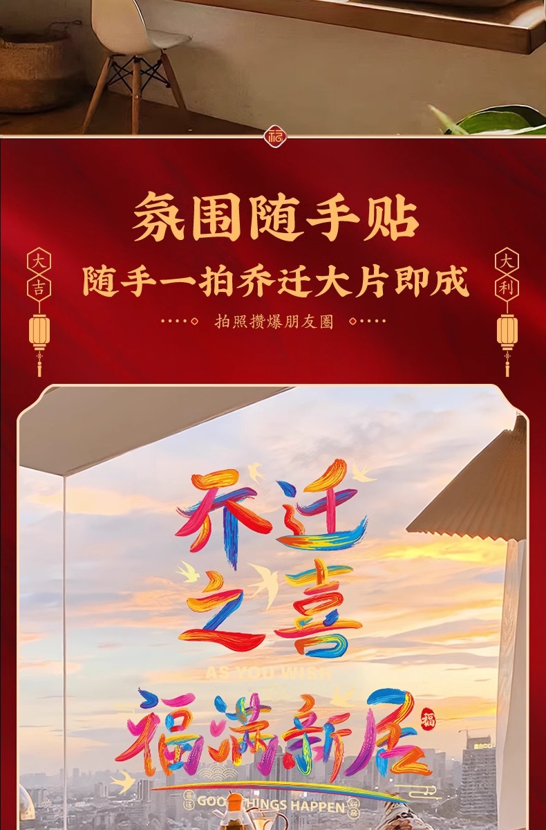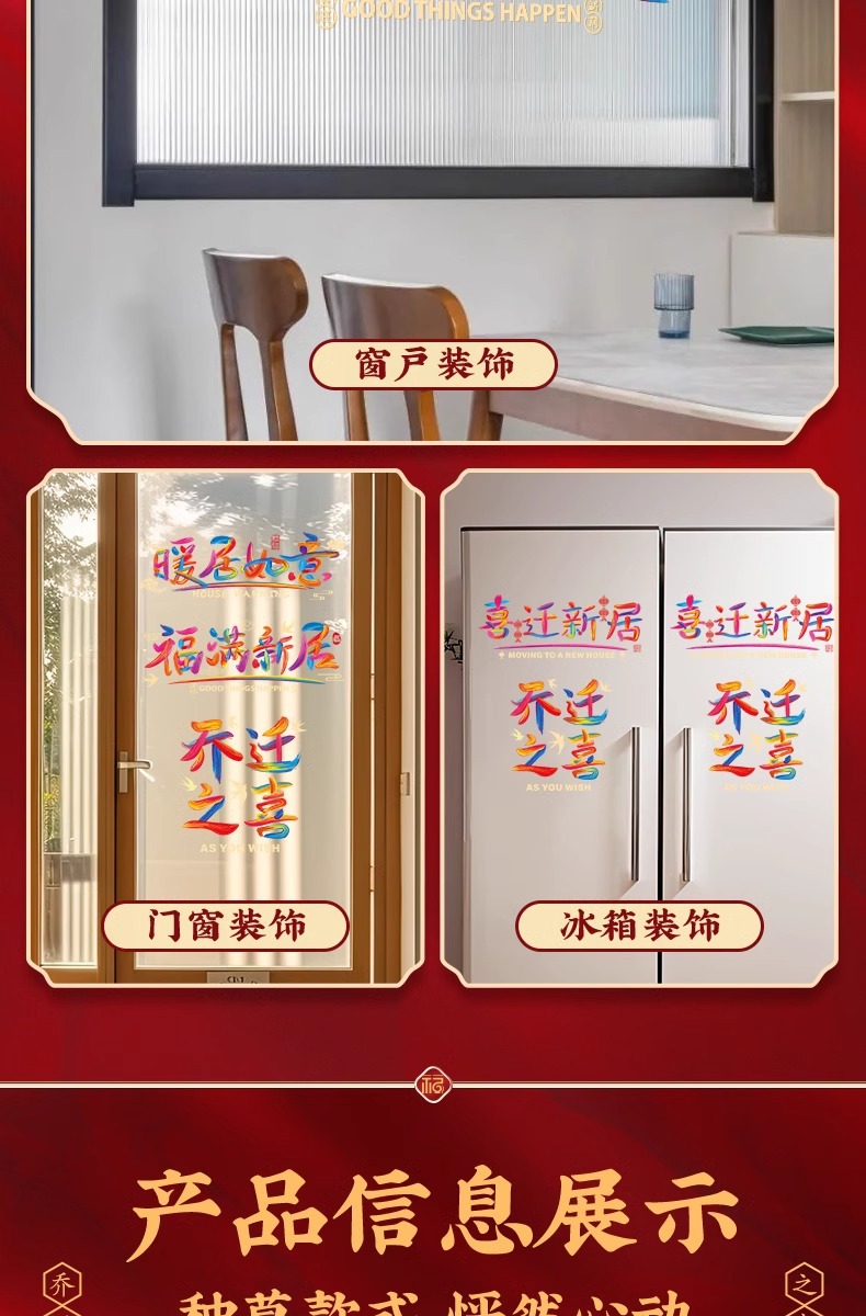 ![Pegatinas electrostáticas de inauguración de color [pegatinas fáciles sin marcas] / residencia cálida Ruyi + alegría de inauguración](https://cbu01.alicdn.com/img/ibank/O1CN01ip4jth24VQGu8C2Fi_!!2217554037396-0-cib.jpg)