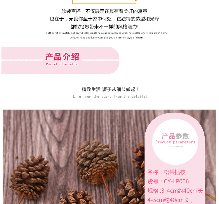Ramo de pino seco cono decoración DIY flor seca natural flor eterna decoración casera hecha a mano salón arreglo floral con varilla cono de pino