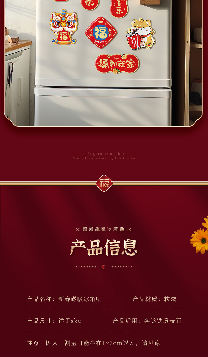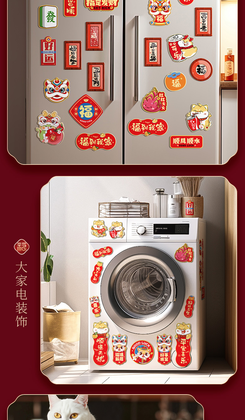 2026 nuevo refrigerador de absorción creativo pegado en la puerta de los muebles pequeños par de decoración de decoración de Año Nuevo