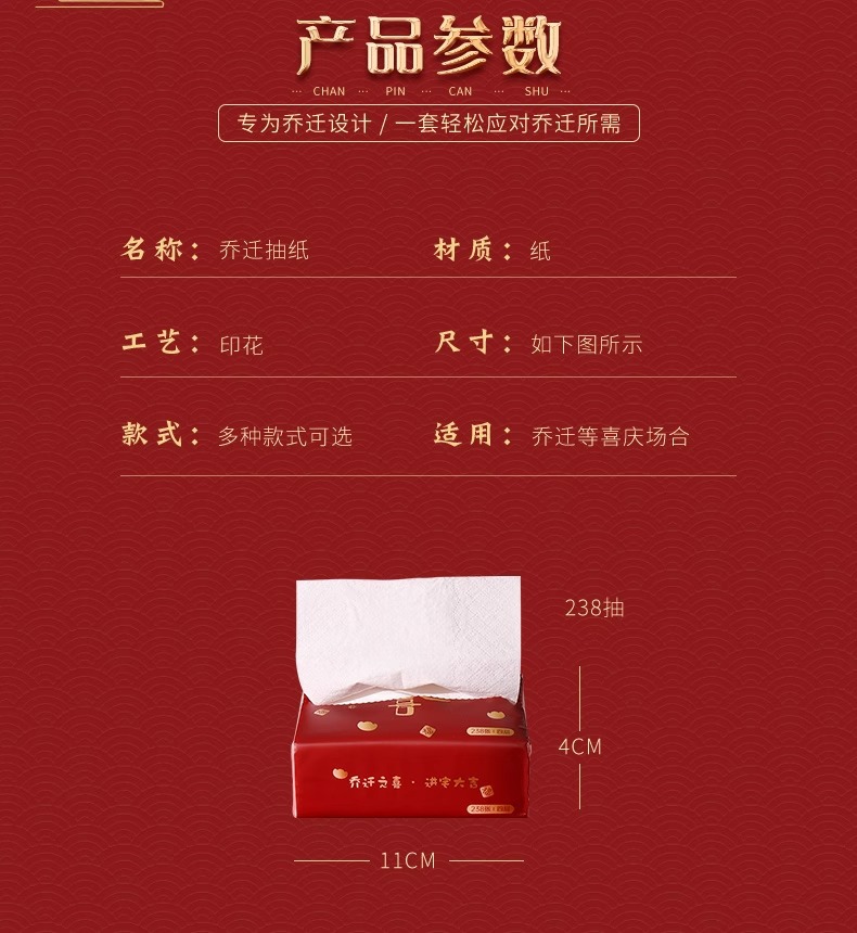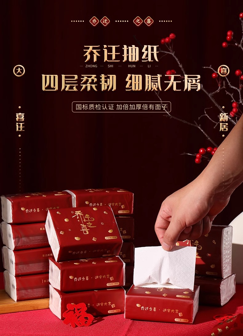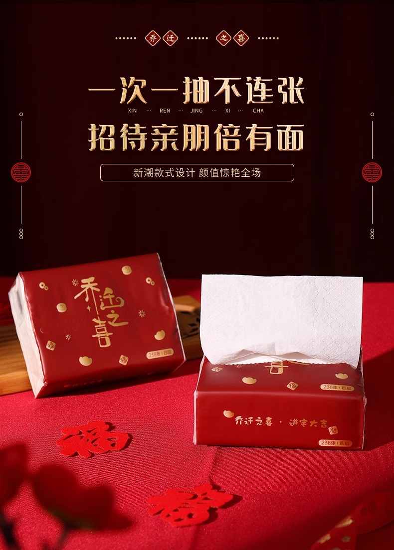 Decoración de la alegría de la mudanza, decoración de papel de extracción, artículos de ceremonia de mudanza, artículos de nueva casa, nuevo diseño de casa, toallas de regalo