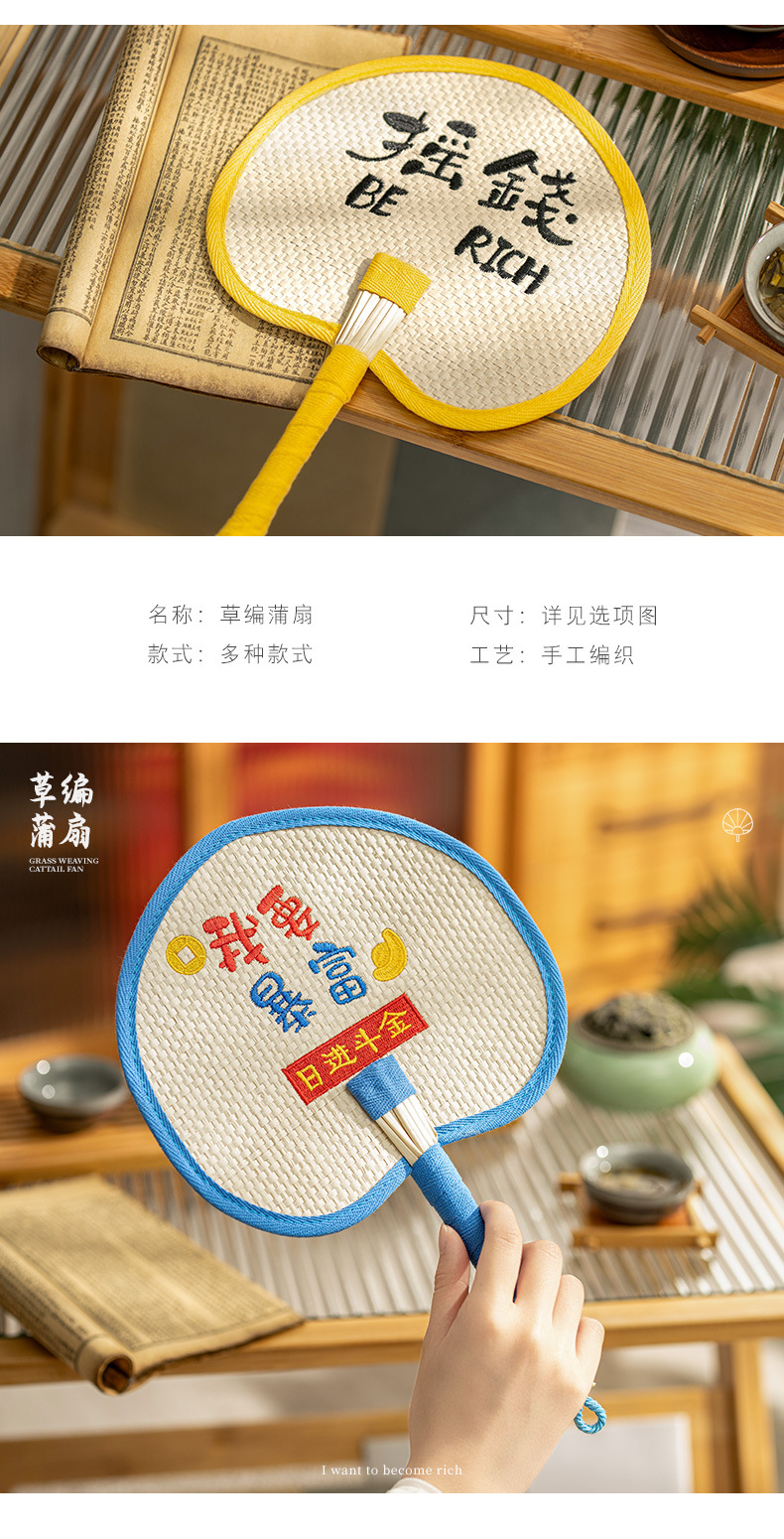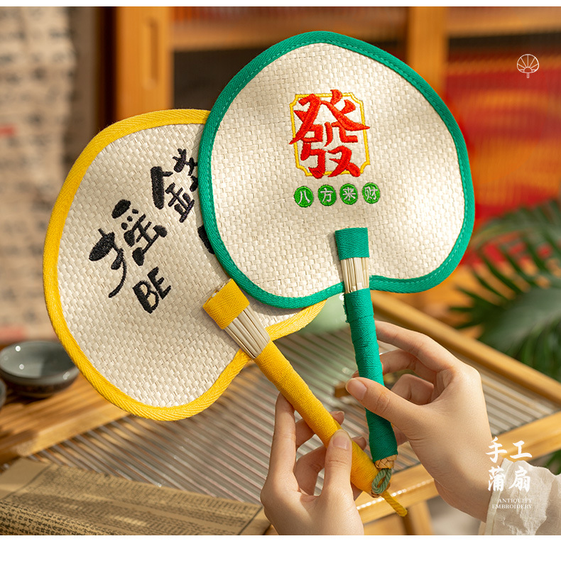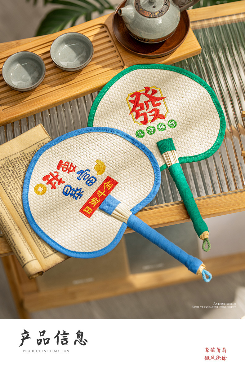 Abanico bordado Abanico de plátano tejido a mano de verano Nuevo abanico de dinero repelente de mosquitos portátil chino Abanico de girasol de mano