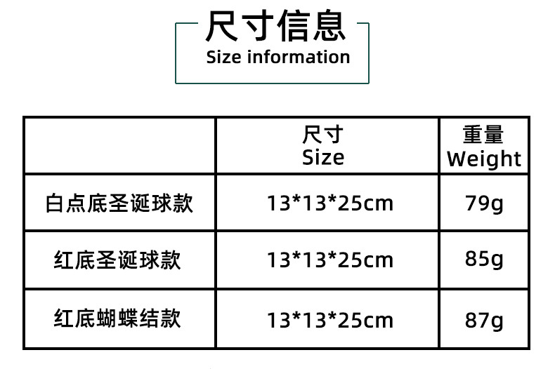 | Colores | Q3-22 bola de Navidad con fondo blanco,Bola de Navidad de fondo rojo Q3-23,Q3-24 pajarita de fondo rojo |