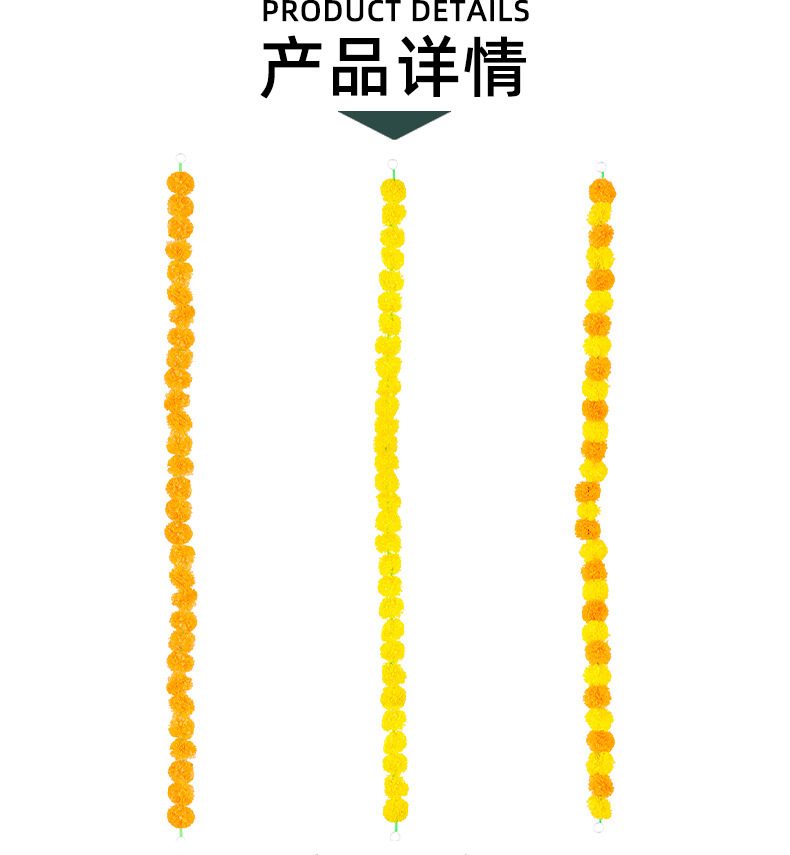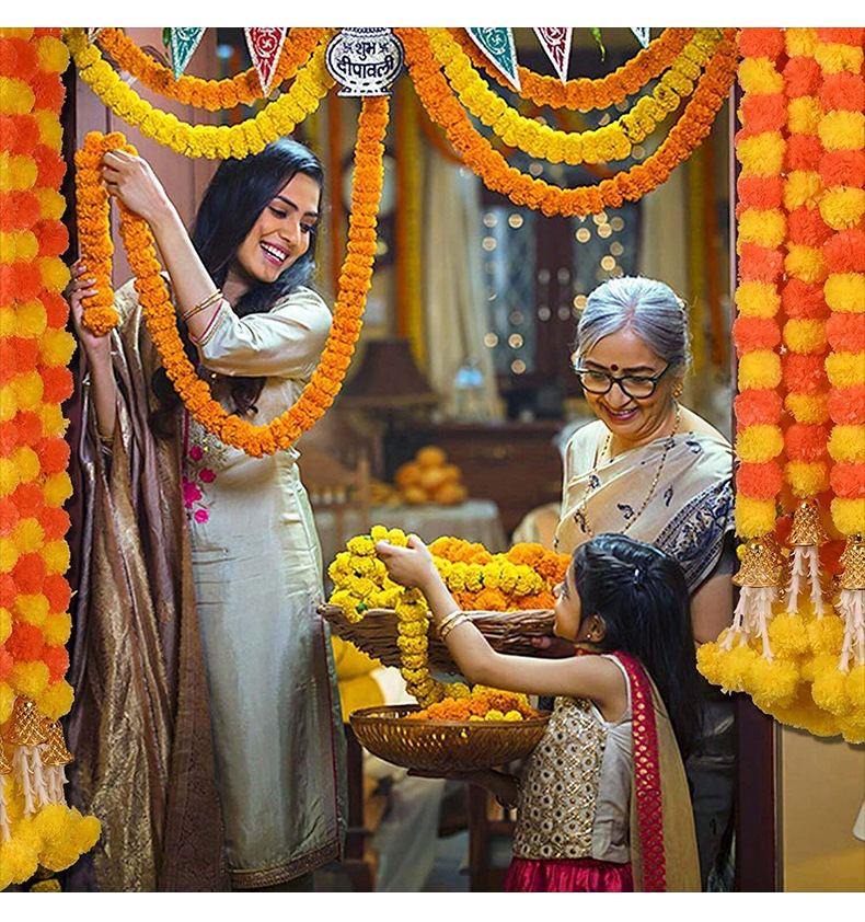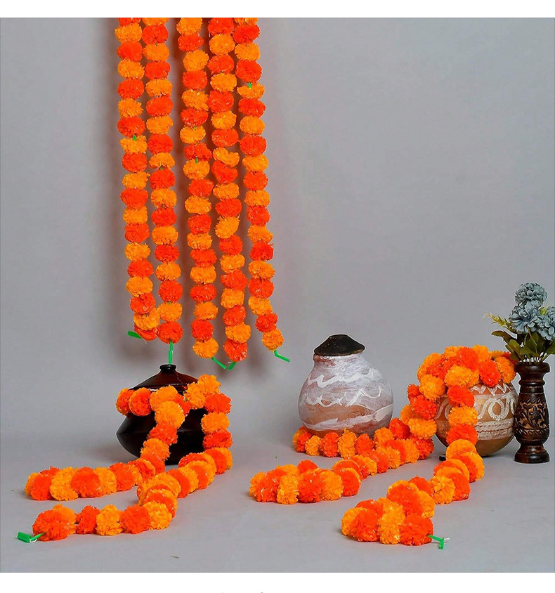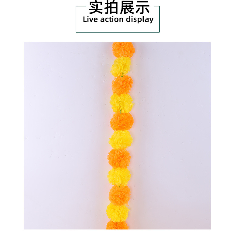 Transfronterizos Halloween decoración india guirnaldas de flores artificiales caléndula cadena de flores festivales celebración mexicana Día de los muertos plástico